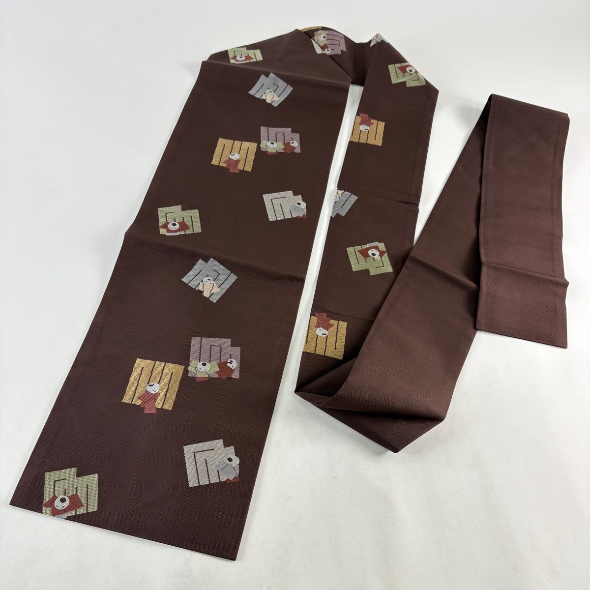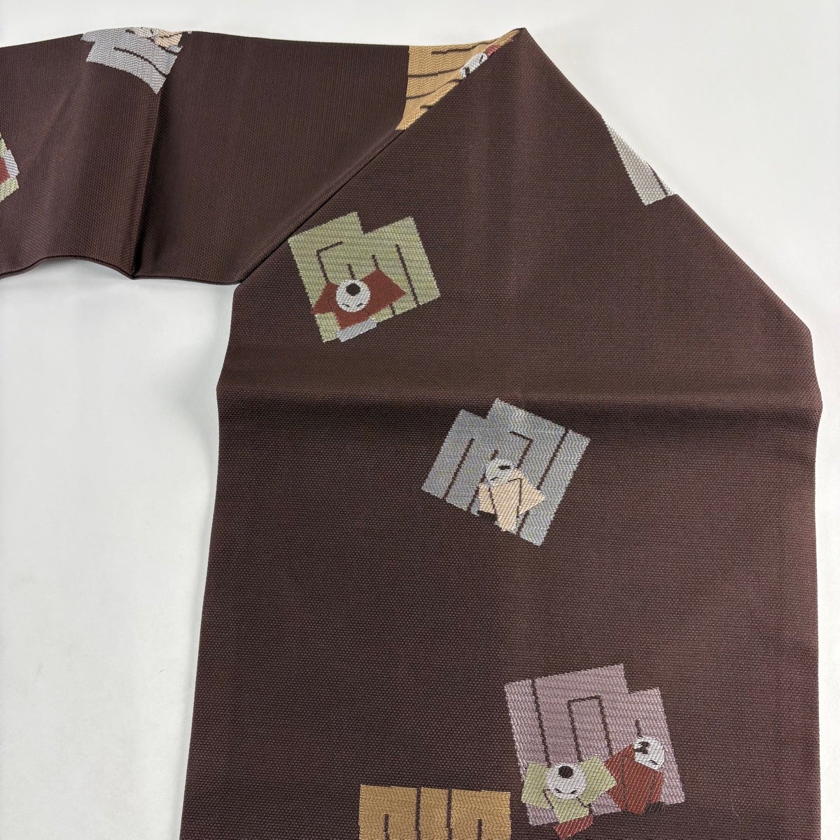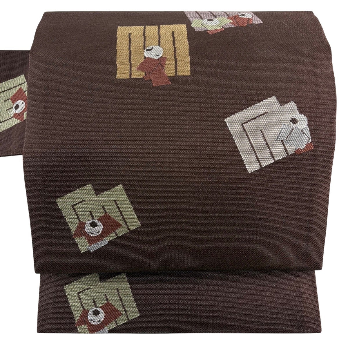 名古屋帯 秀品 唐子 源氏香 小豆色 正絹