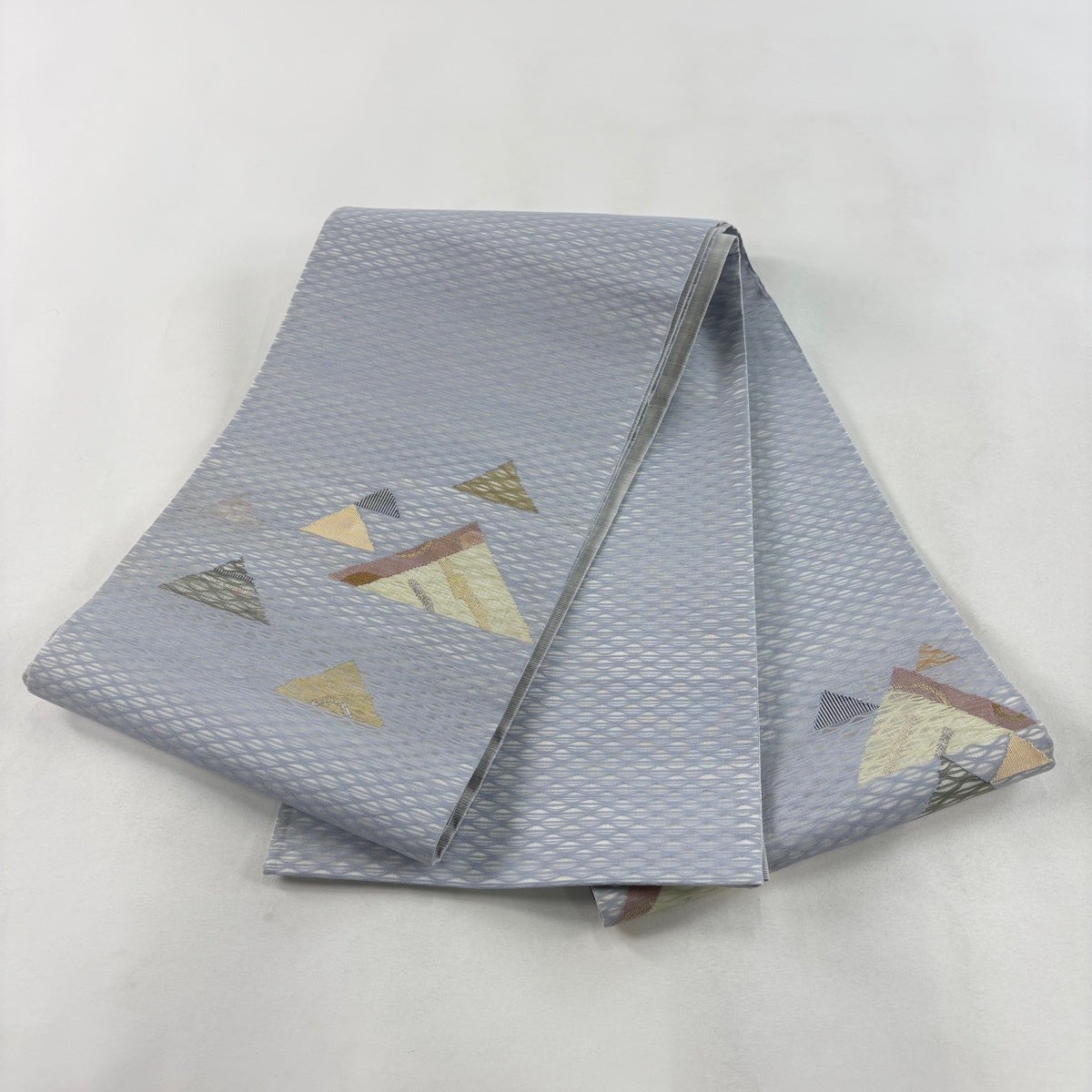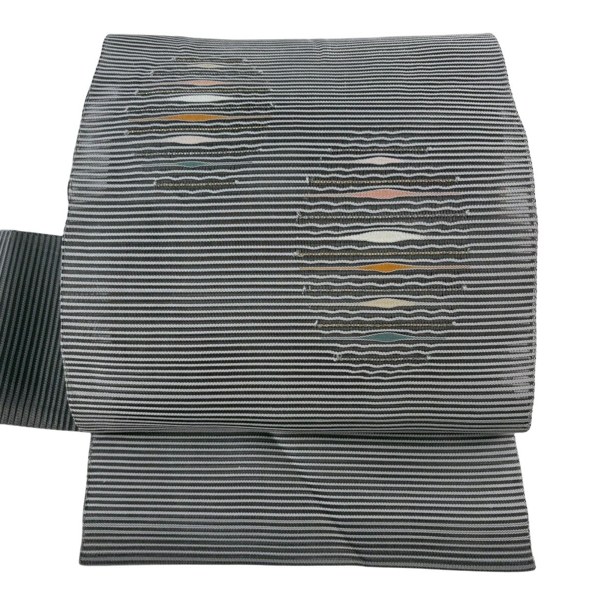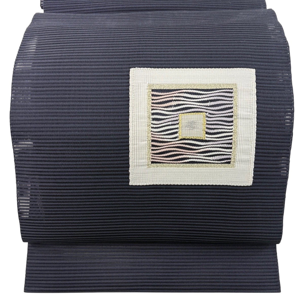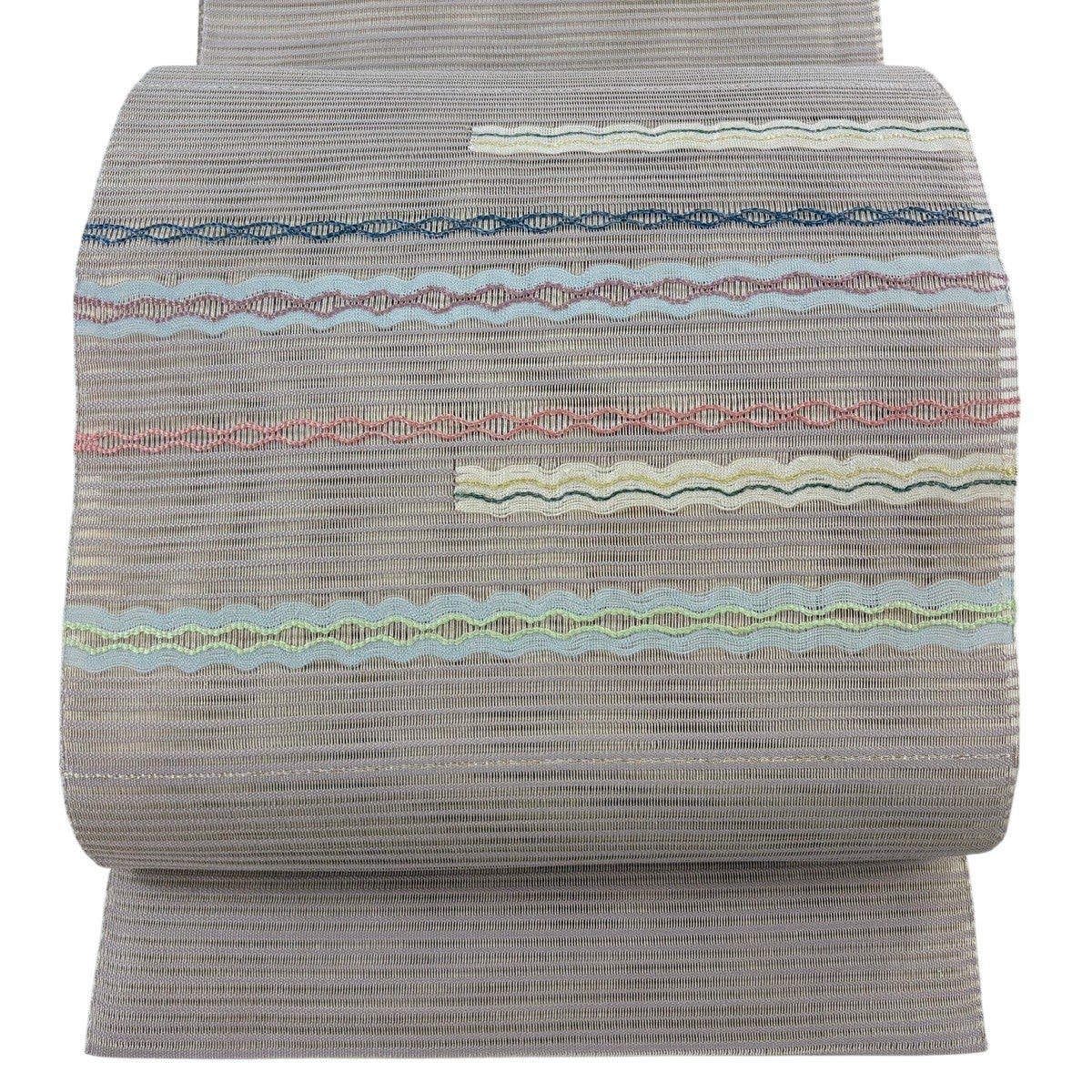 名古屋帯 秀品 夏帯 幾何学 刺繍 灰色 正絹