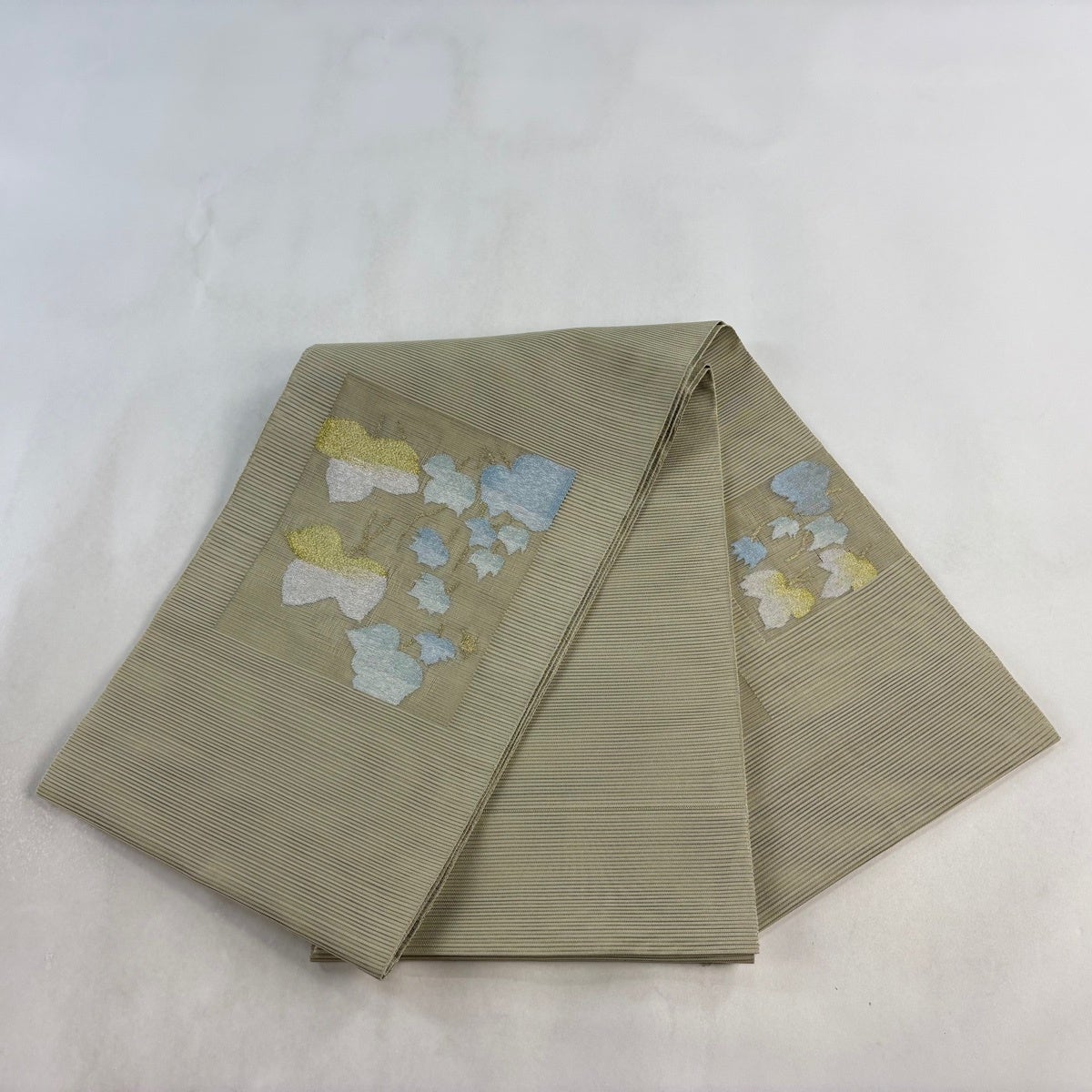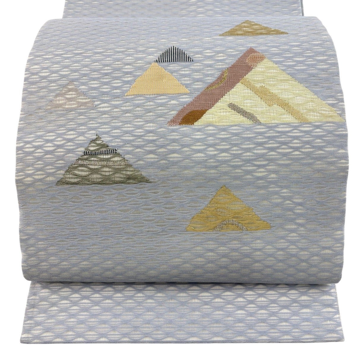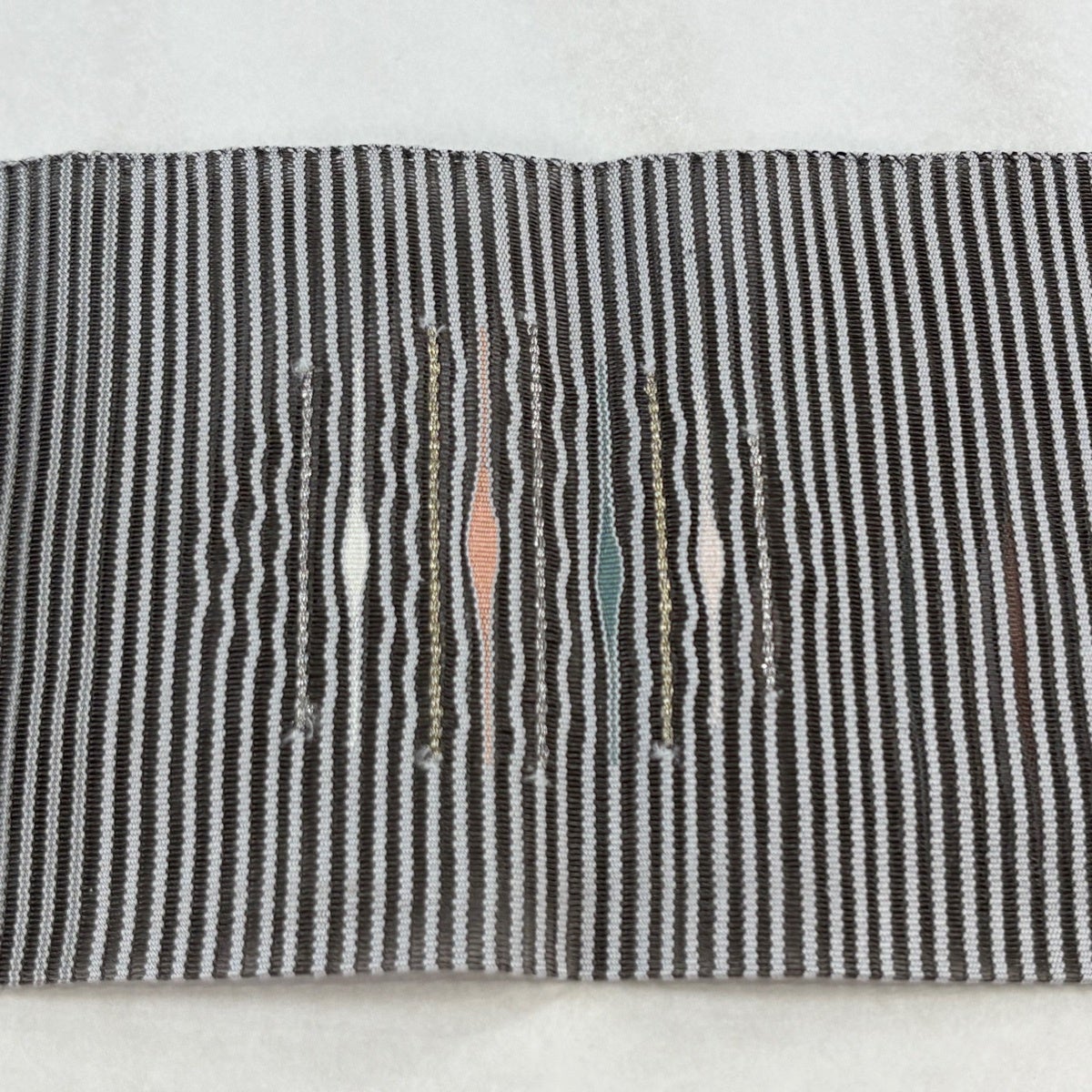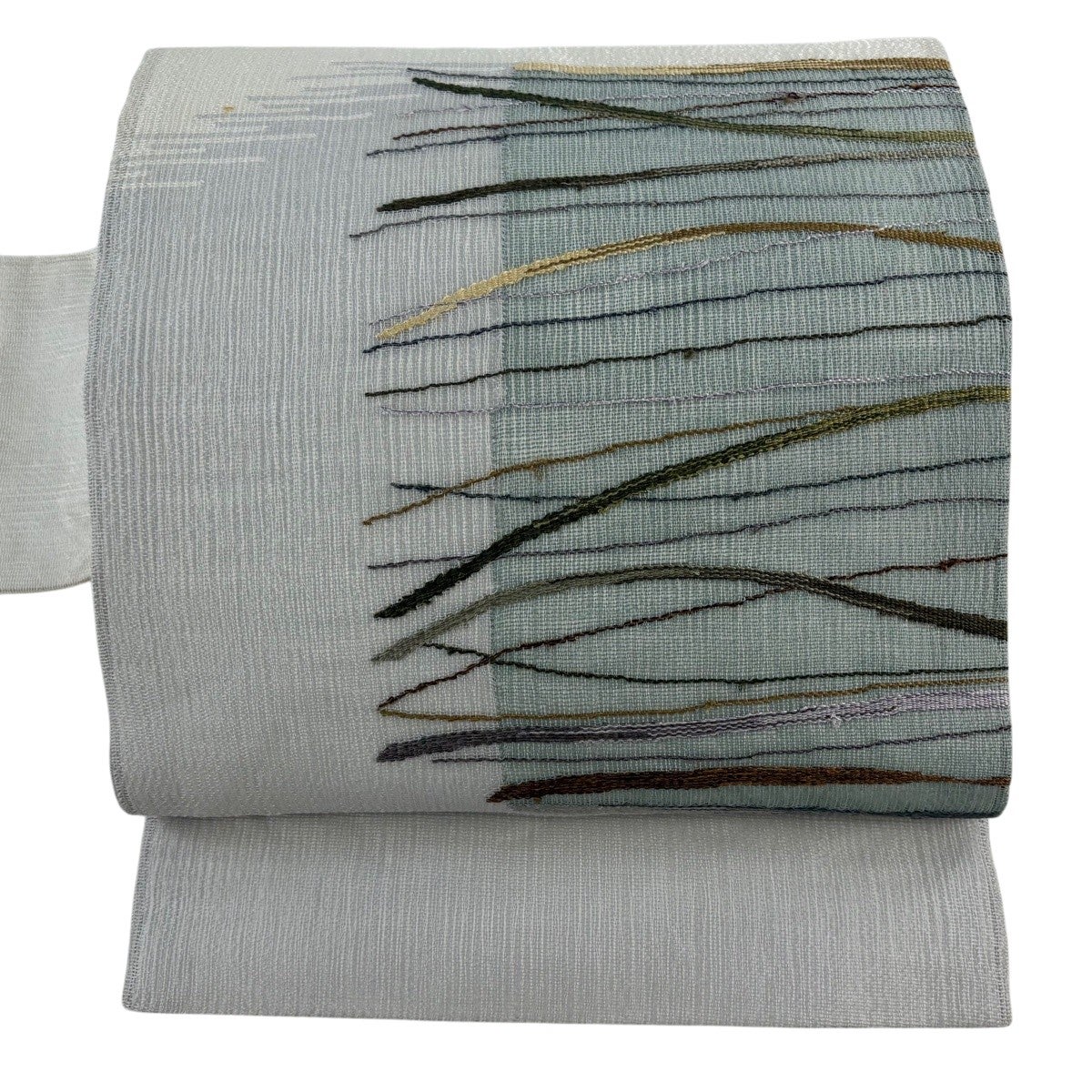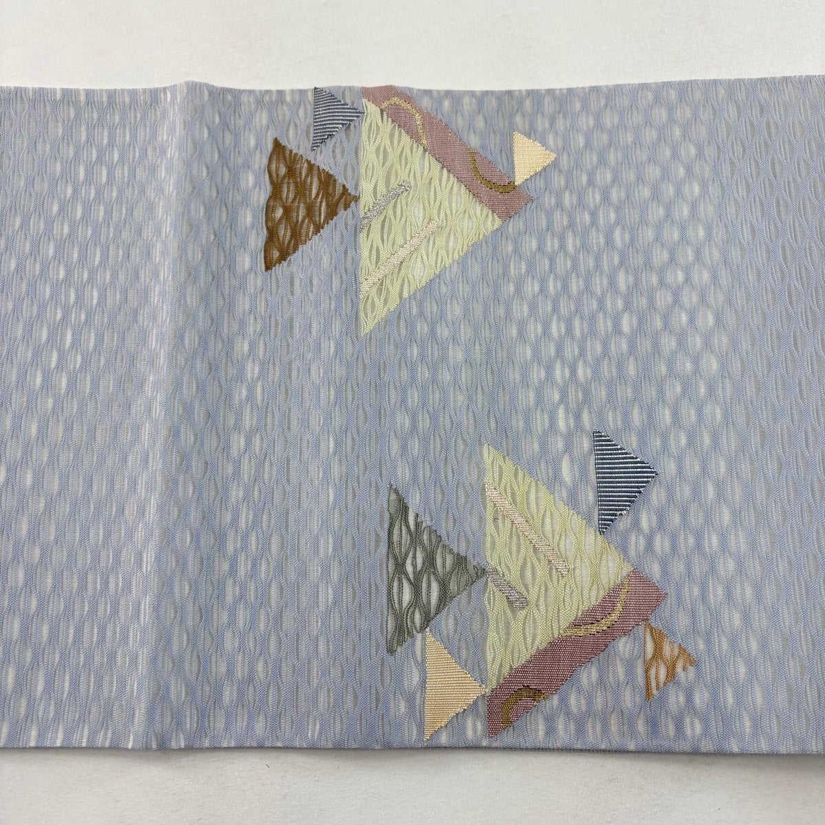 名古屋帯 秀品 夏帯 幾何学 刺繍 灰色 正絹