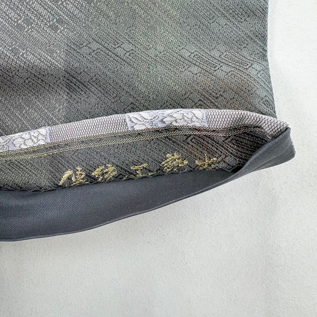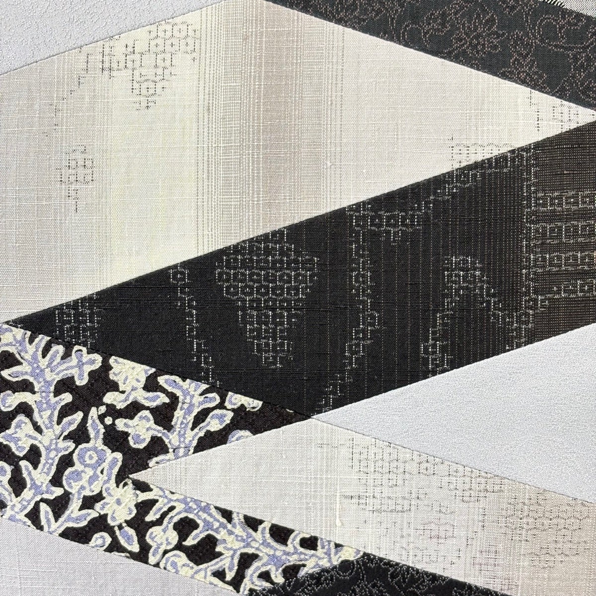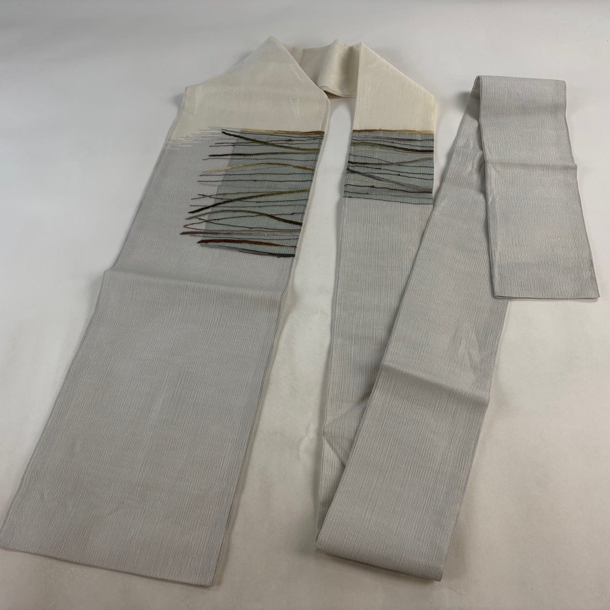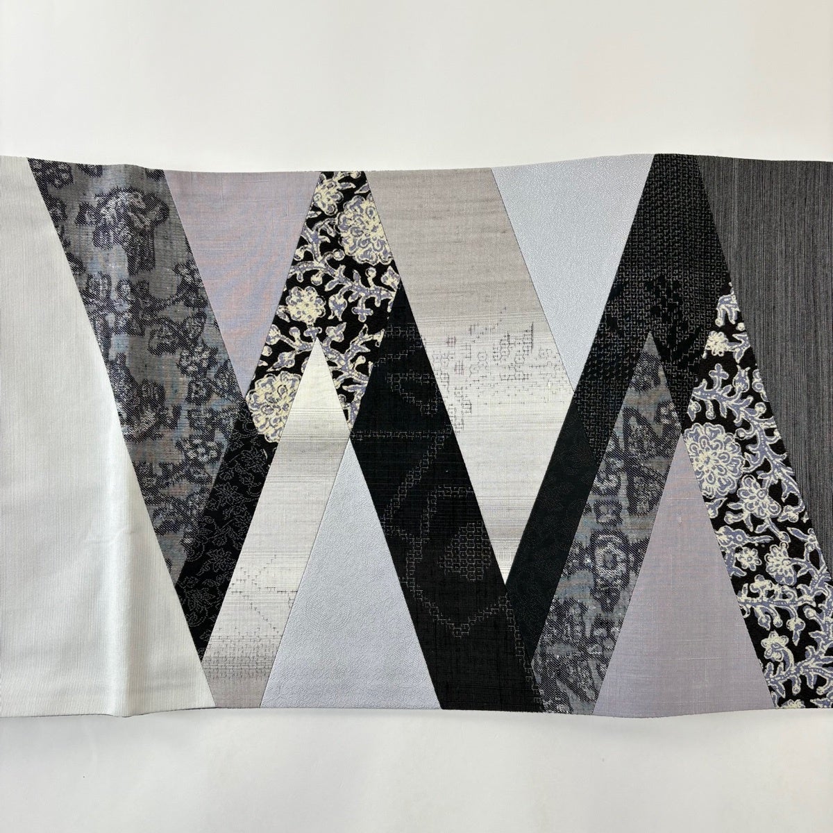 名古屋帯 秀品 夏帯 幾何学 刺繍 灰色 正絹