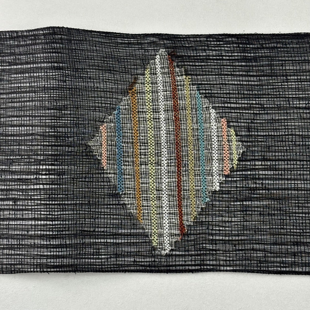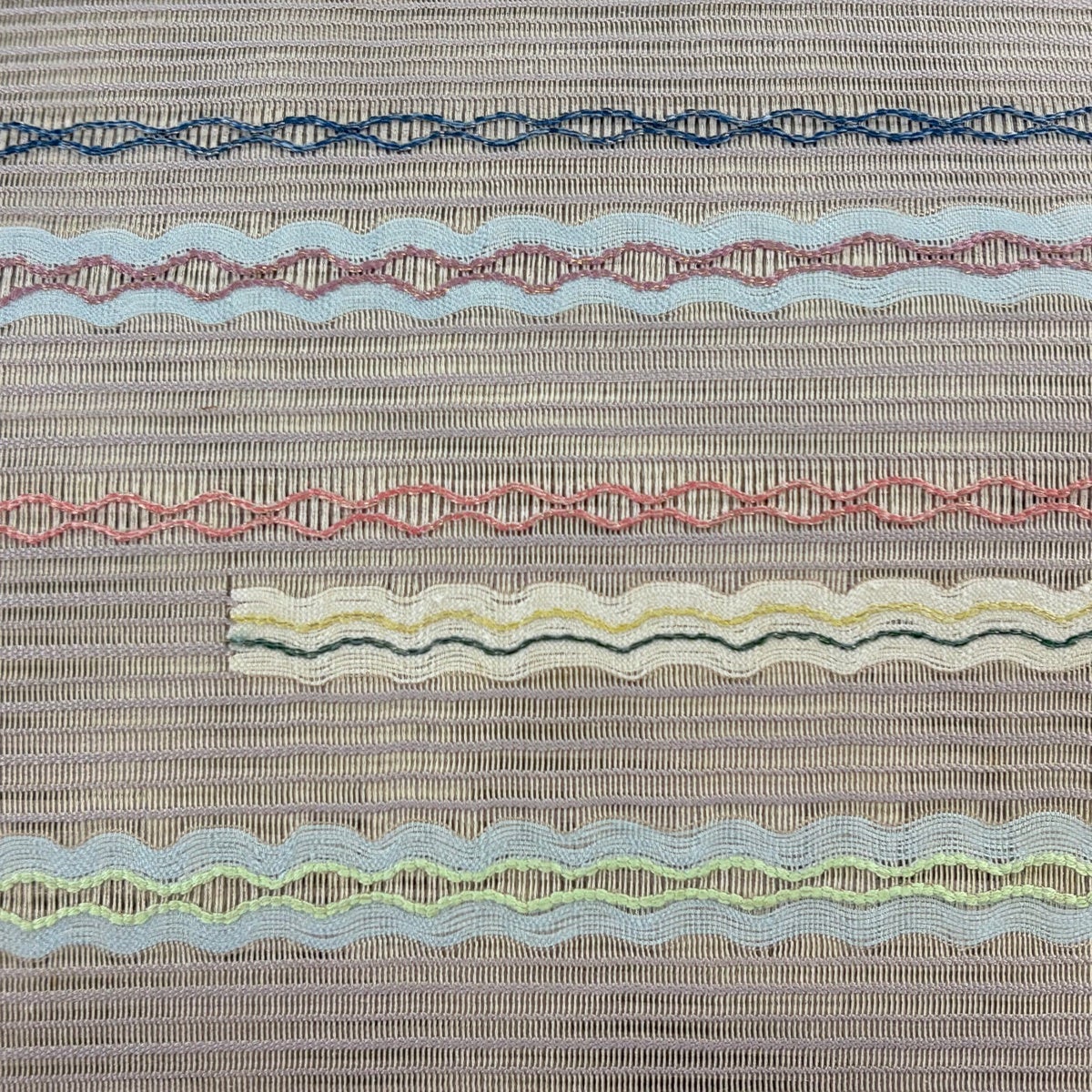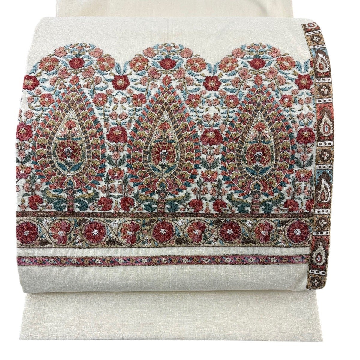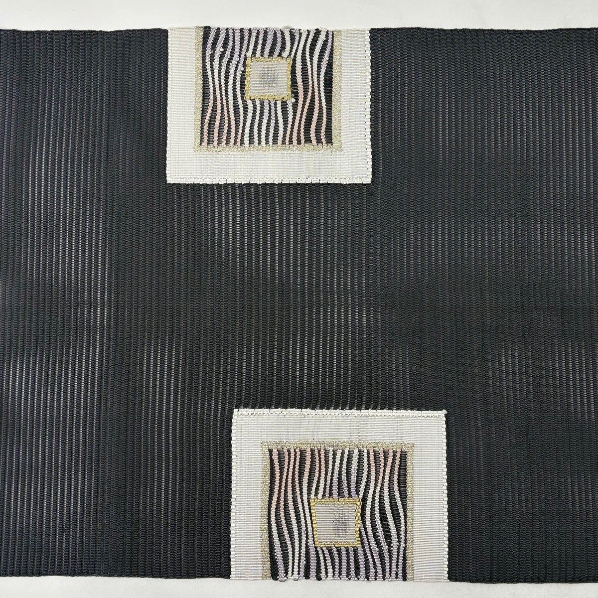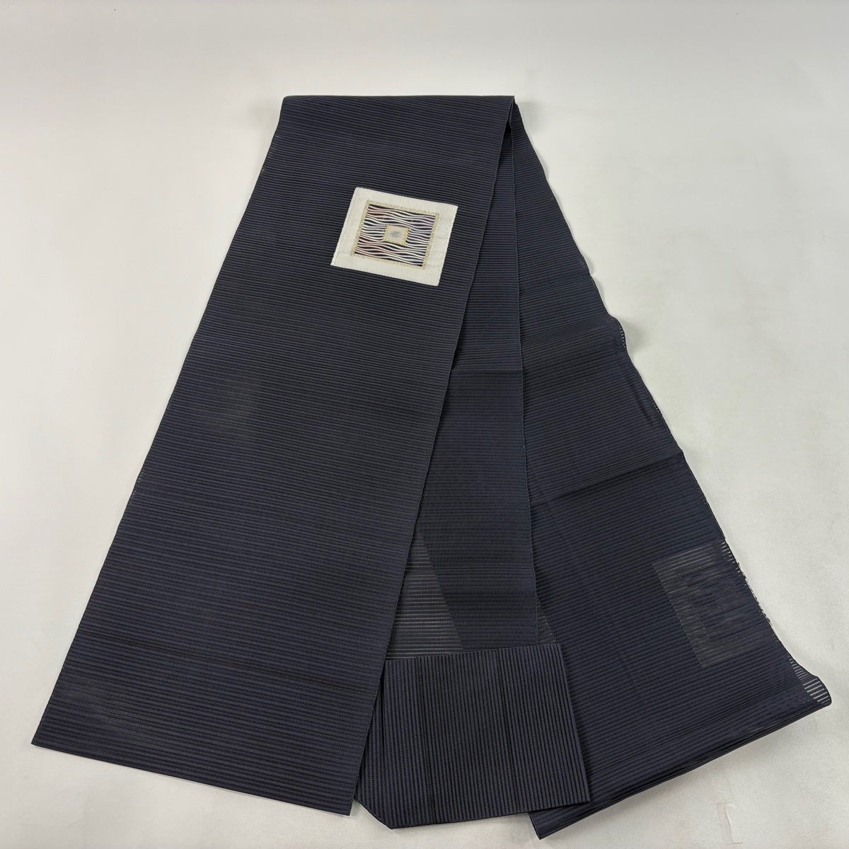 名古屋帯 秀品 夏帯 幾何学 刺繍 灰色 正絹