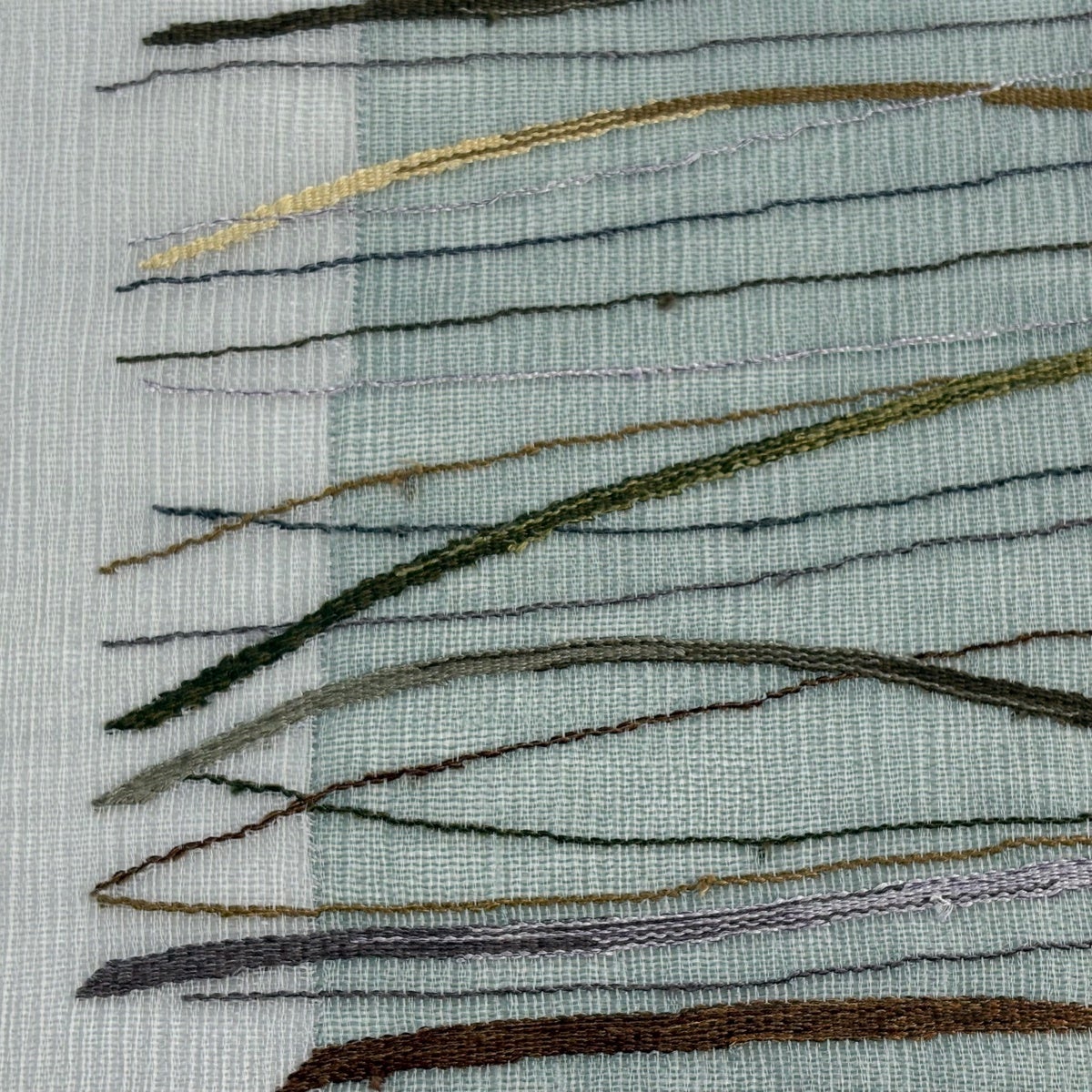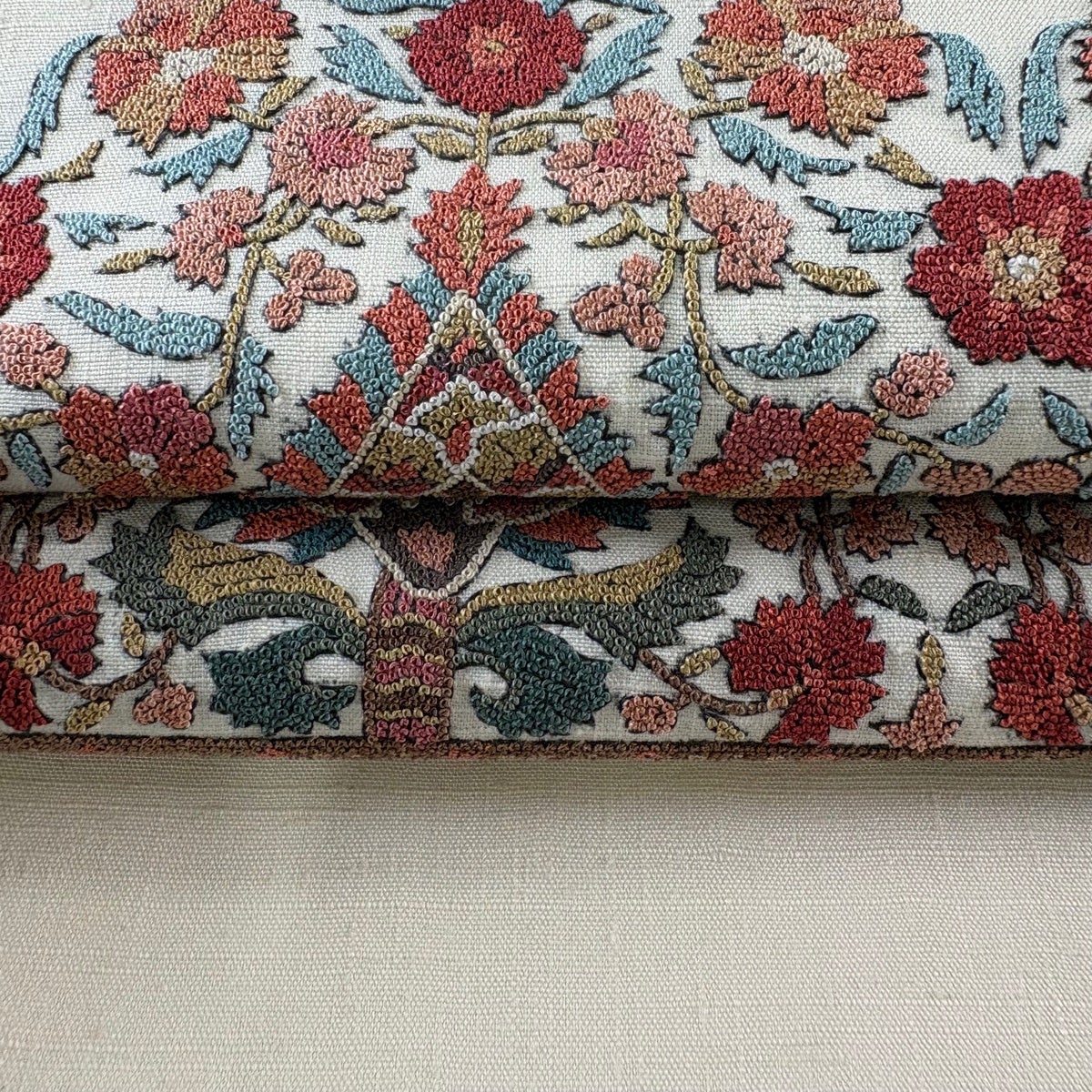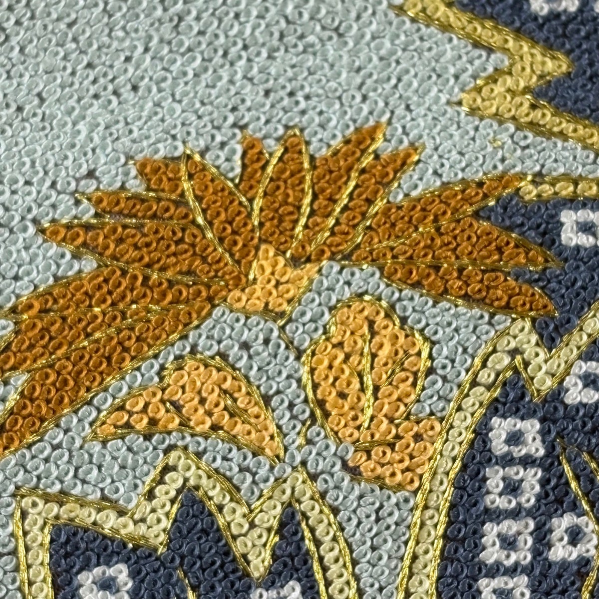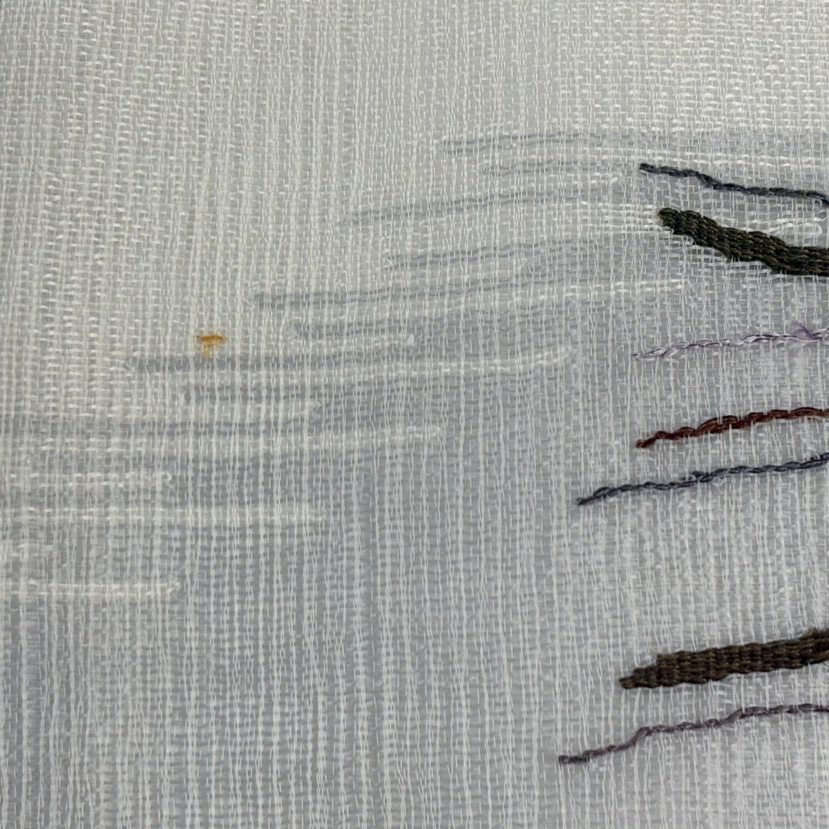 名古屋帯 秀品 夏帯 幾何学 刺繍 灰色 正絹