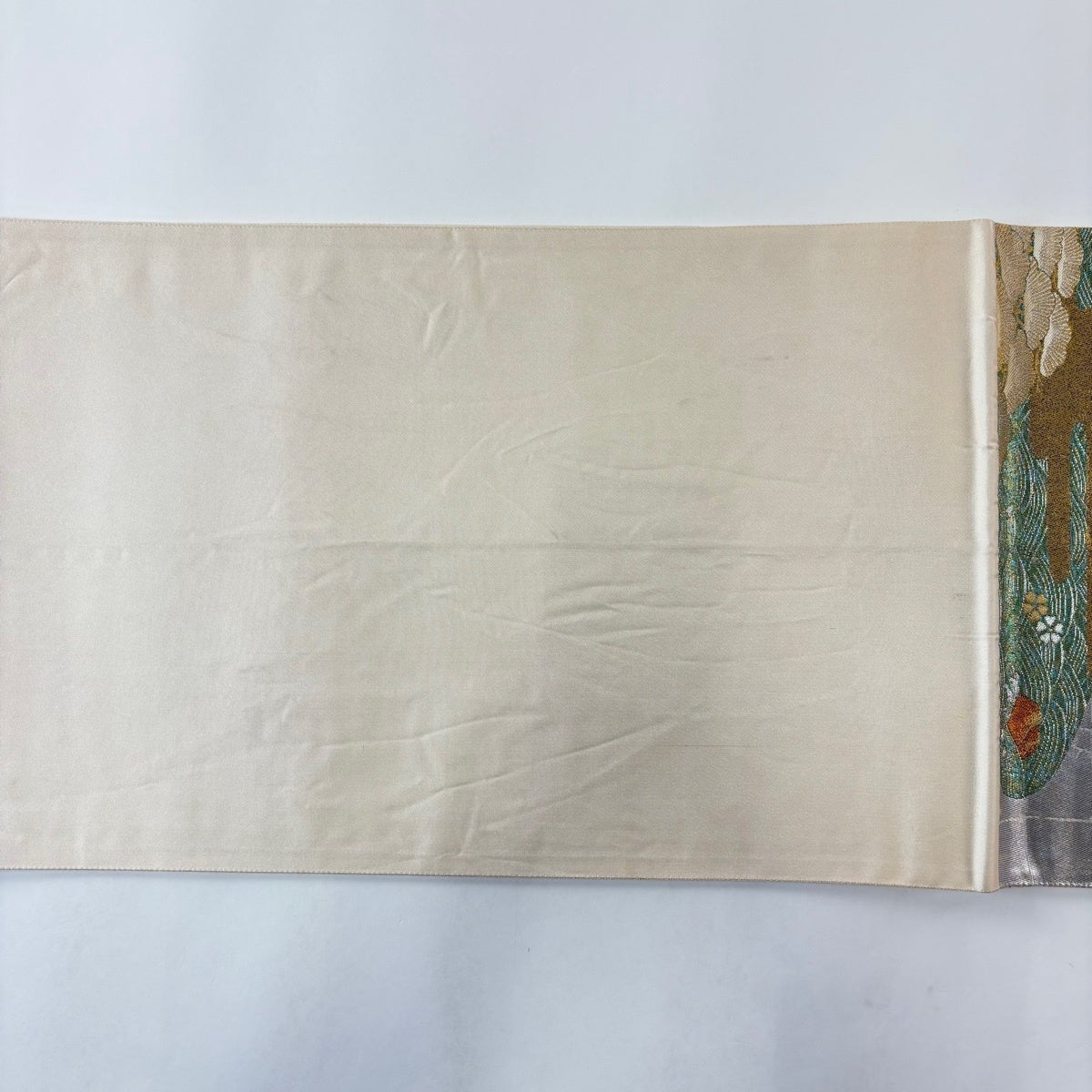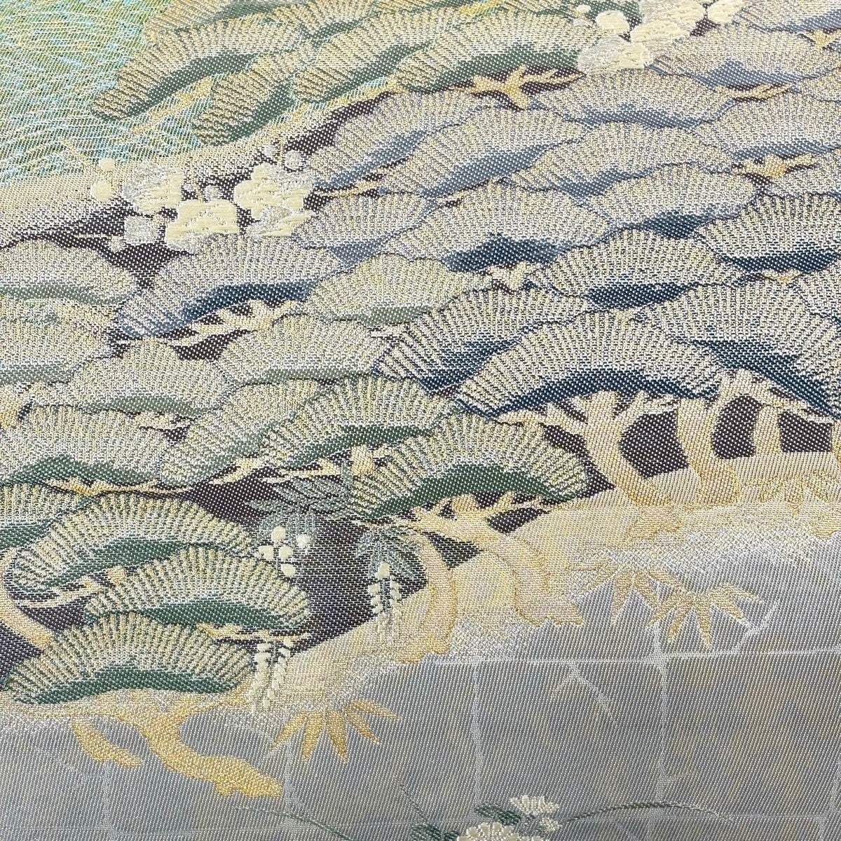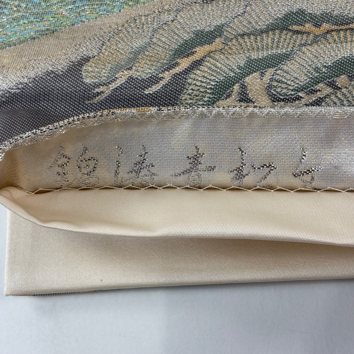 袋帯 秀品 波 松竹梅 箔 唐織 灰色 六通 正絹