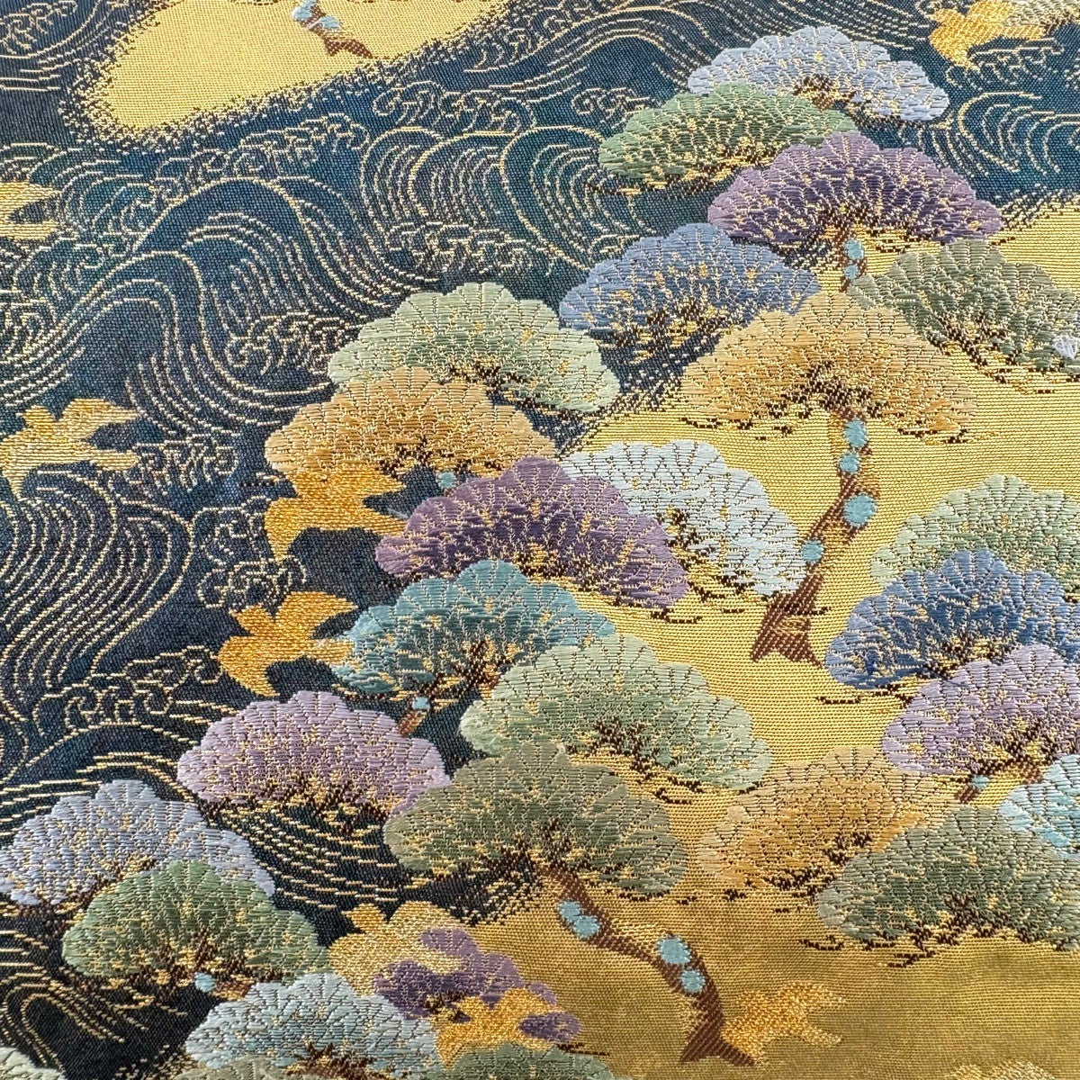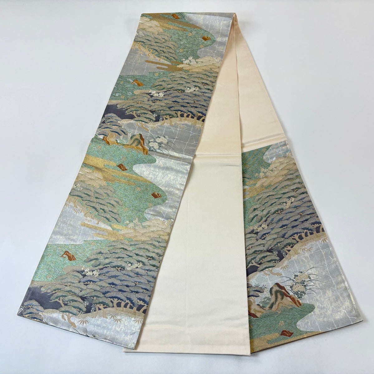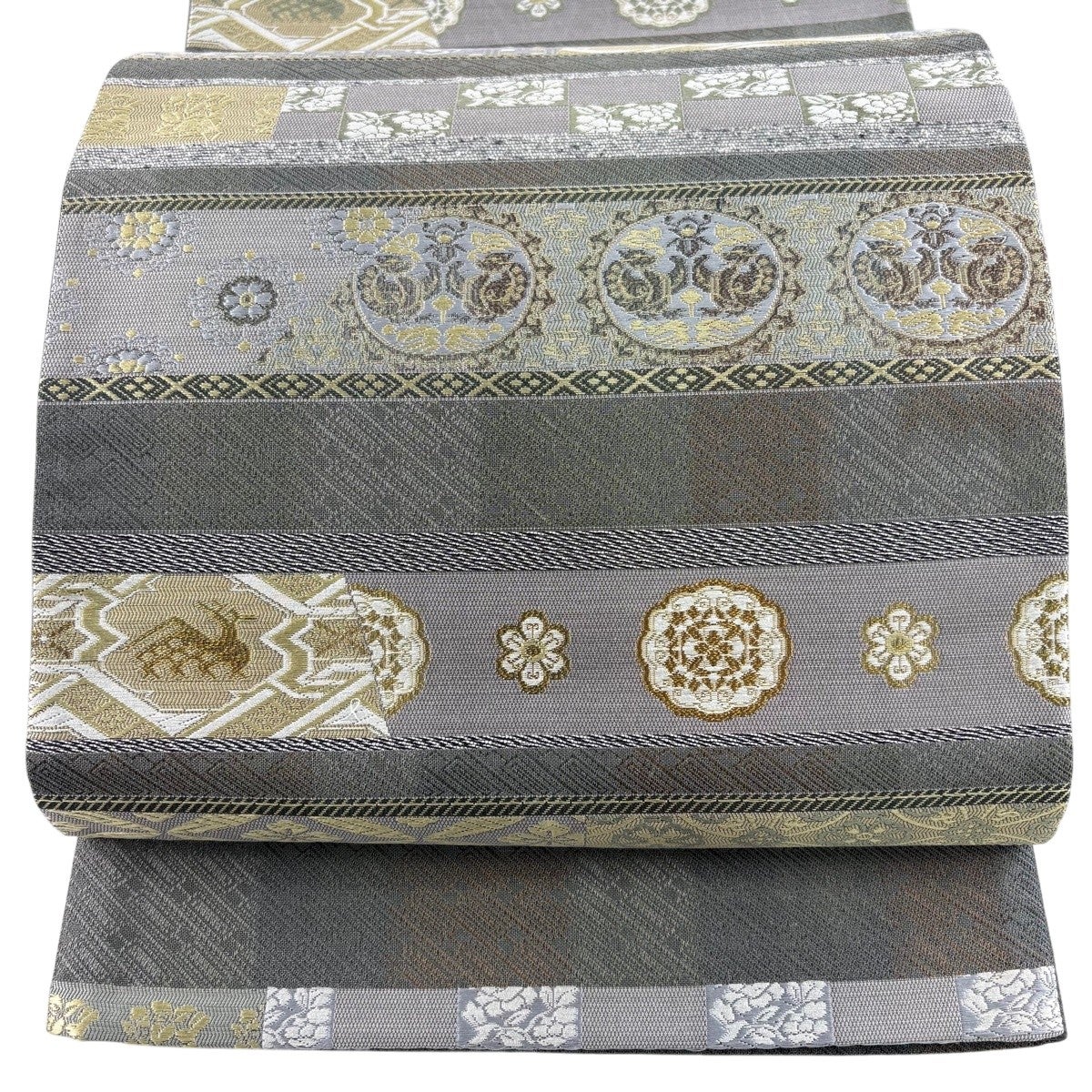 袋帯 秀品 波 松竹梅 箔 唐織 灰色 六通 正絹