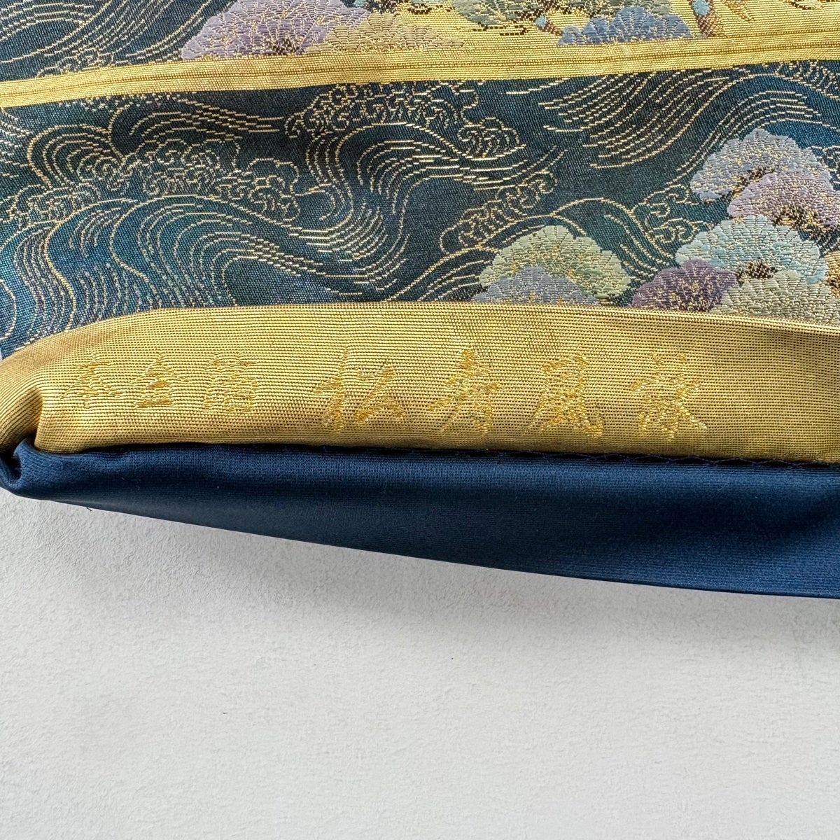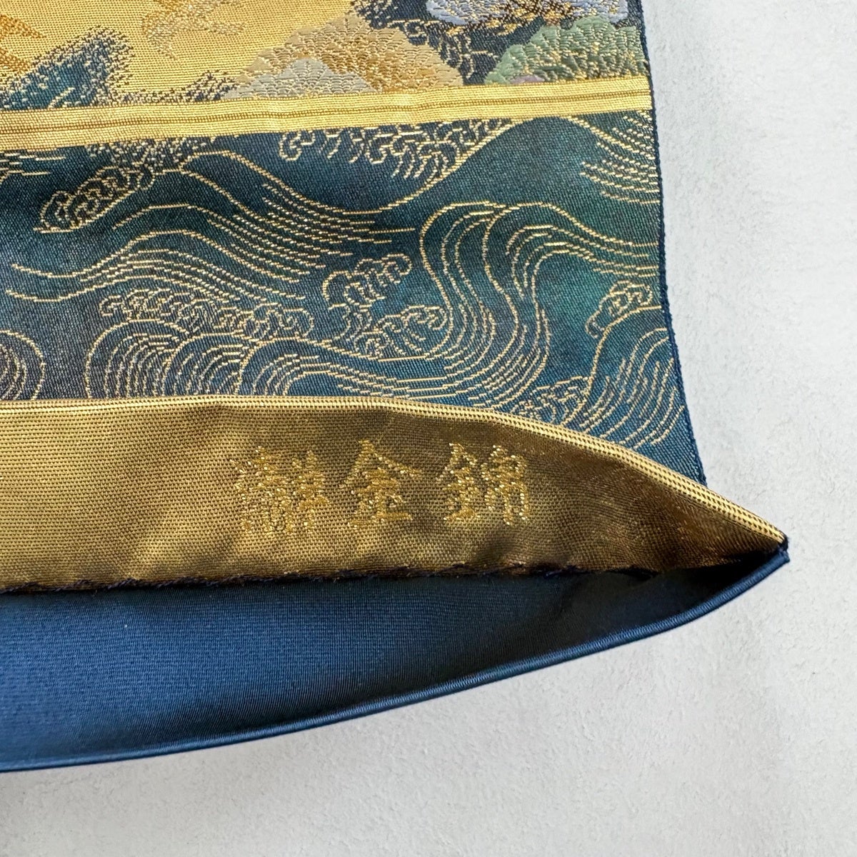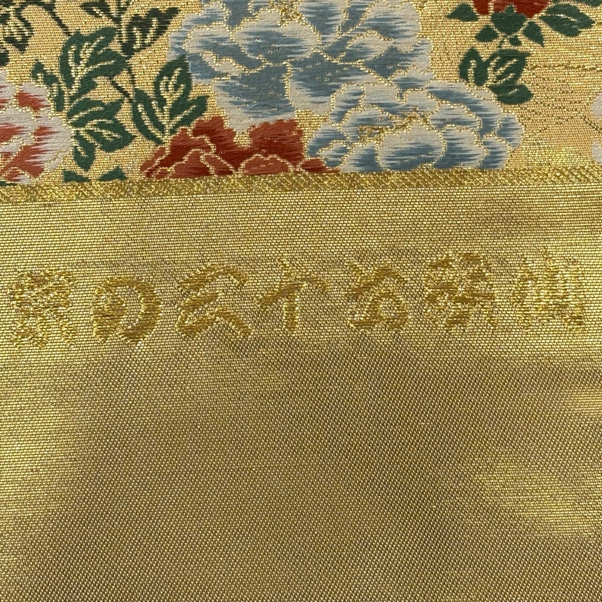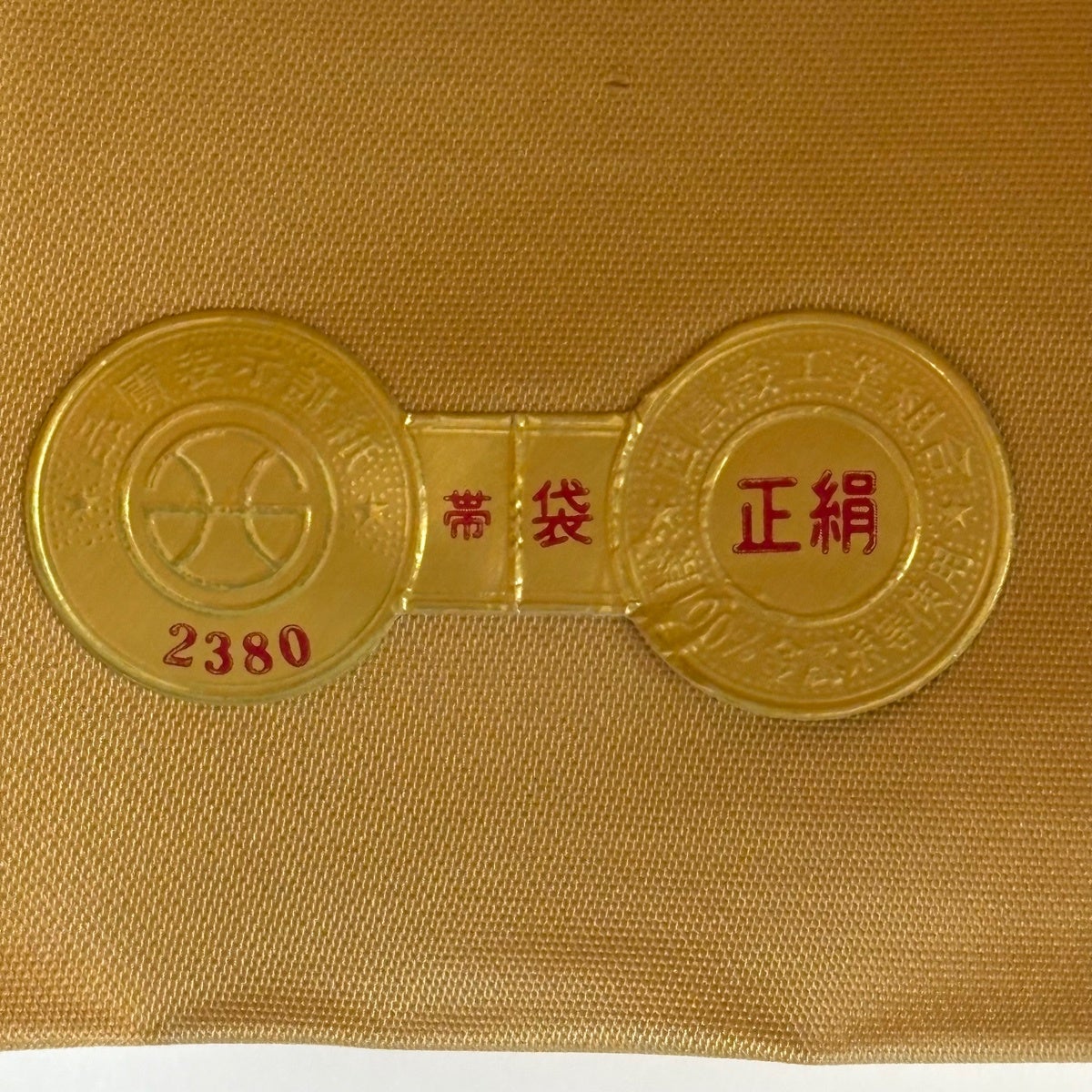 【美品】 袋帯 秀品 証紙あり 草花 波 唐織 箔 金色 六通 正絹