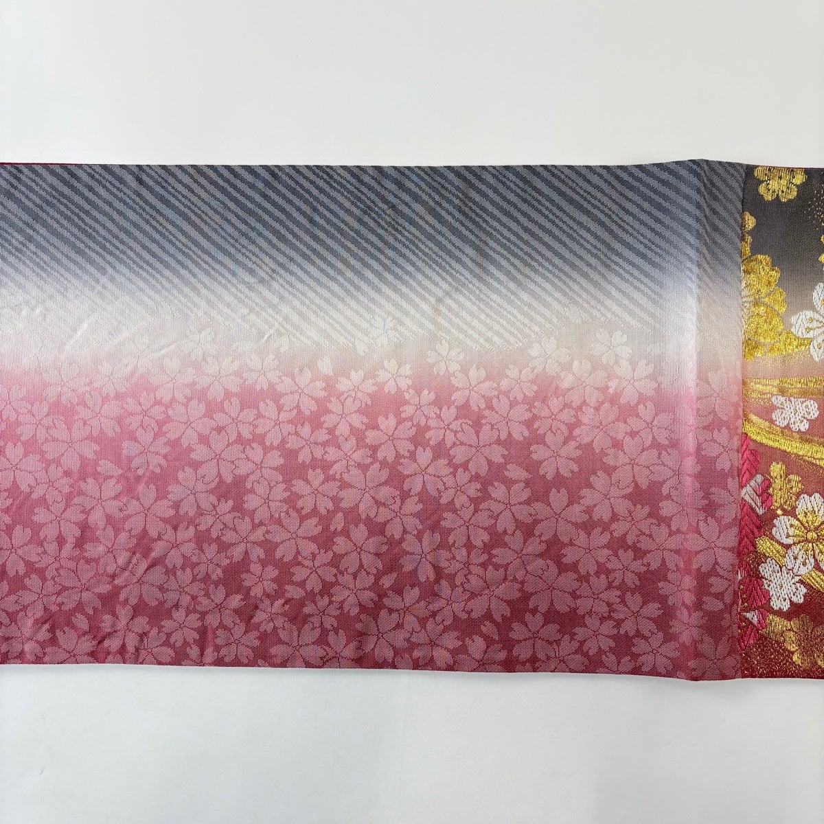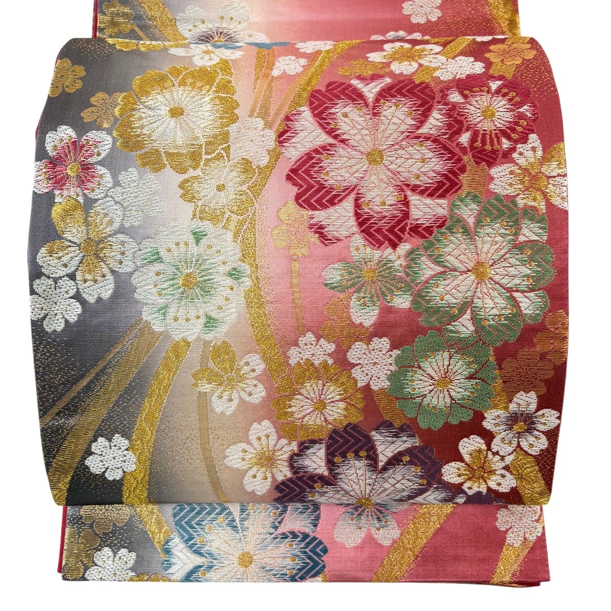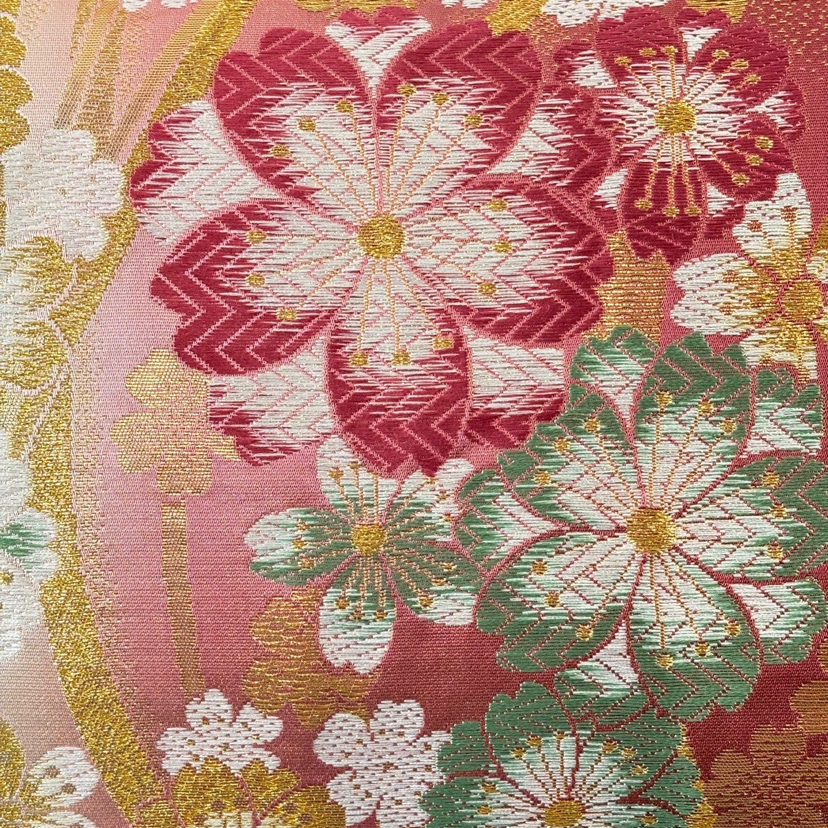 【美品】 袋帯 秀品 桜 蔓帯 箔 唐織 ピンク 六通 正絹