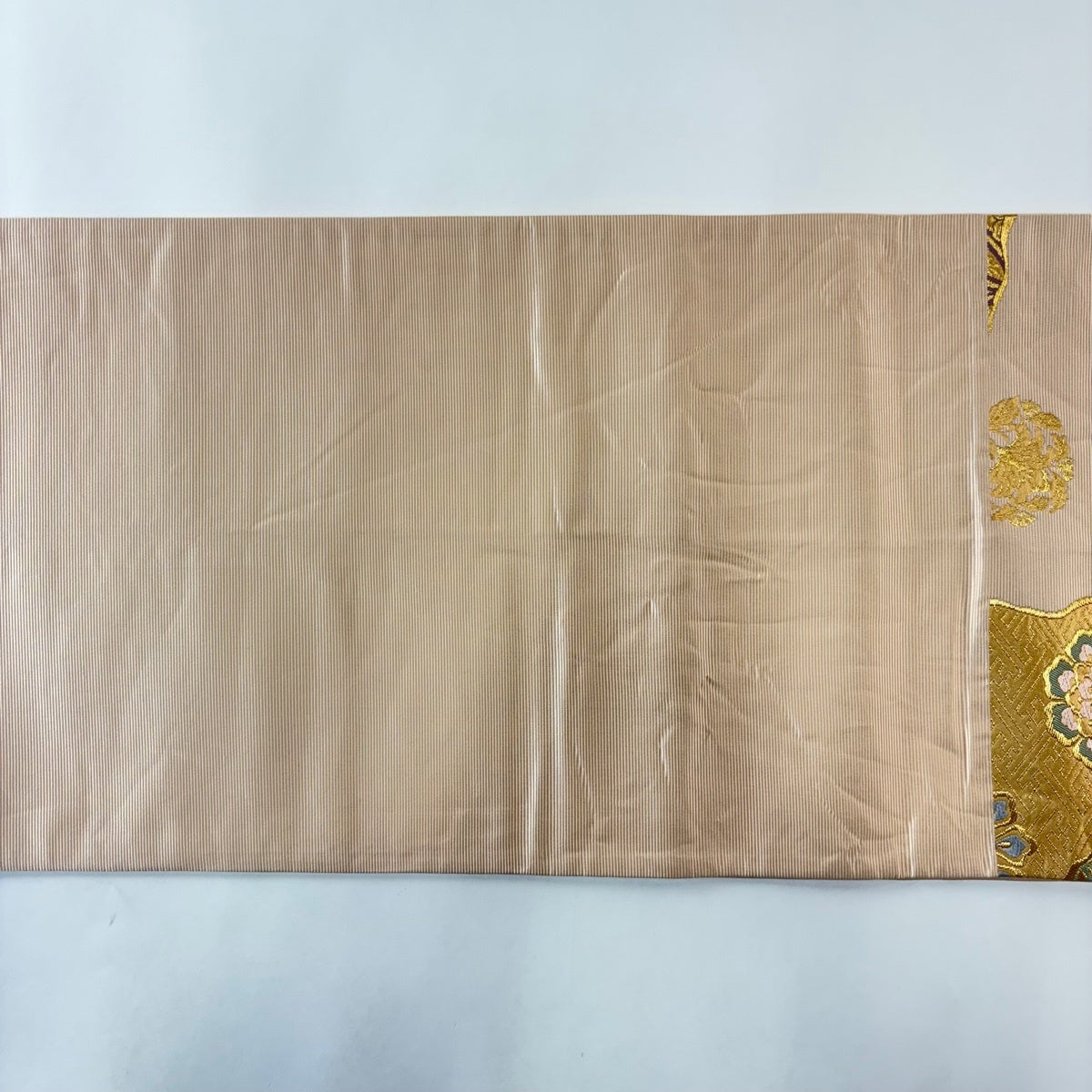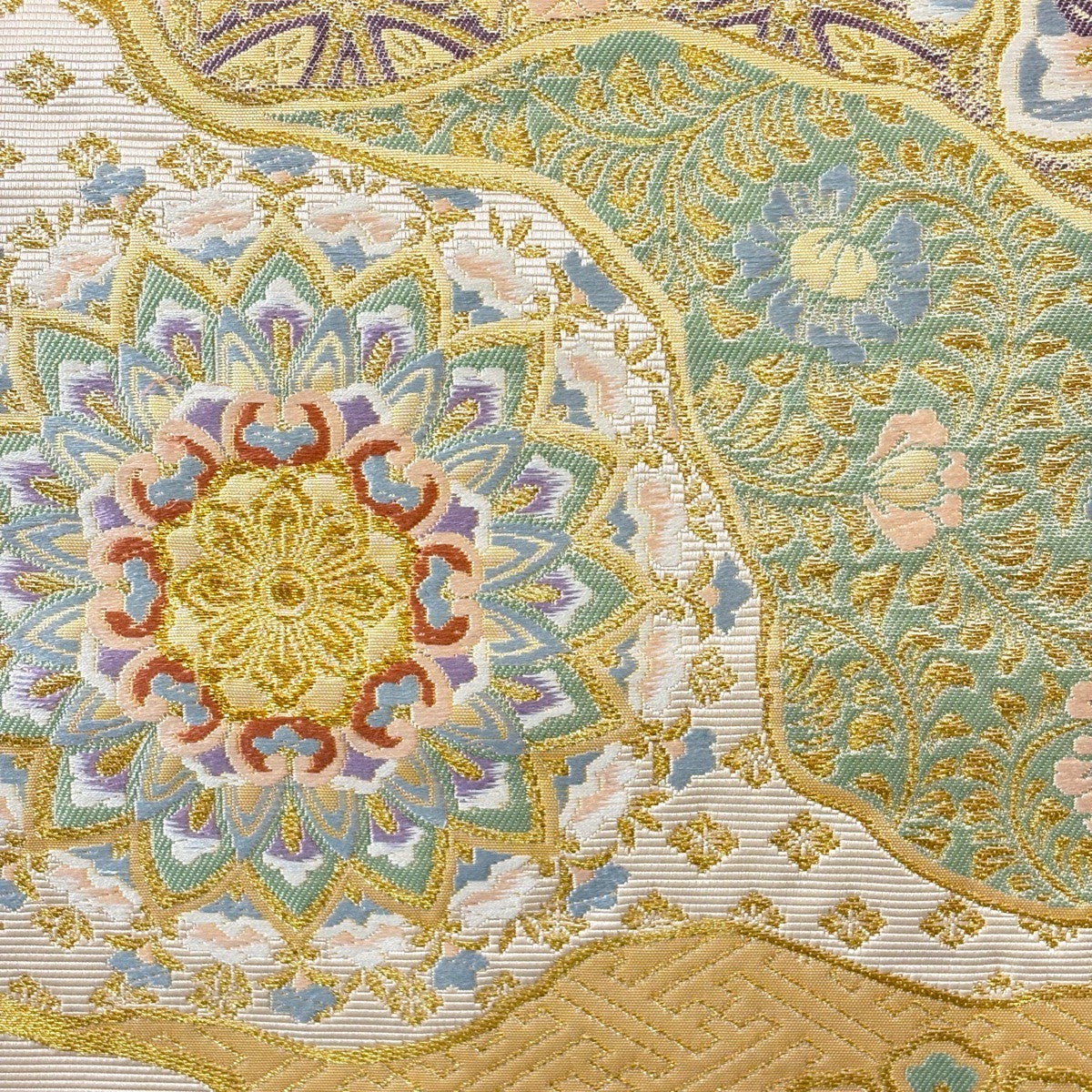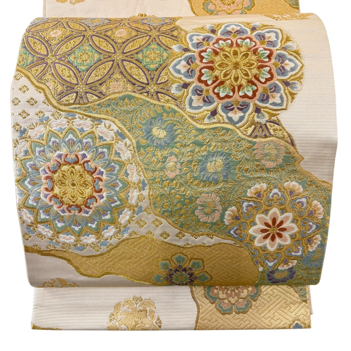 【美品】 袋帯 秀品 華文 七宝 箔 唐織 ベージュ 六通 正絹