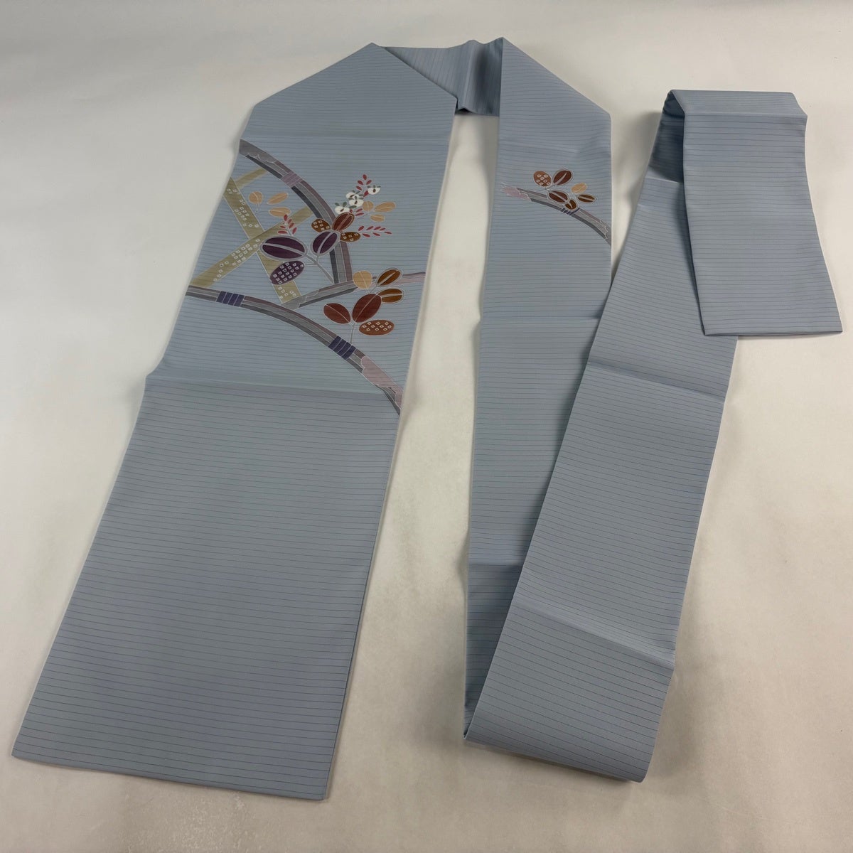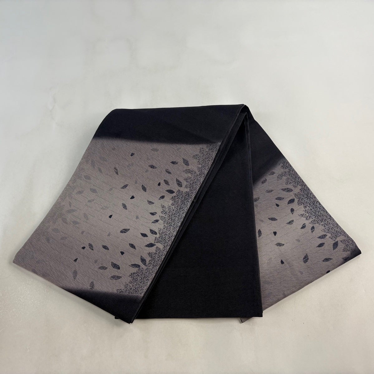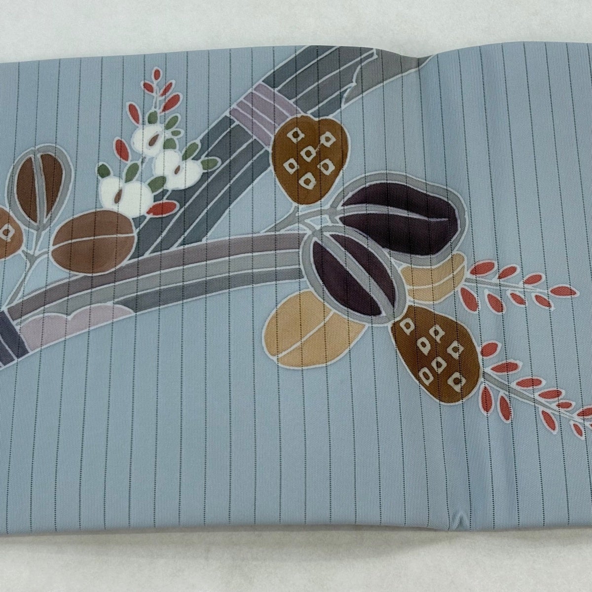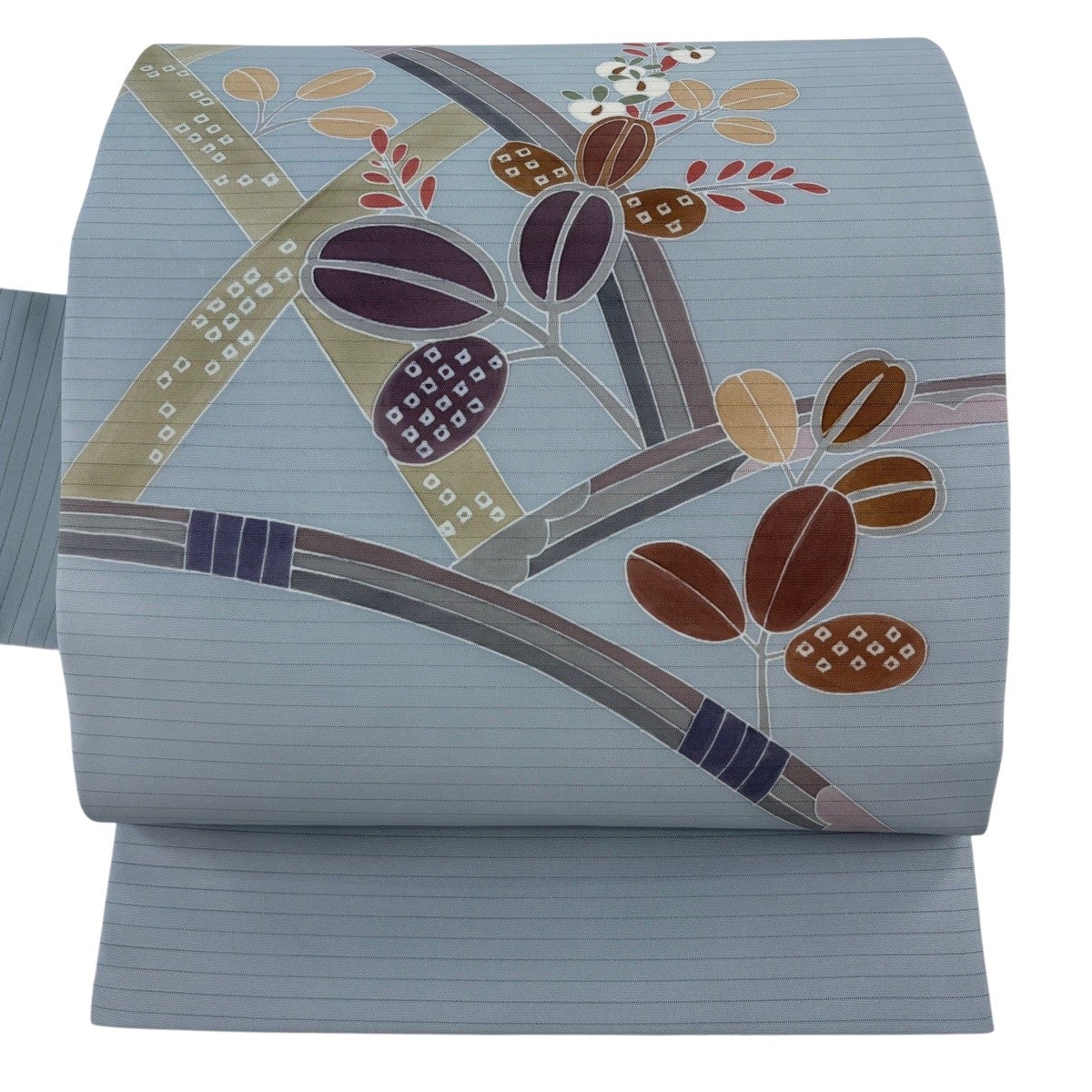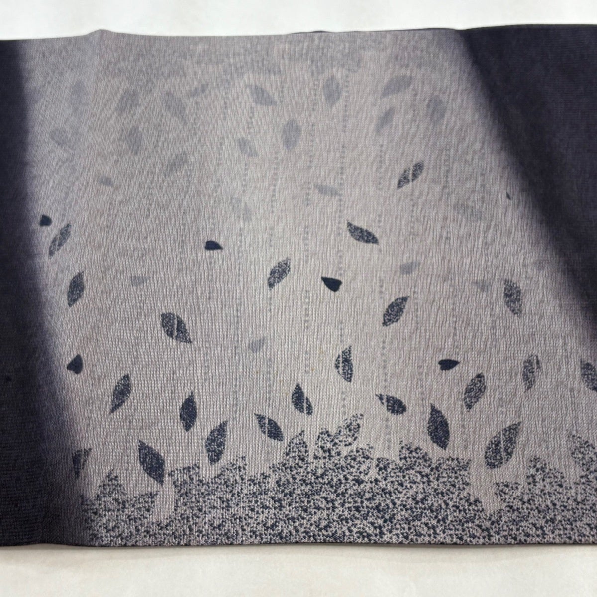 【美品】 袋帯 秀品 紬地 夏帯 葉 シルエット 灰紫 お太鼓柄 正絹