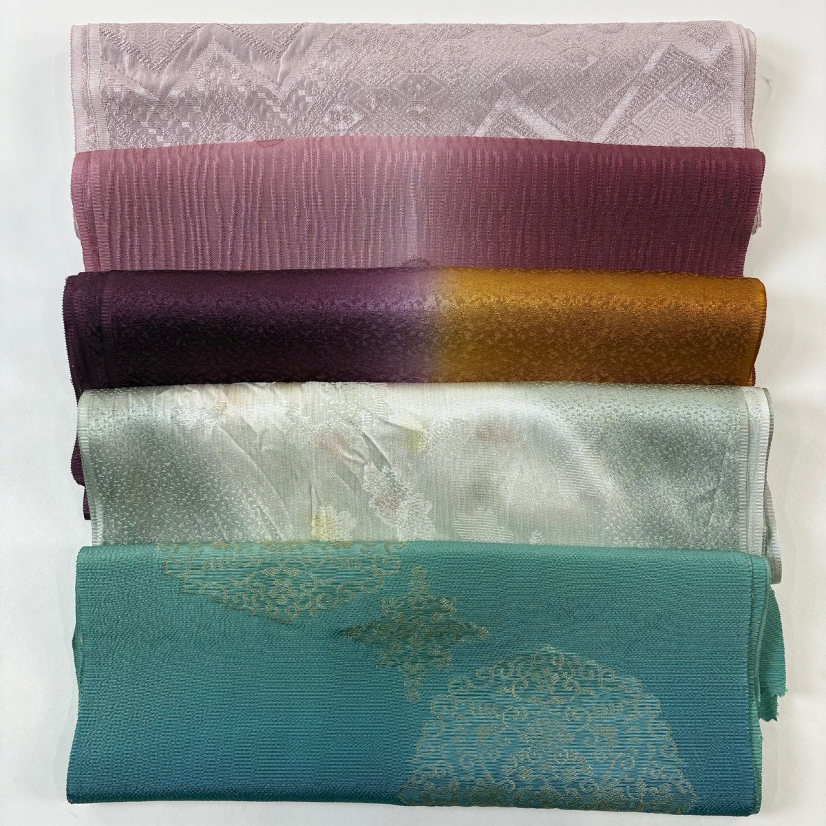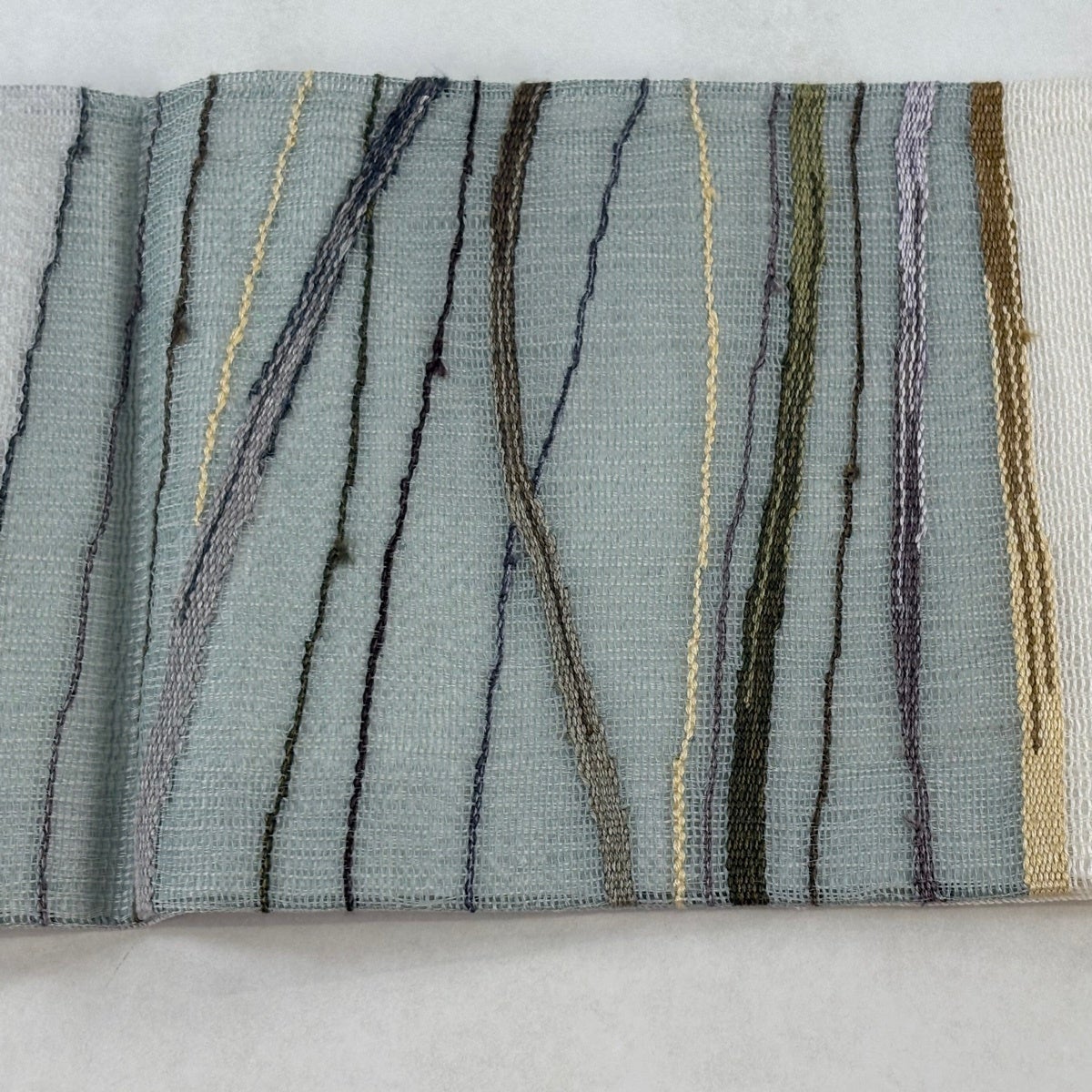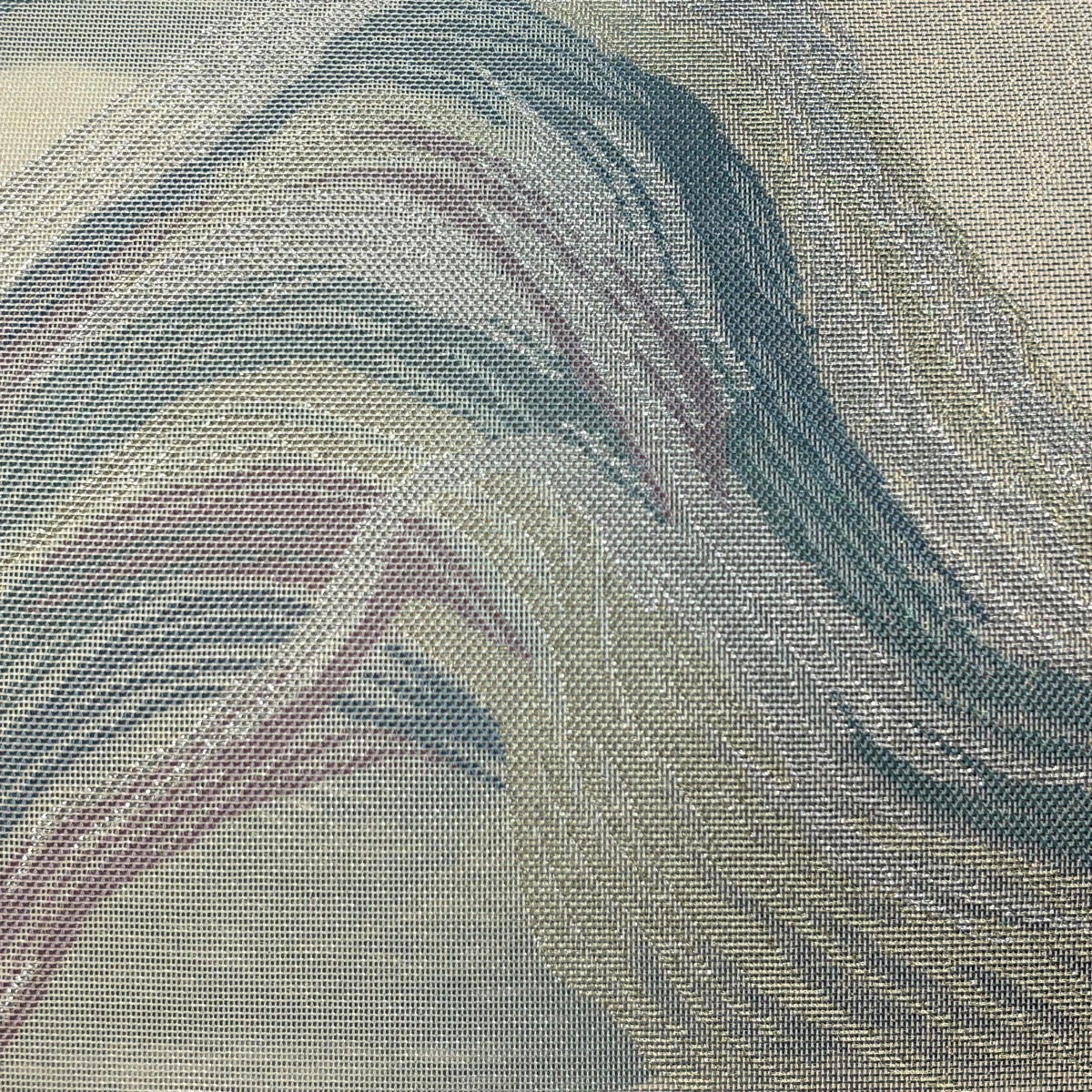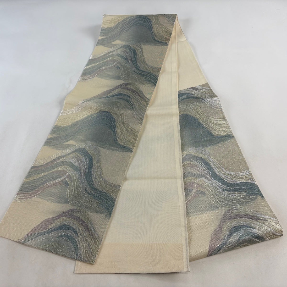 【美品】 袋帯 秀品 夏帯 霞 幾何学模様 箔 金銀糸 青灰色 六通 正絹