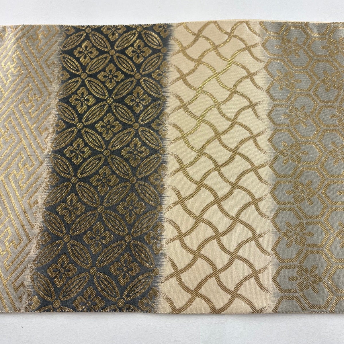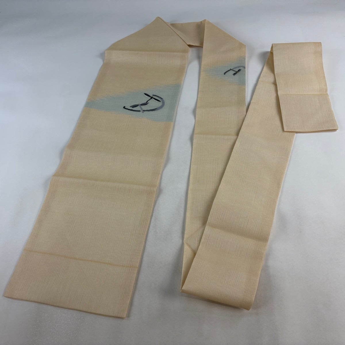 【美品】 袋帯 秀品 夏帯 紗 幾何学模様 金銀糸 箔 ベージュ 六通 正絹