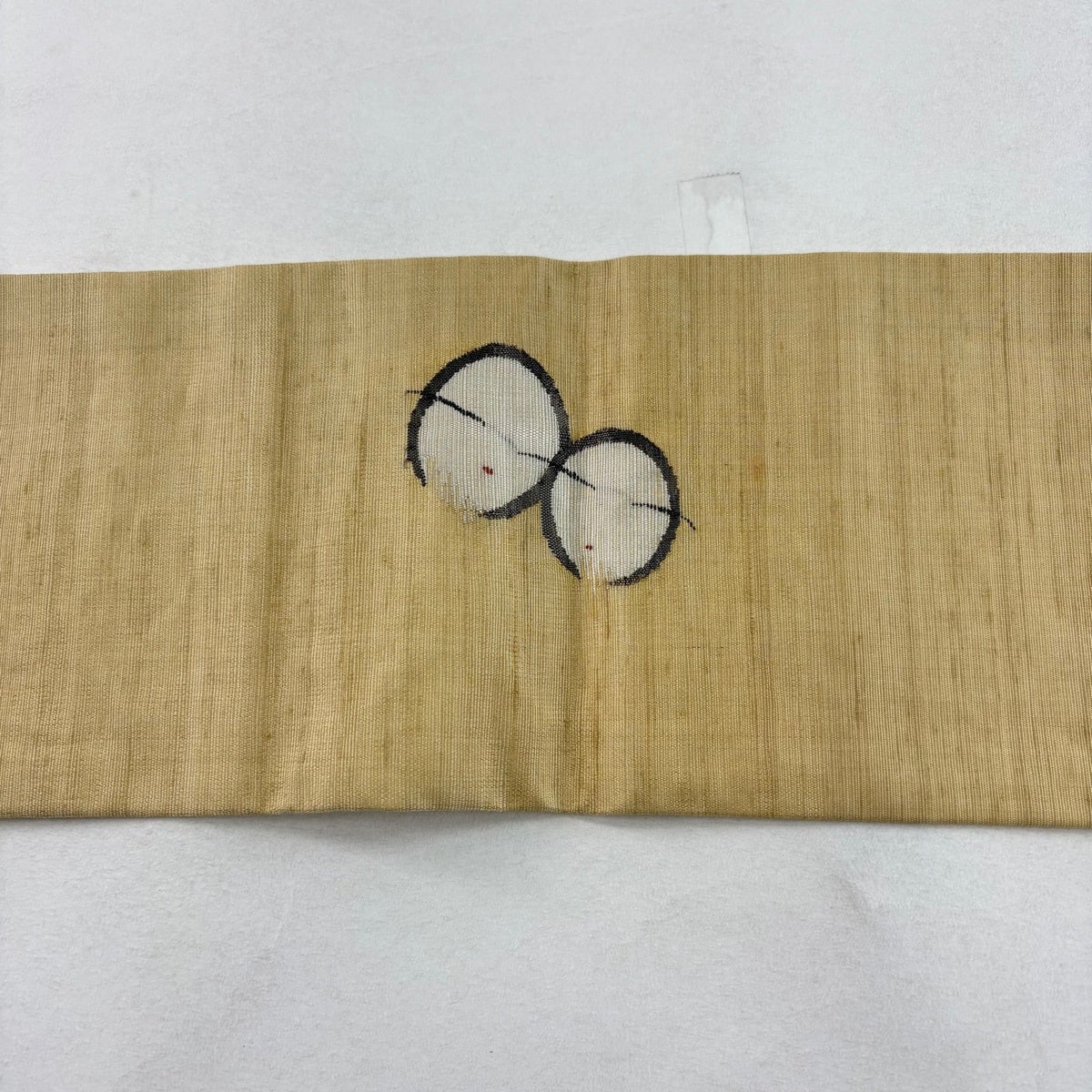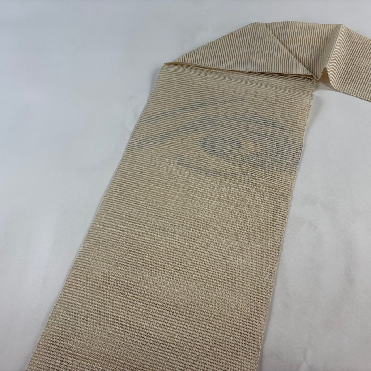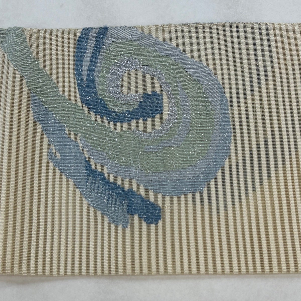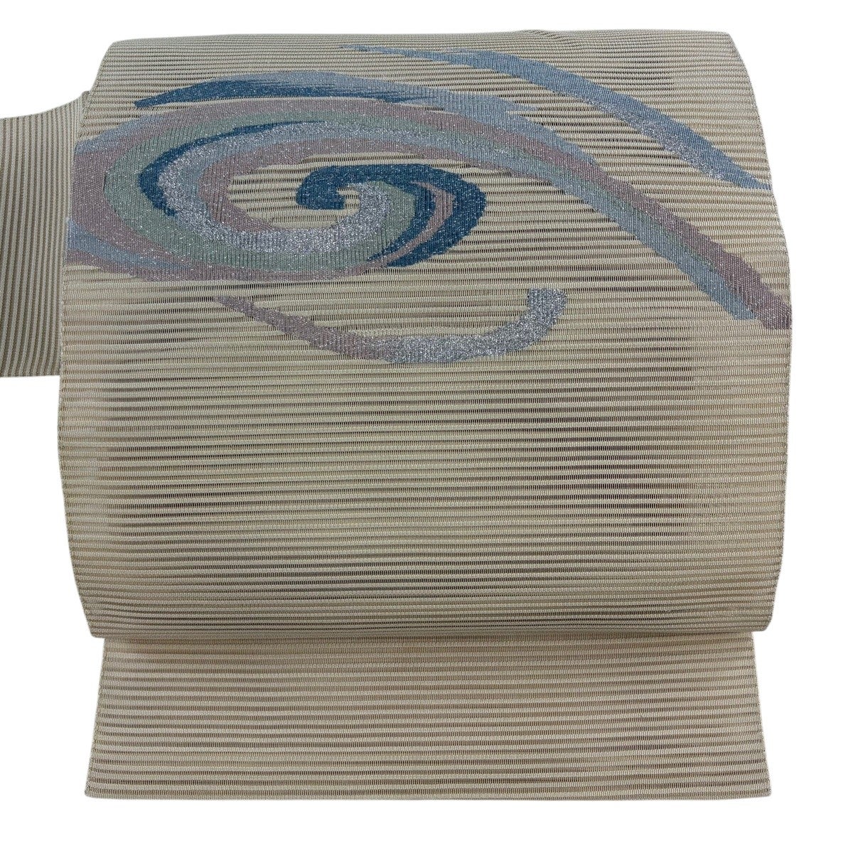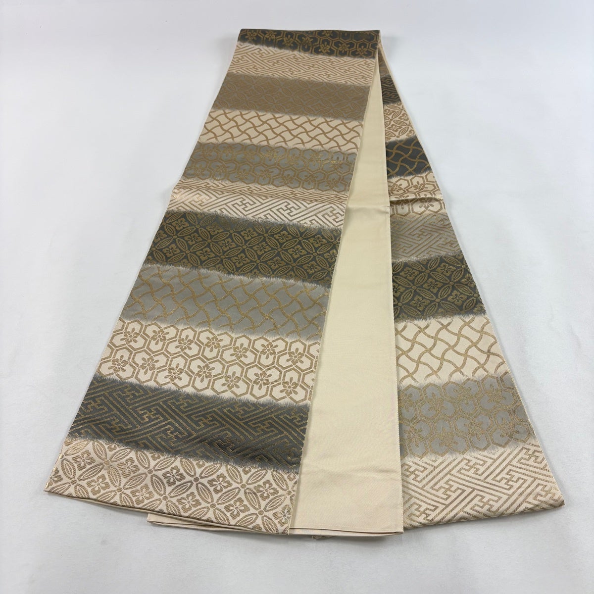 【美品】 袋名古屋帯 秀品 雪輪 縞 箔 クリーム 正絹