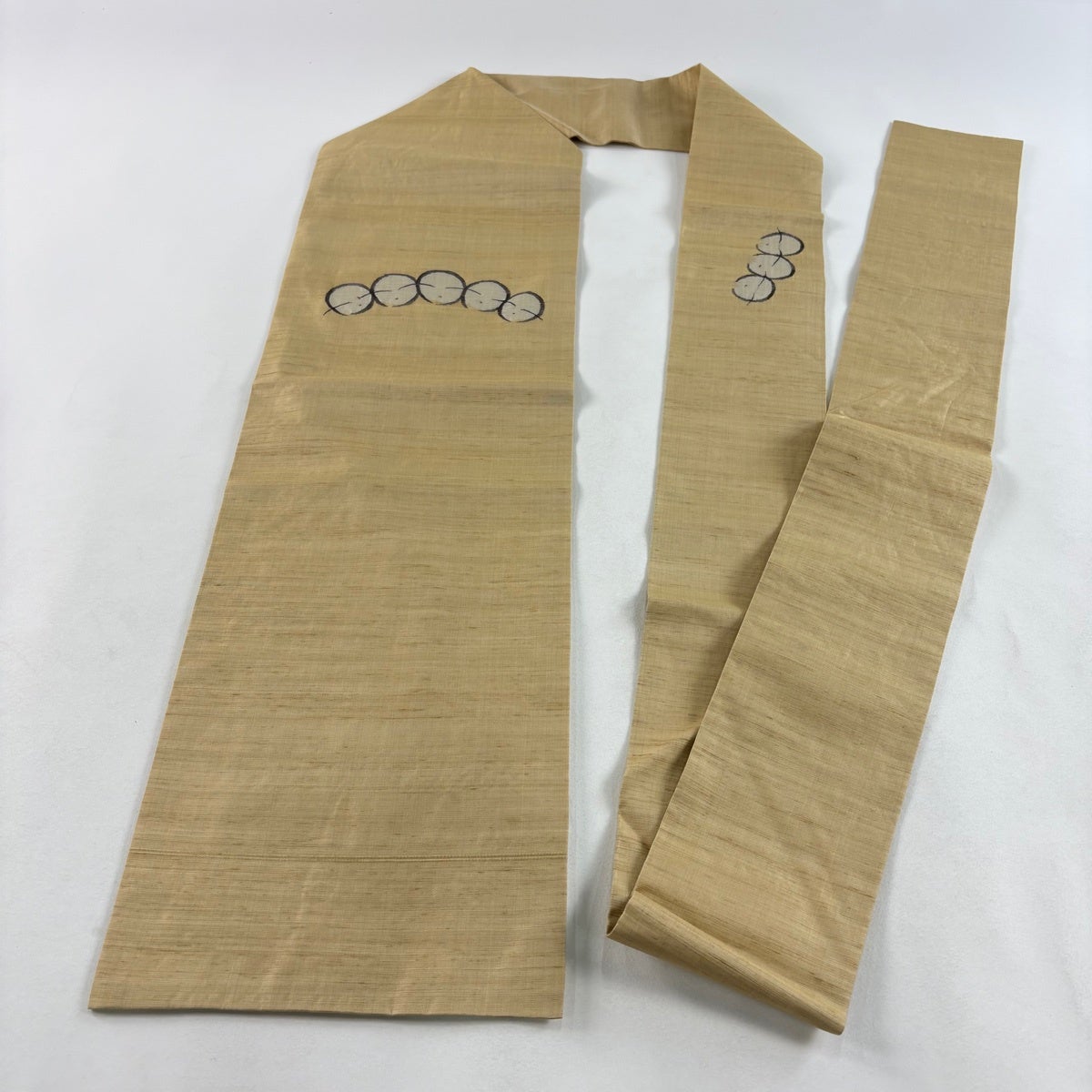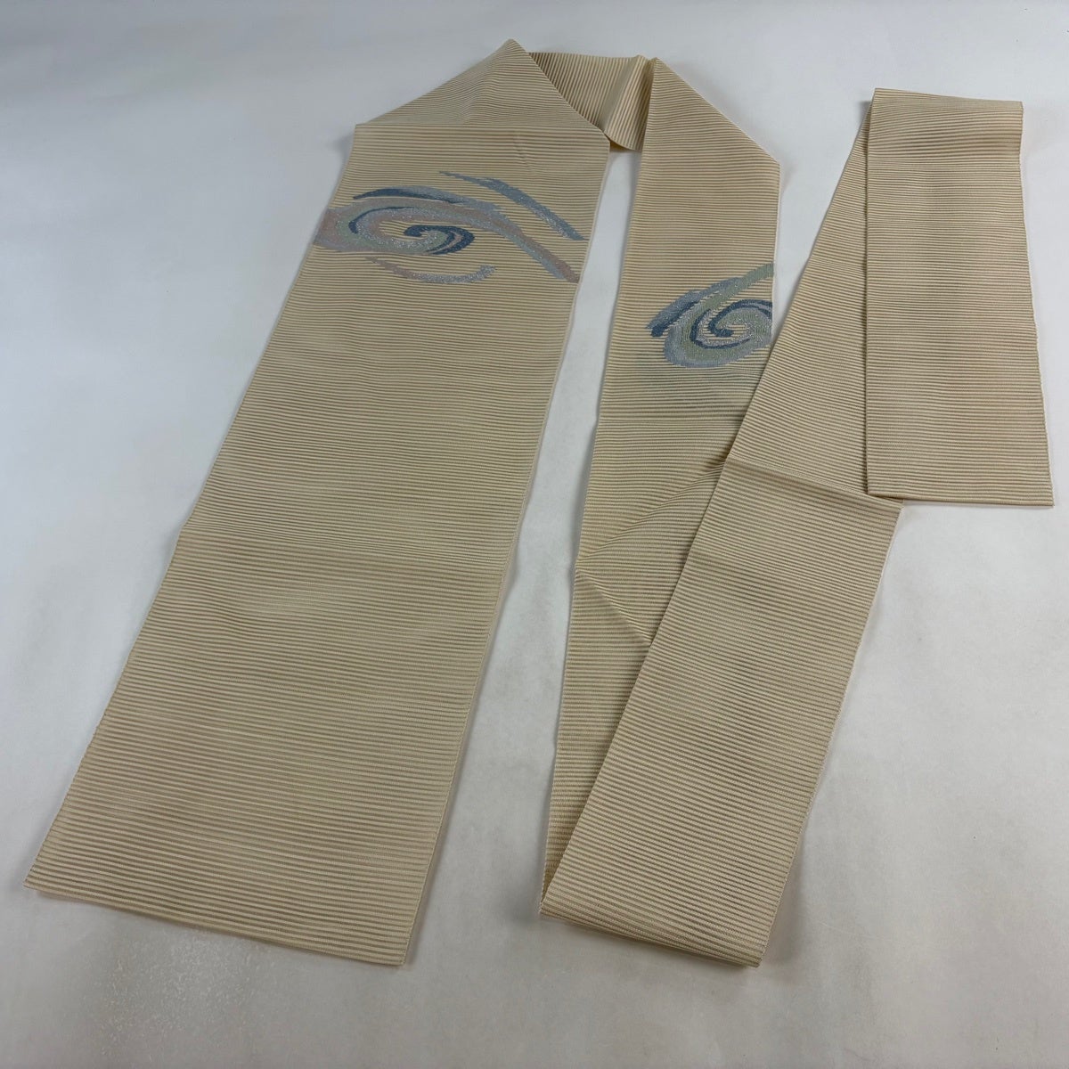 【美品】 名古屋帯 秀品 夏帯 絽 八寸名古屋帯 渦巻き 箔 ベージュ 正絹