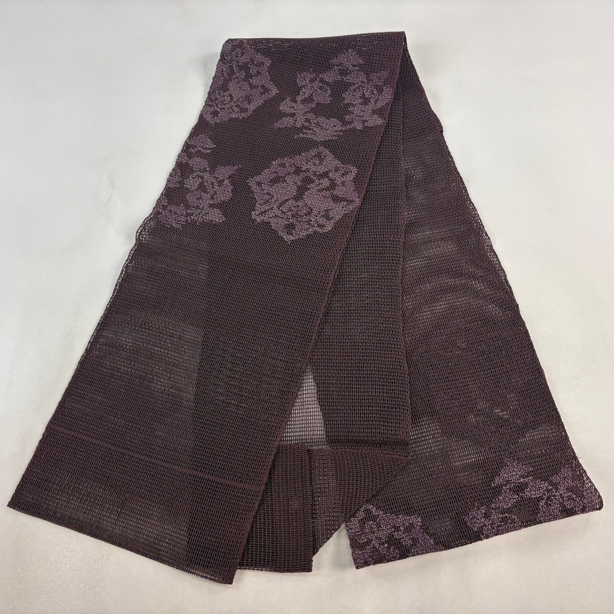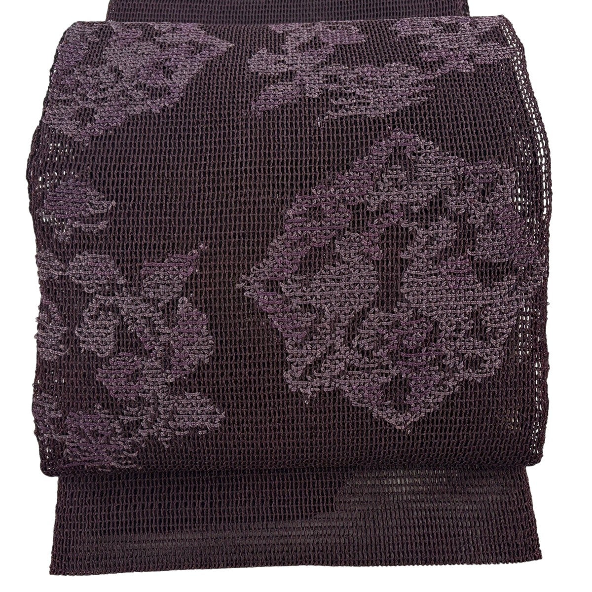 名古屋帯 秀品 夏帯 松葉仕立て 八寸名古屋帯 八寸名古屋帯 幾何学模様 紫 正絹