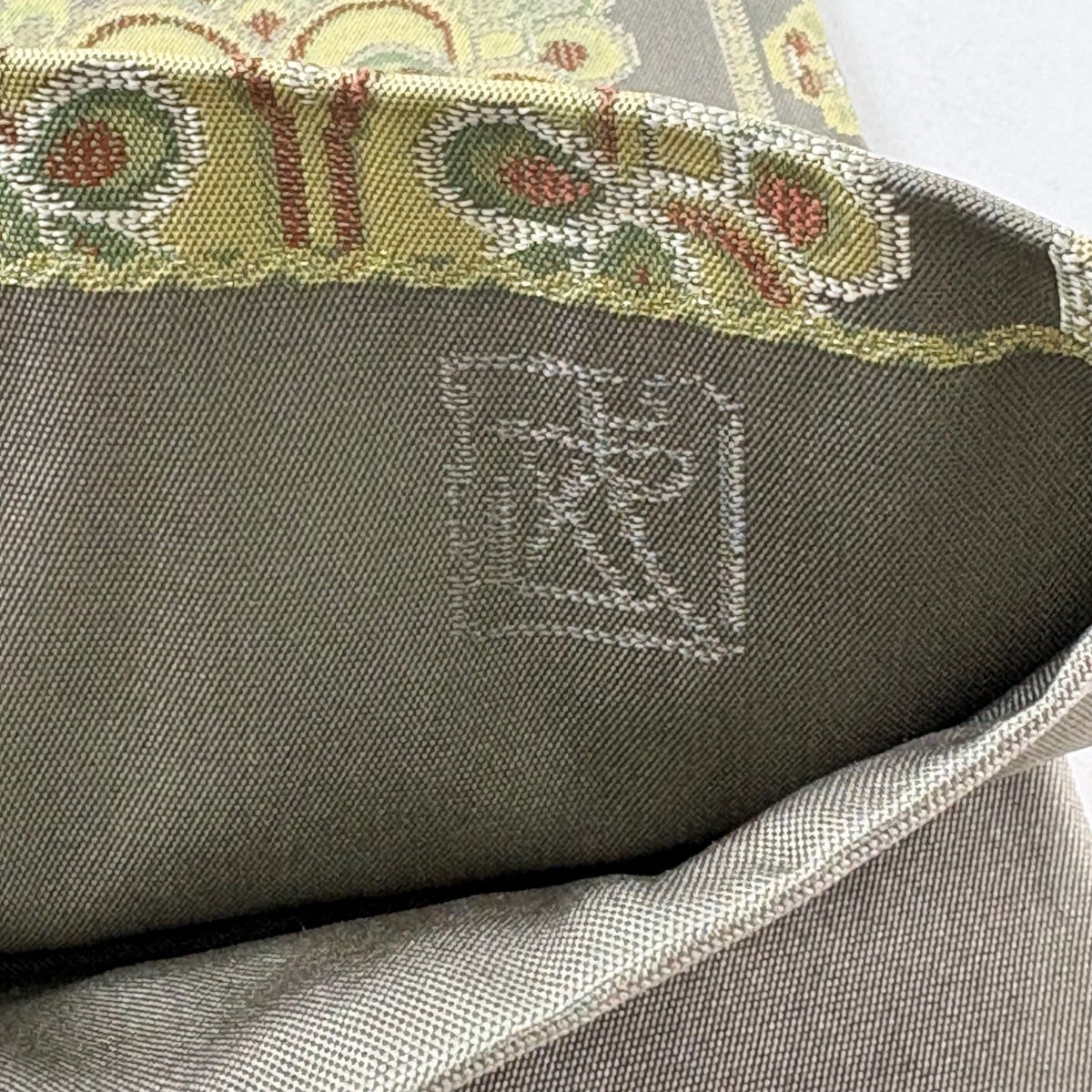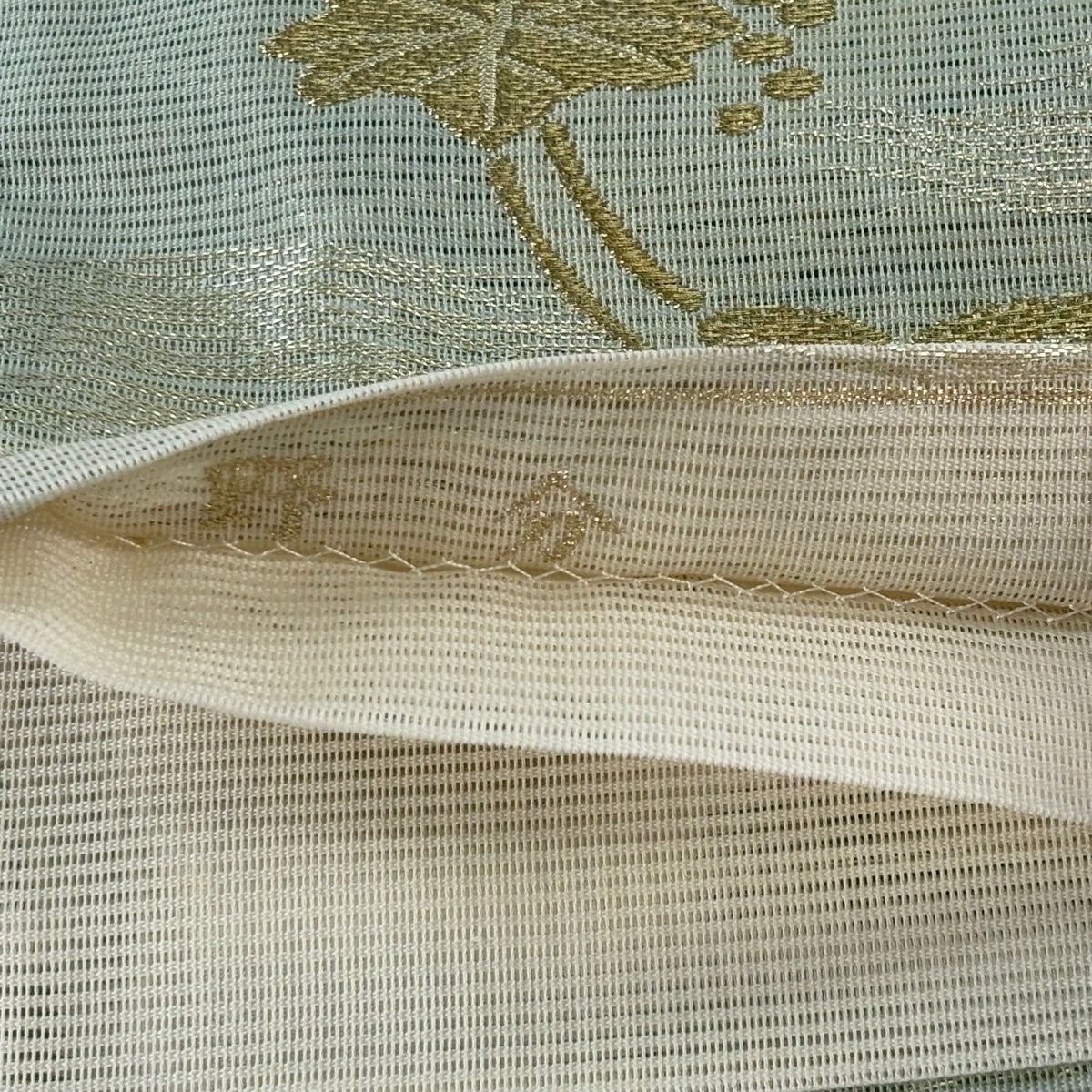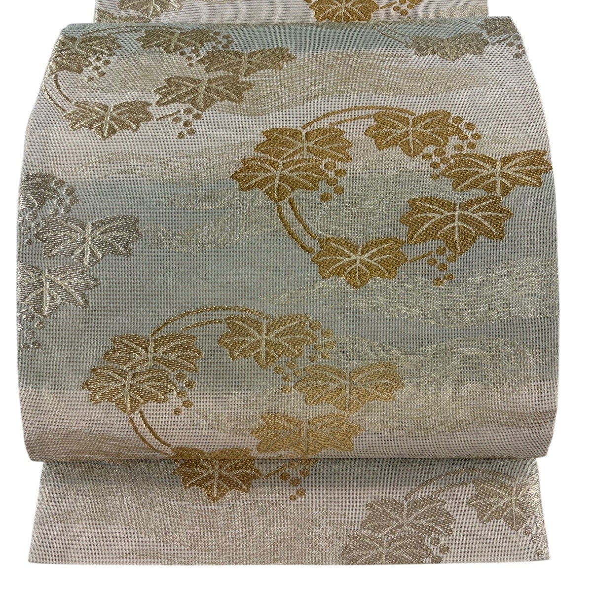 【美品】 袋帯 秀品 夏帯 絽 葉柄 金銀糸 灰緑 お太鼓柄 正絹