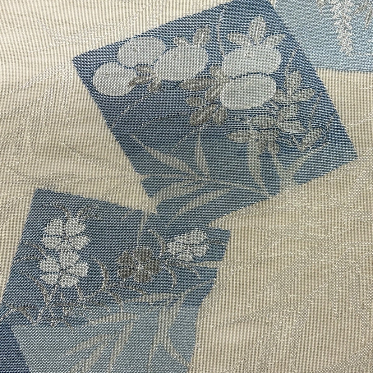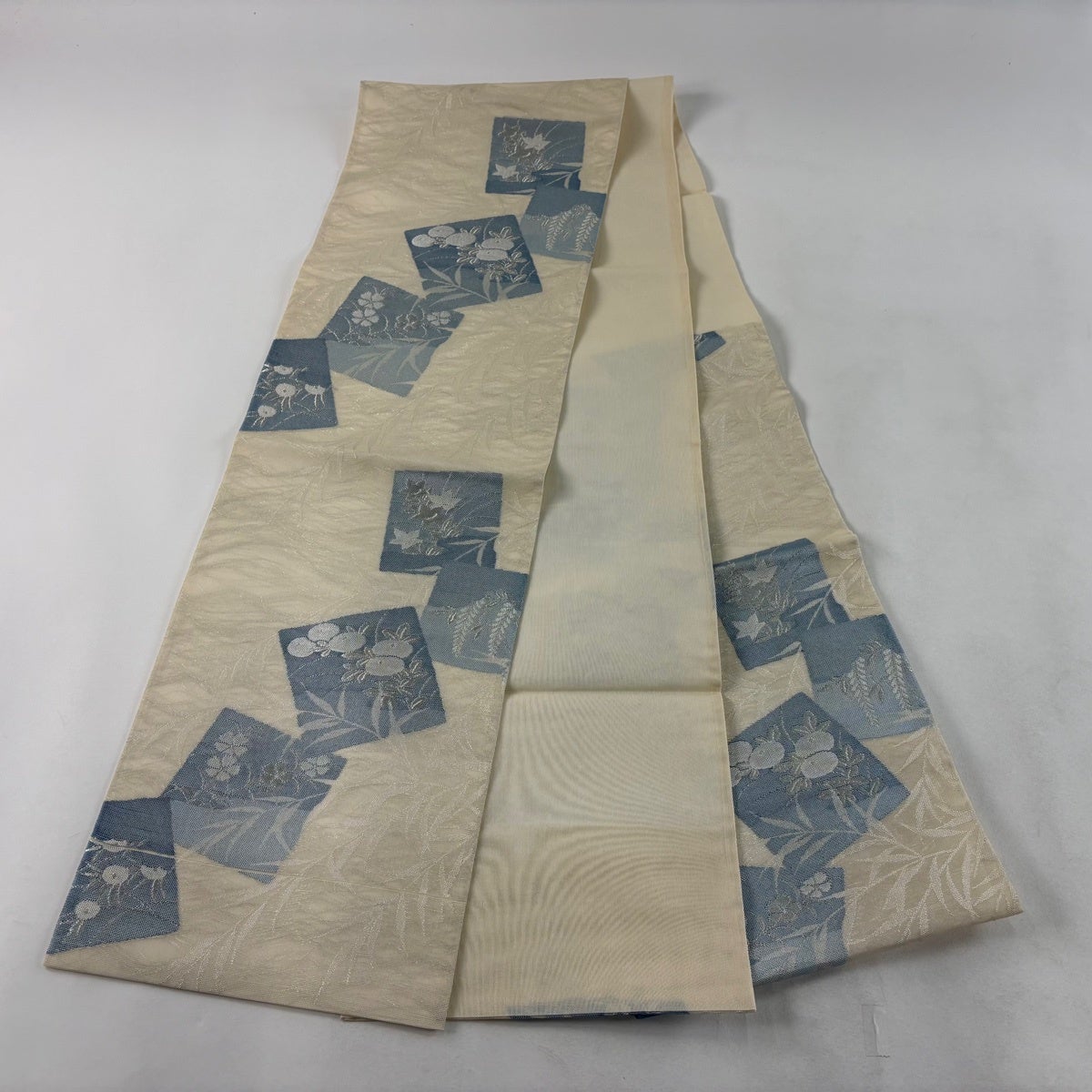袋帯 秀品 夏帯 絽 関西仕立て 草花 流水 箔 銀糸 灰白 六通 正絹