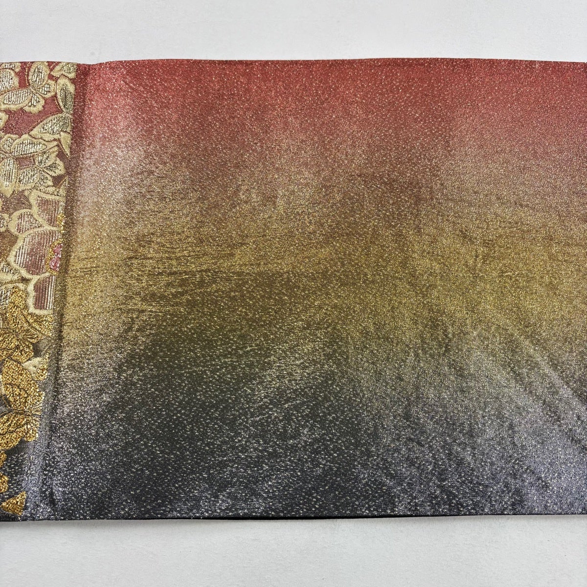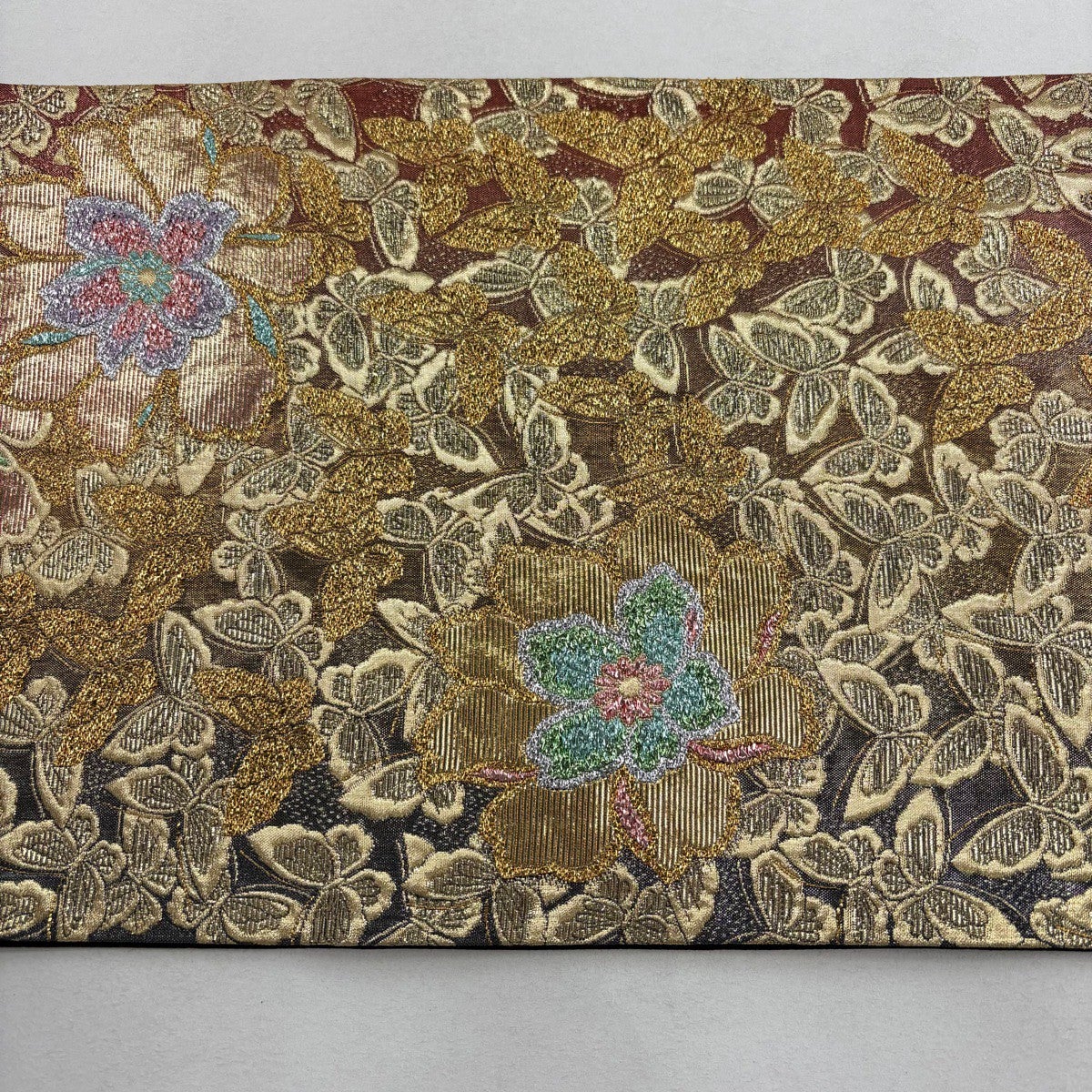 袋帯 秀品 ますいわ屋 華文 花唐草 箔 焦茶色 六通 正絹