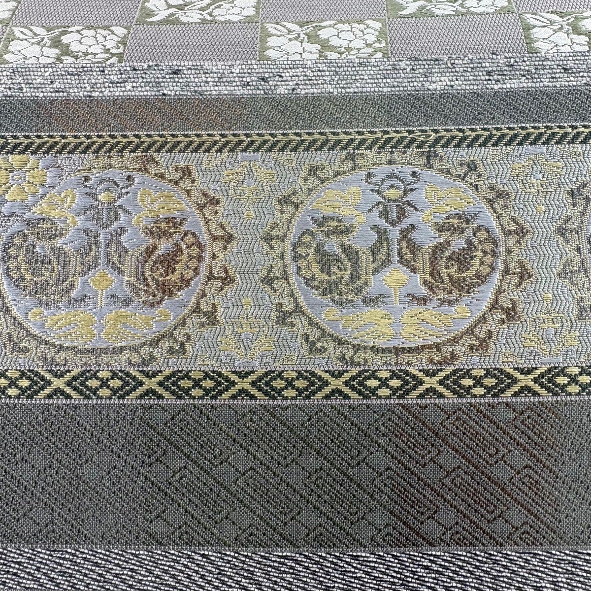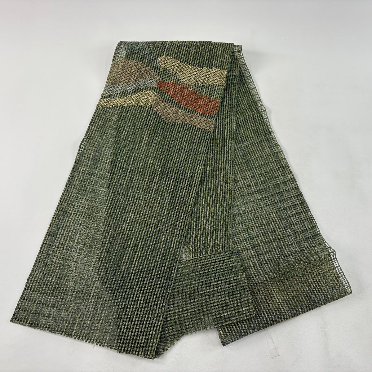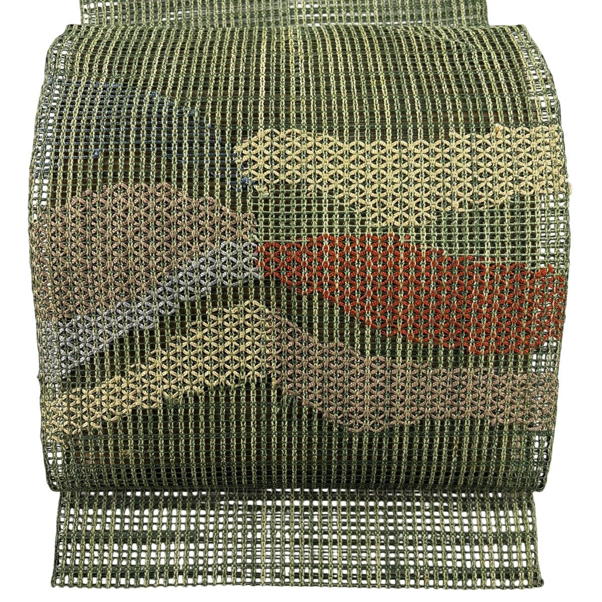 袋帯 秀品 夏帯 木目 深緑 全通 正絹