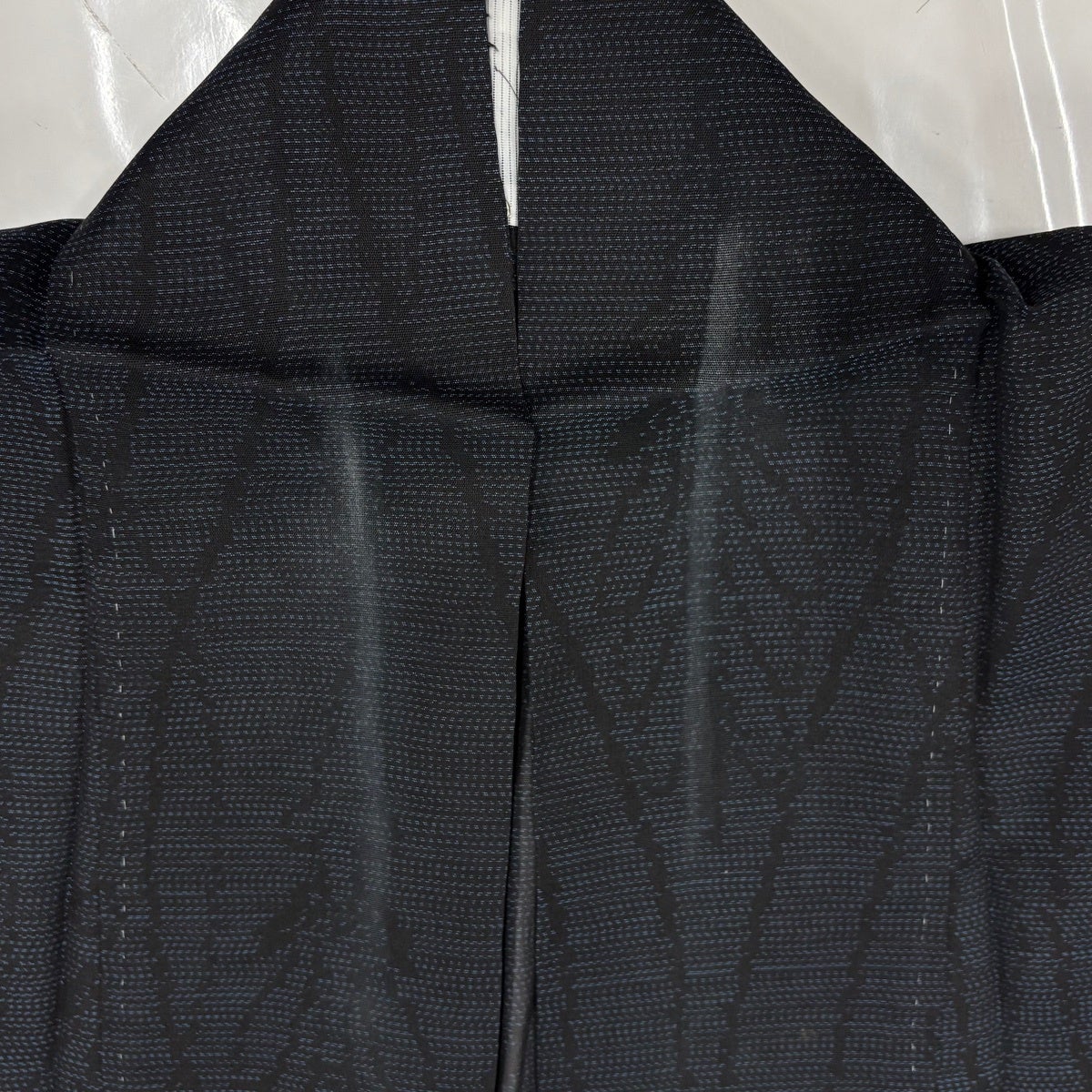 紬 身丈158cm 裄丈64cm M 袷 華文 斜め格子 黒灰 正絹 優品