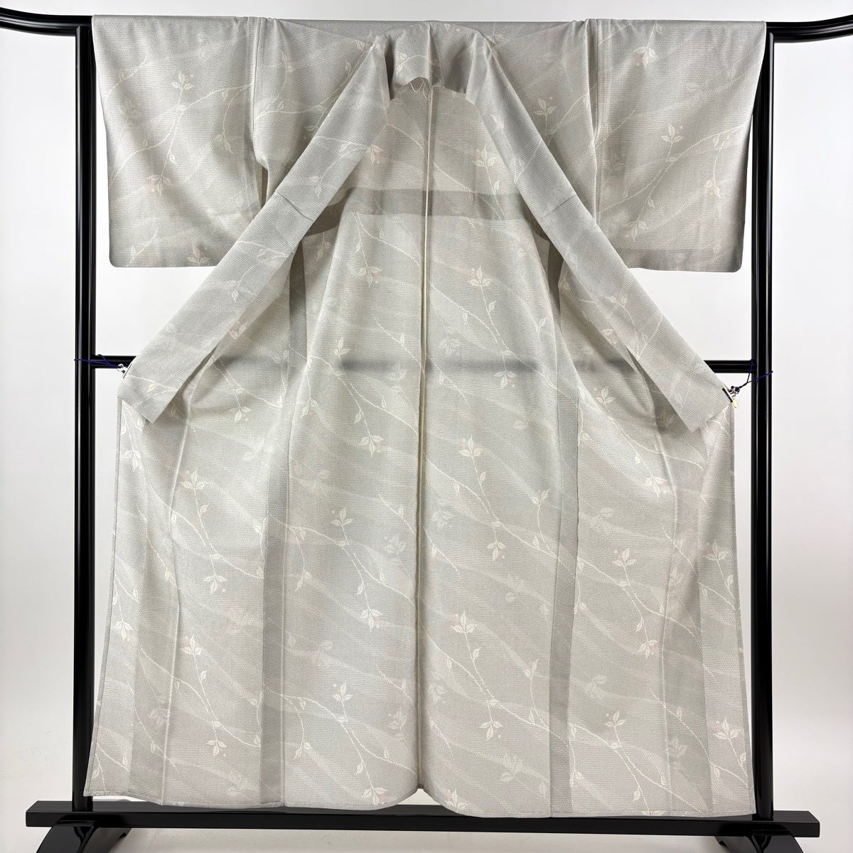 付下げ 身丈160cm 裄丈65cm M 袷 花器 葉柄 灰白 正絹 優品