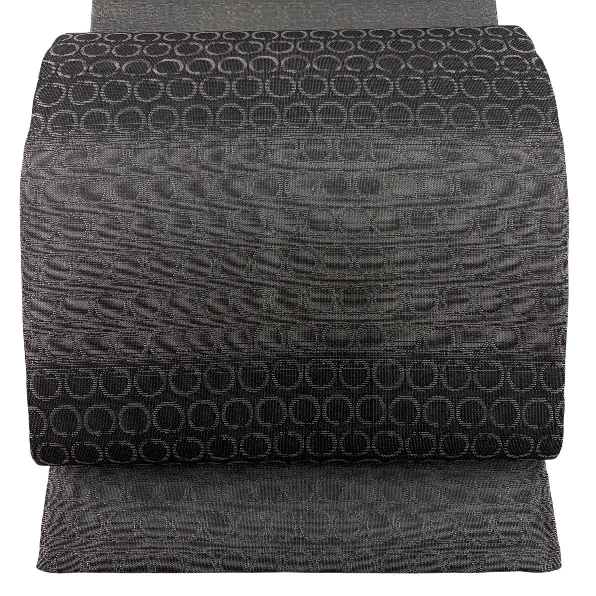 【美品】 袋帯 秀品 夏帯 幾何学模様 黒 お太鼓柄 正絹