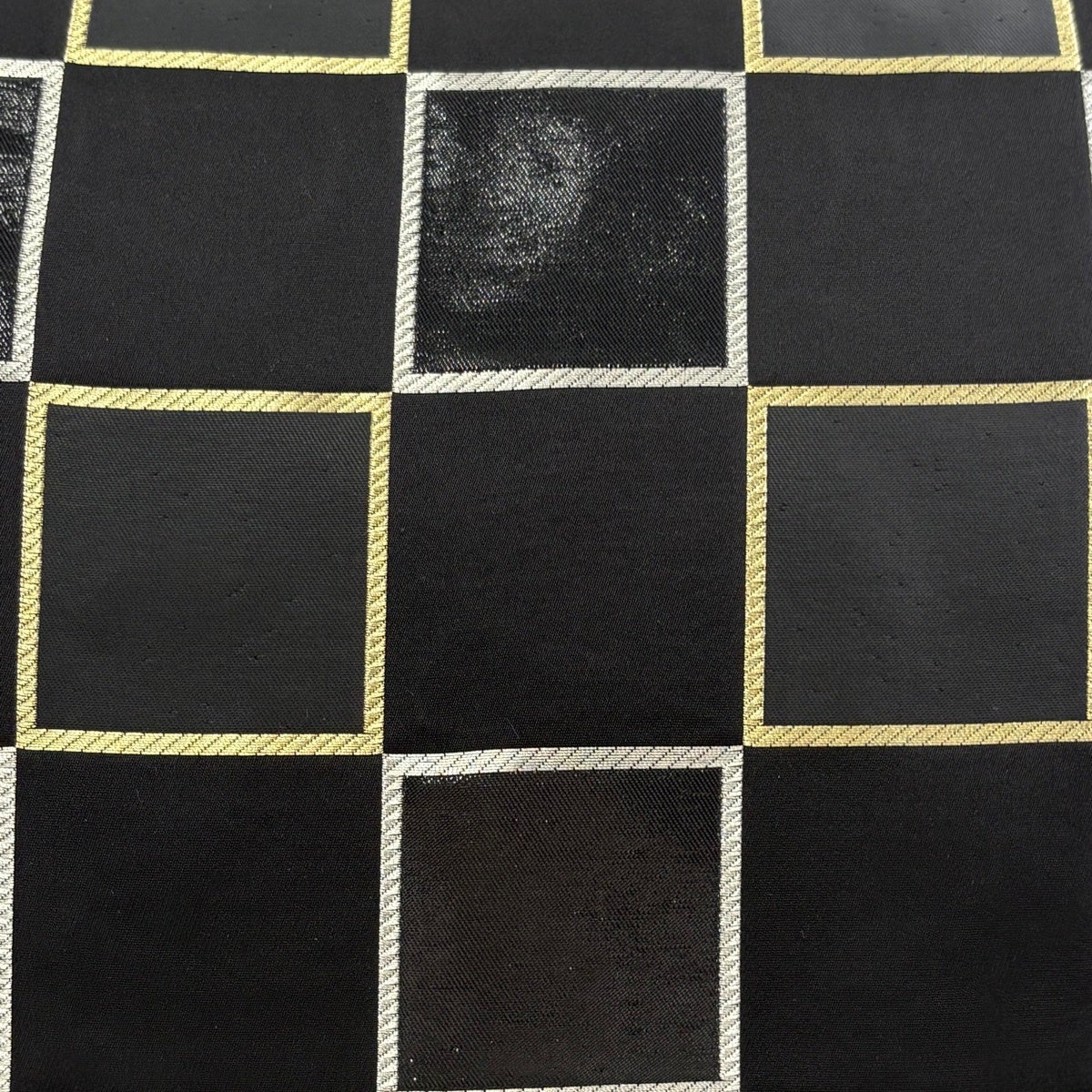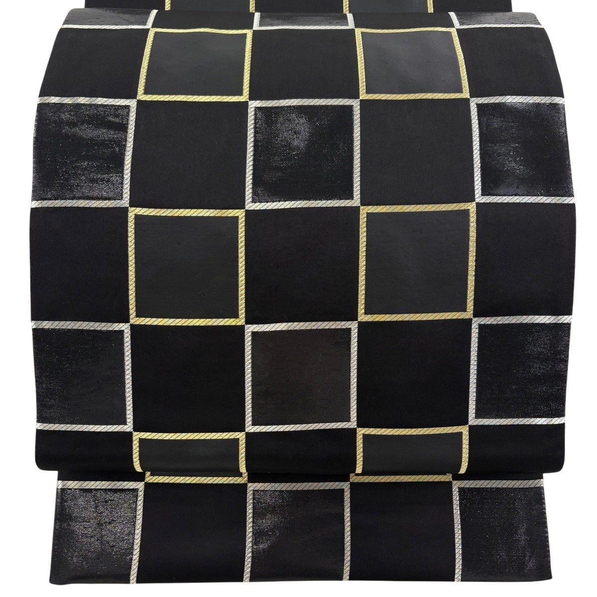 名古屋帯 秀品 夏帯 幾何学模様 金糸 黒 正絹