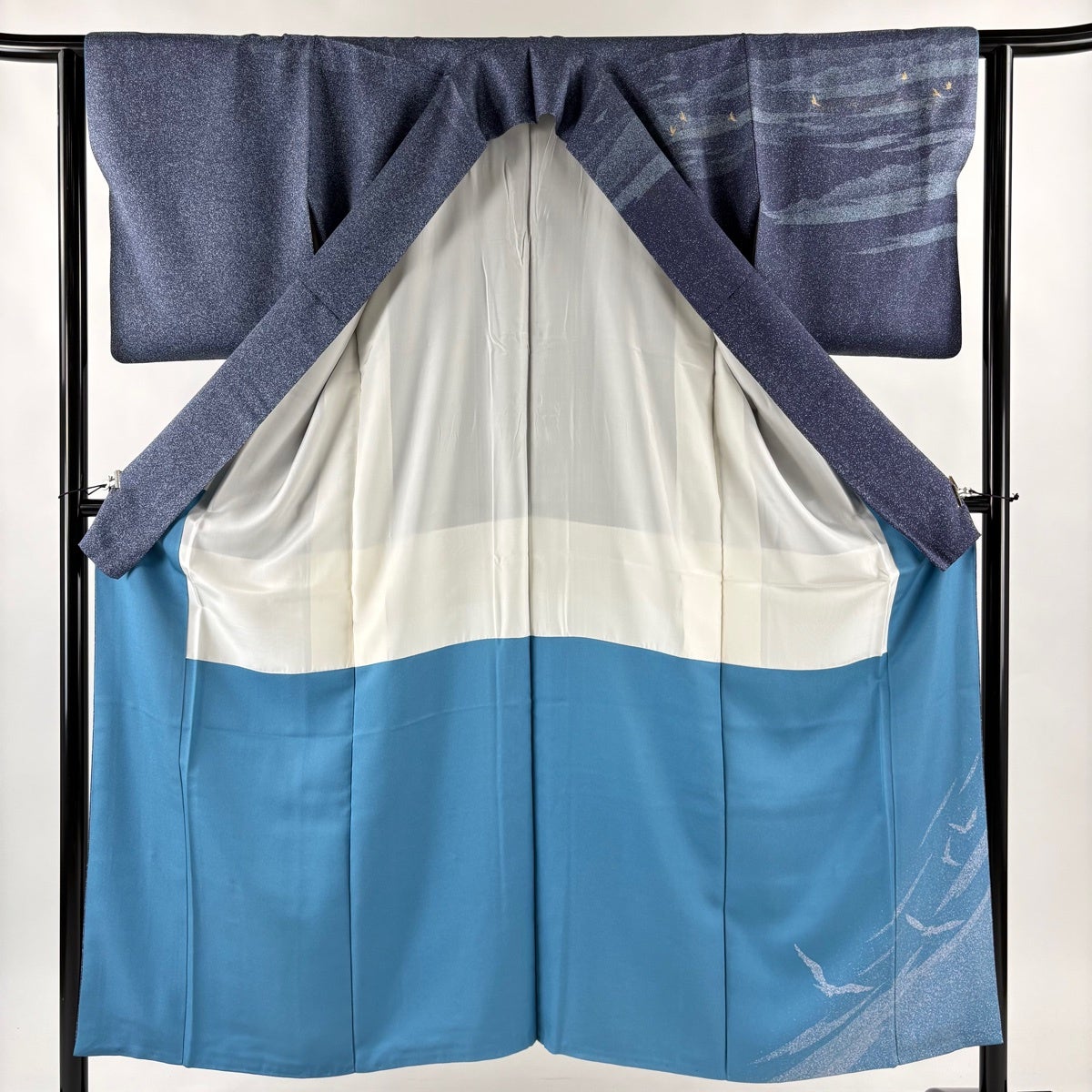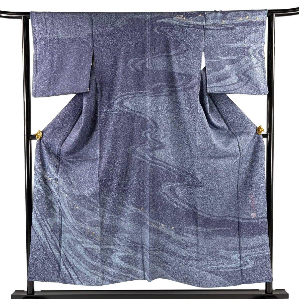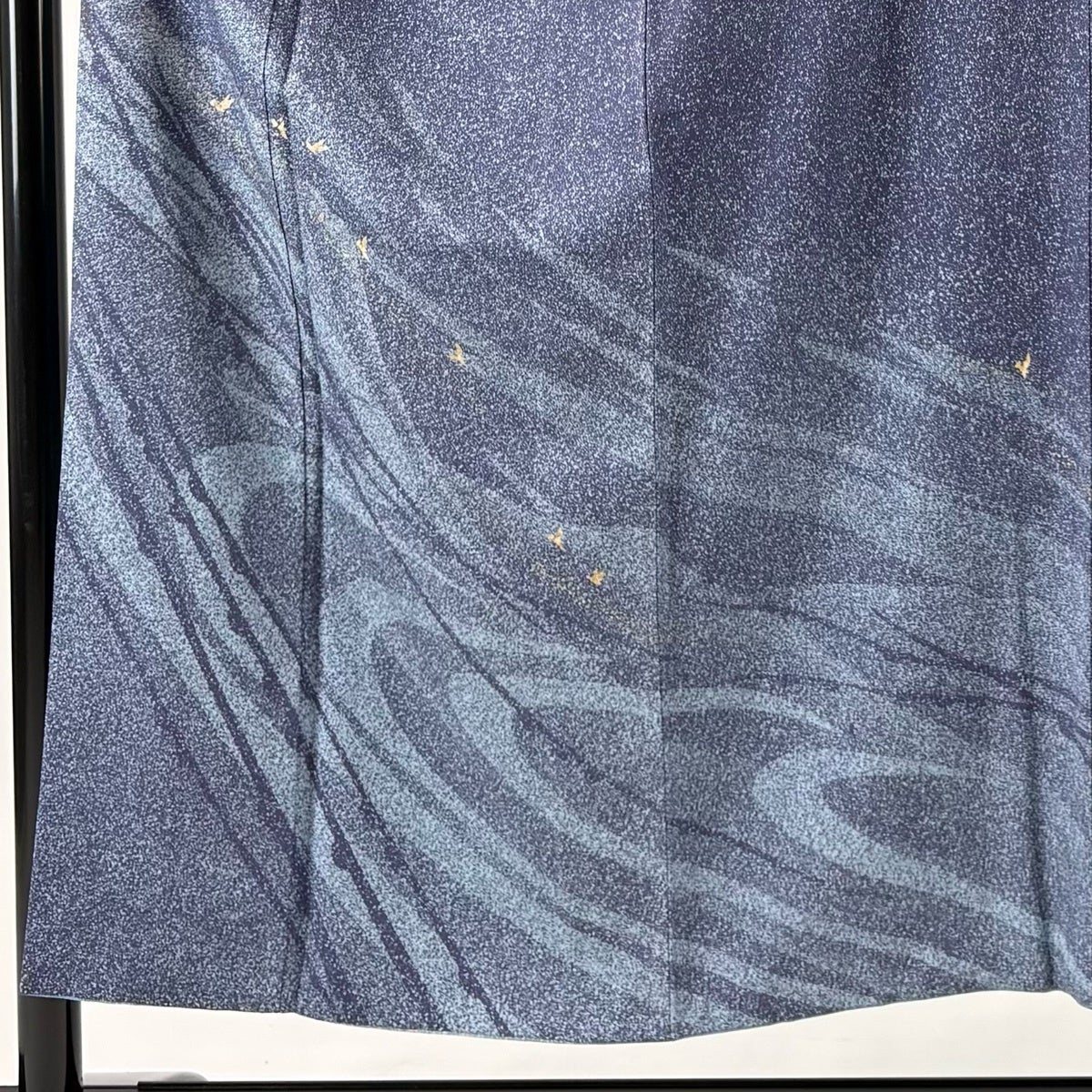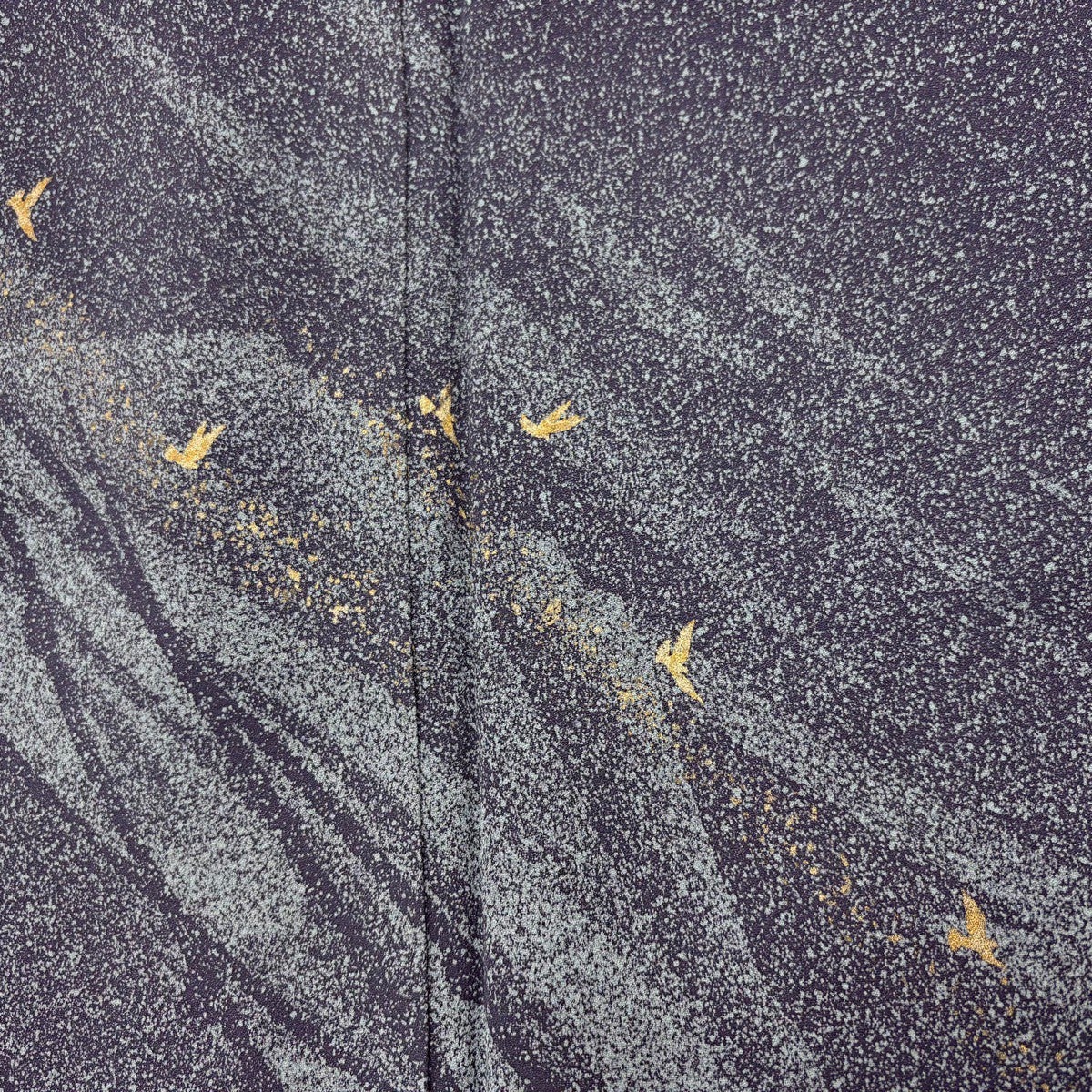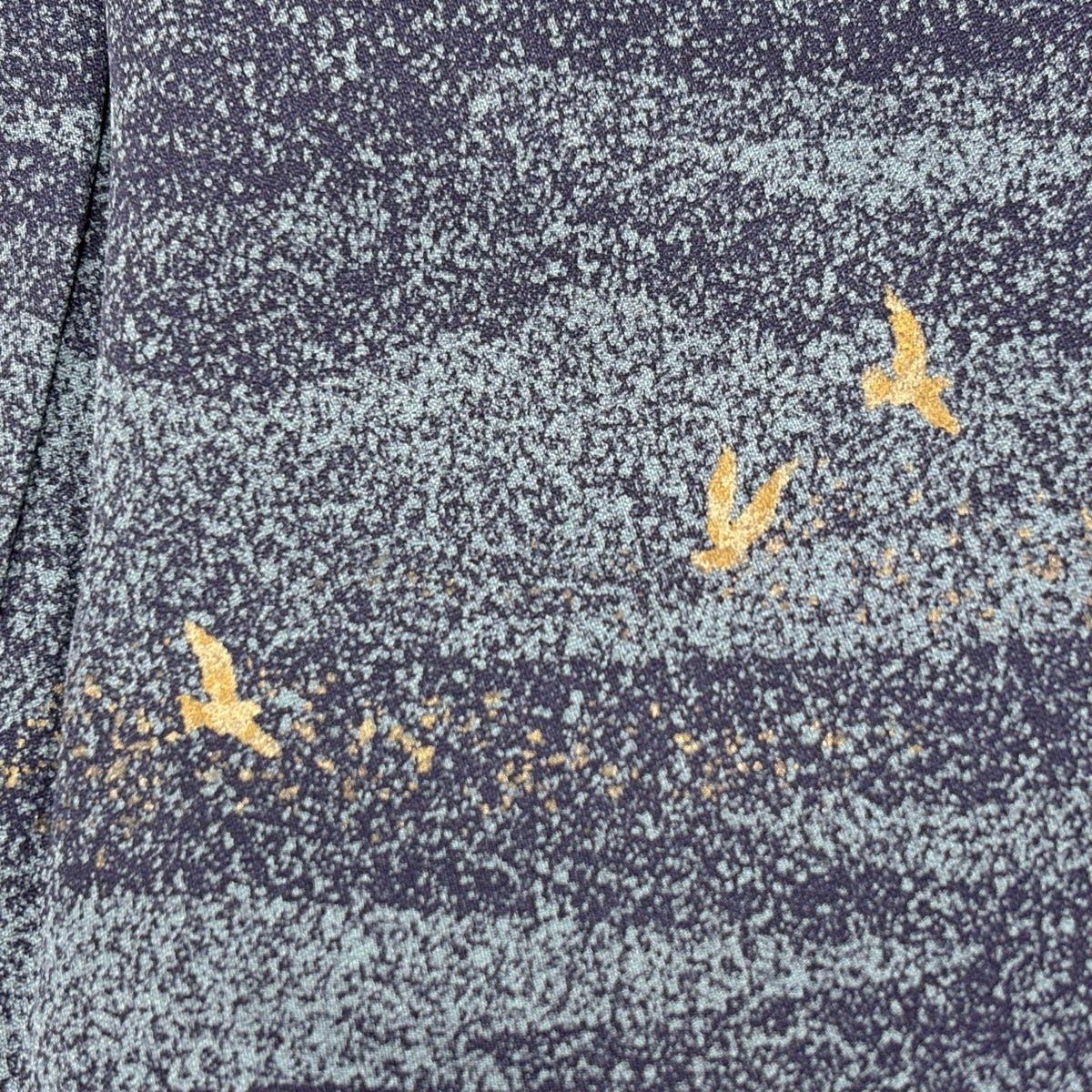 訪問着 身丈151.5cm 裄丈63cm S 袷 落款あり 鳥 霞 金彩 ぼかし 青灰色 正絹 秀品 一つ紋