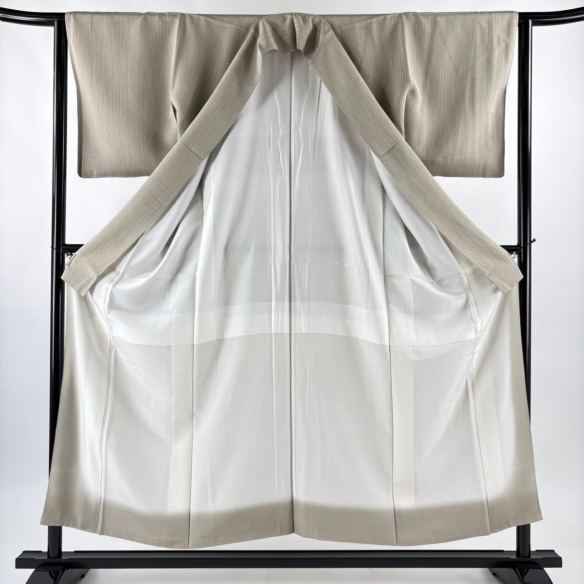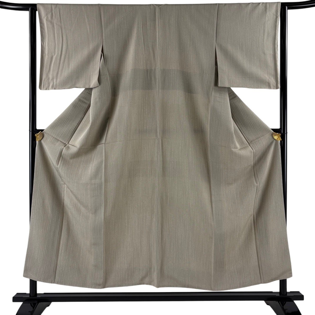 【美品】 小紋 身丈153.5cm 裄丈63cm S 袷 ドット 幾何学模様 灰茶 正絹 秀品