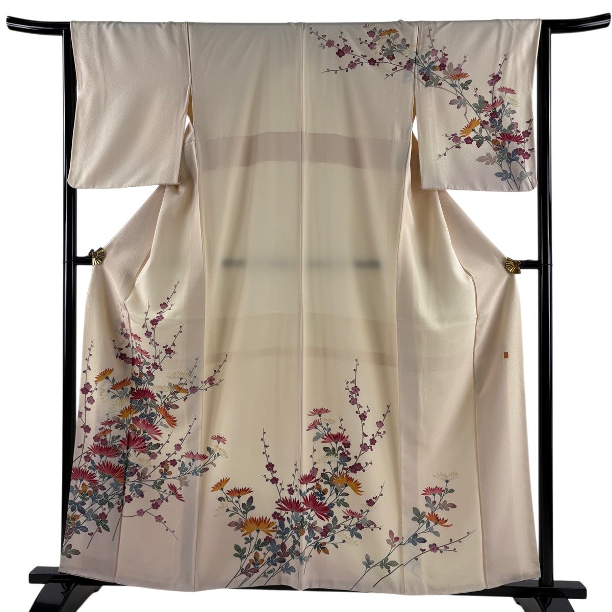 【美品】 振袖 身丈159cm 裄丈66cm M 袷 鈴乃屋 御所車 松竹梅 金彩 ぼかし クリーム 正絹 秀品