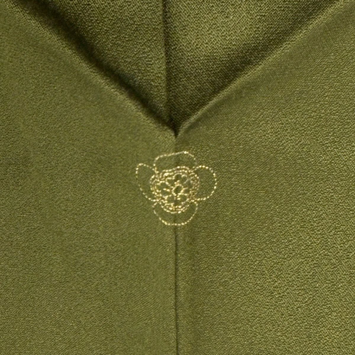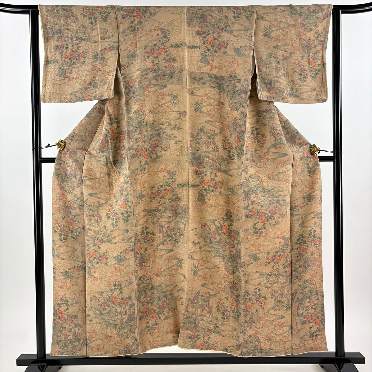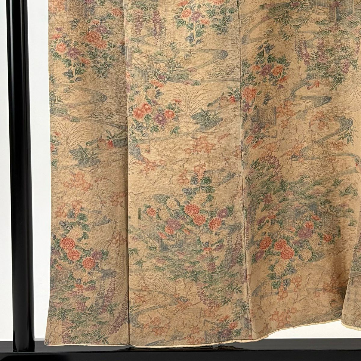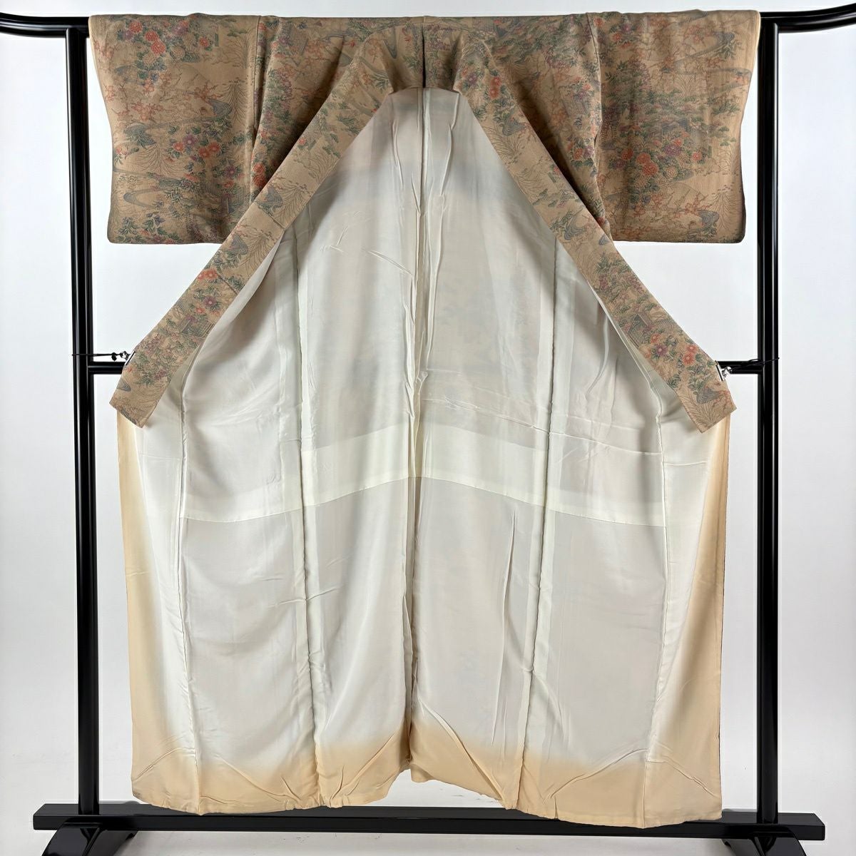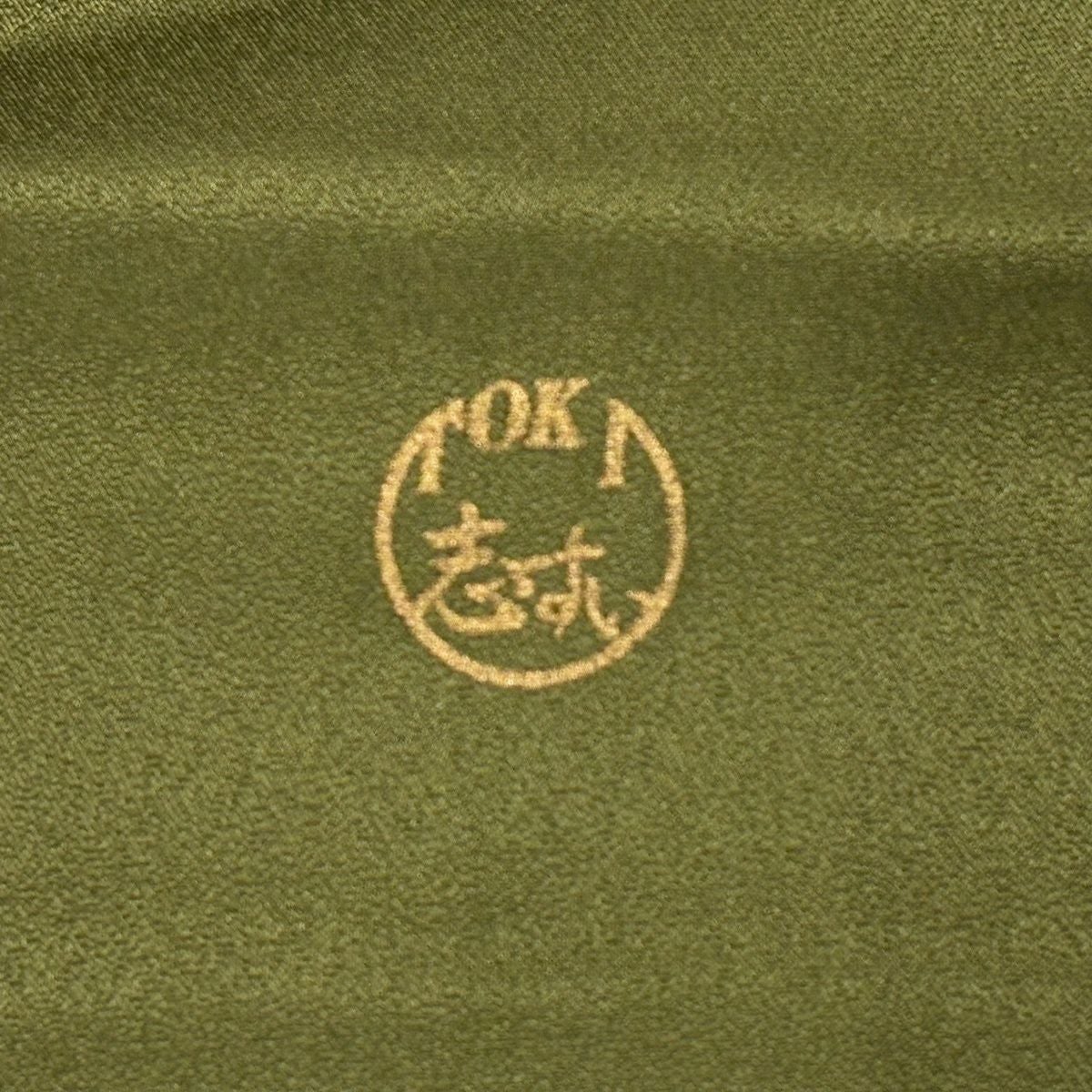 【美品】 訪問着 身丈160cm 裄丈67.5cm L 袷 TOKI志すい 落款あり 鶴 波 金彩 ぼかし 茶緑色 正絹 名品 一つ紋