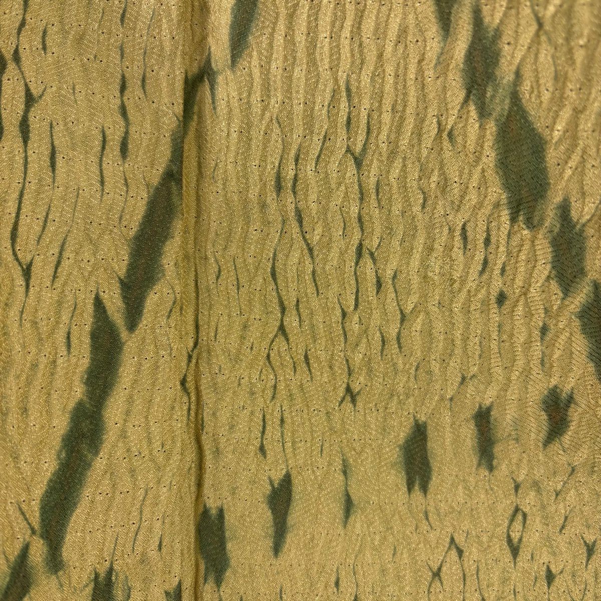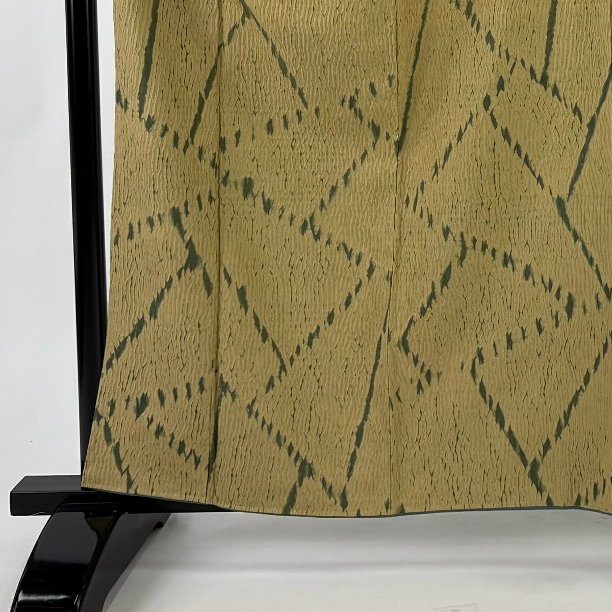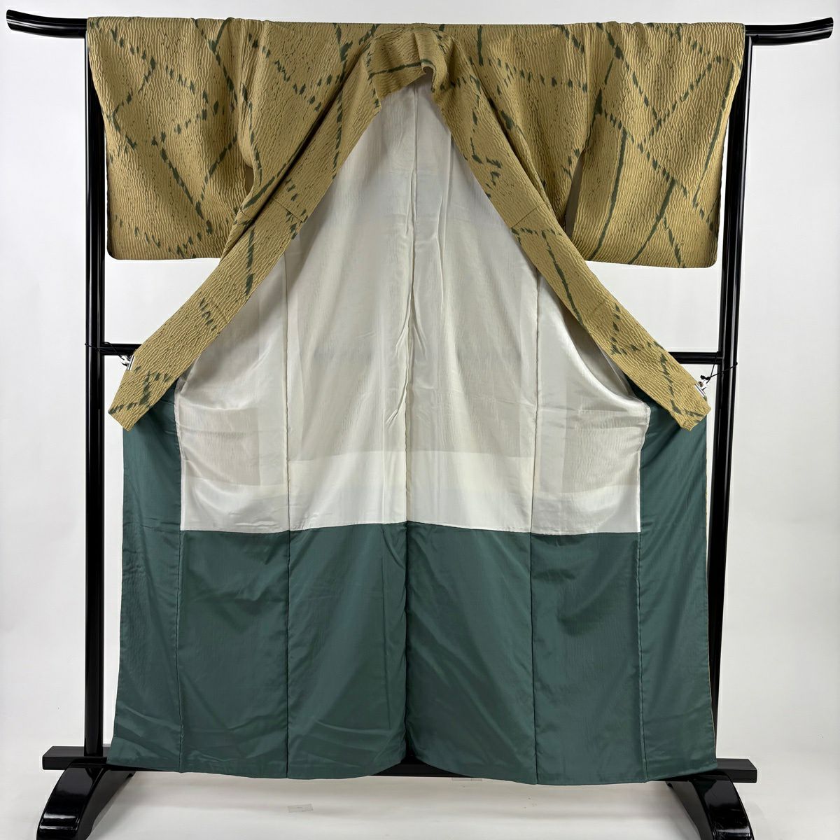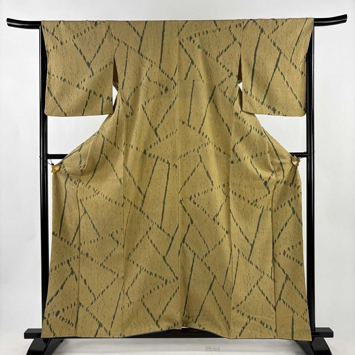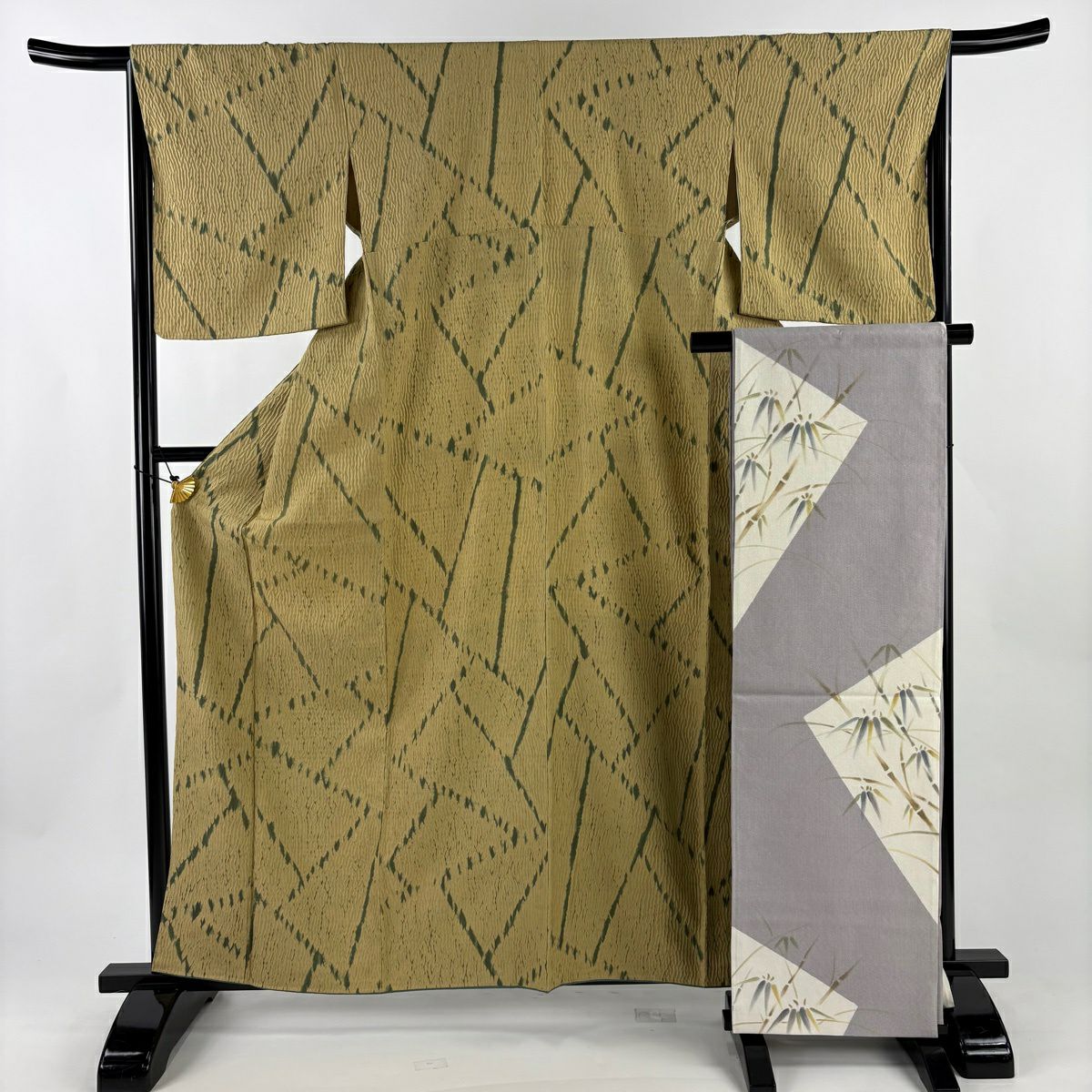 【美品】 小紋 身丈161cm 裄丈66cm M 袷 袋帯セット 幾何学 絞り 黄土色 正絹 秀品