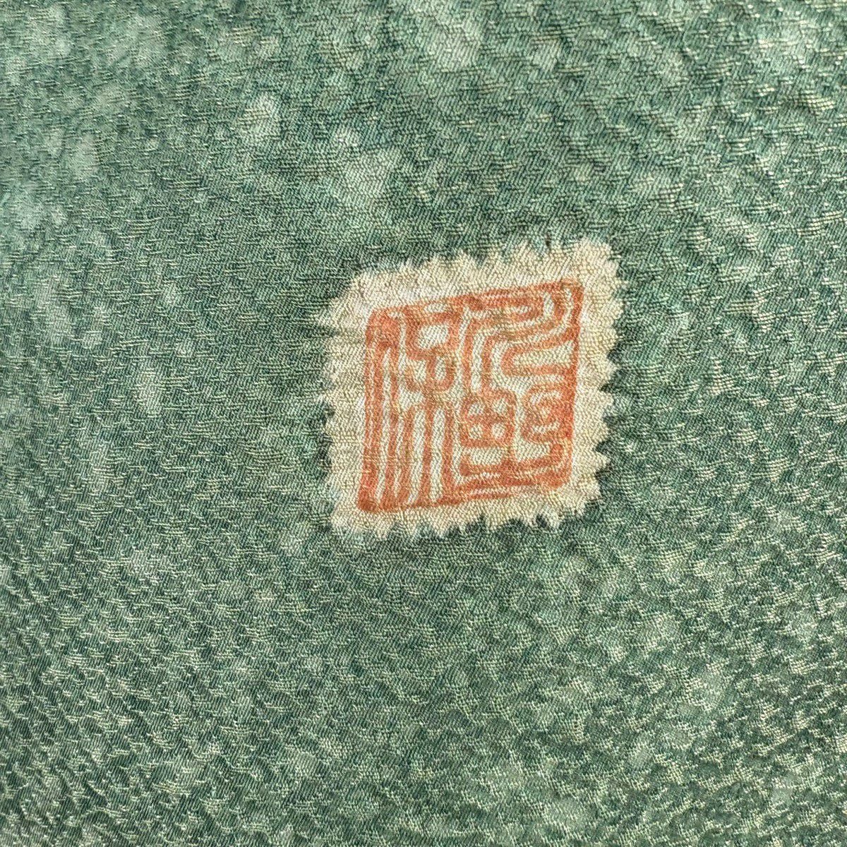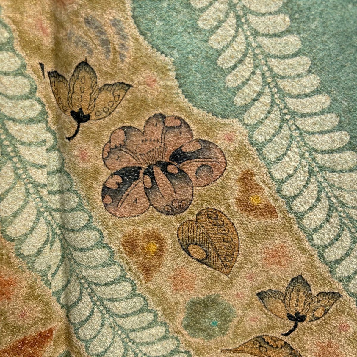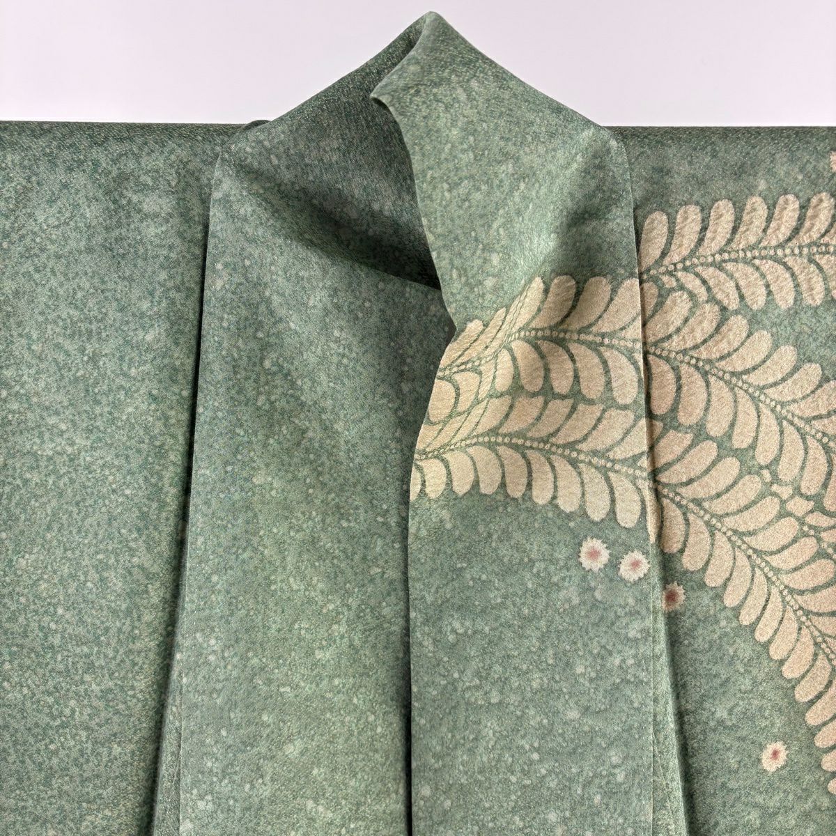 訪問着 身丈162.5cm 裄丈66cm M 袷 水野保 袋帯セット 落款あり 辻が花 金通し 灰緑 正絹 名品