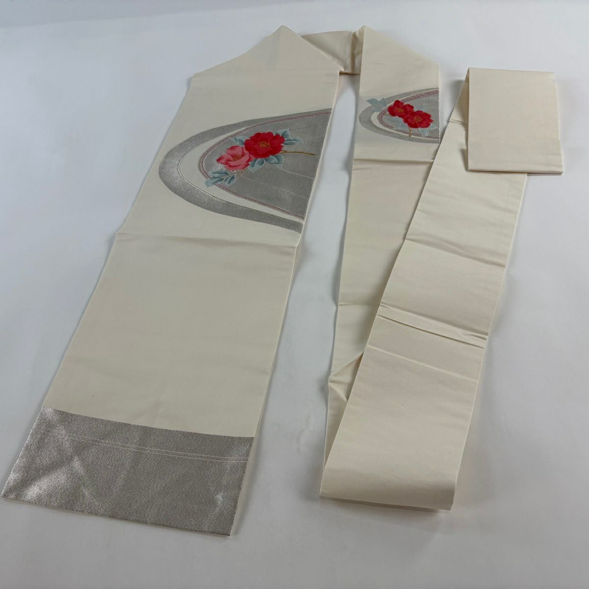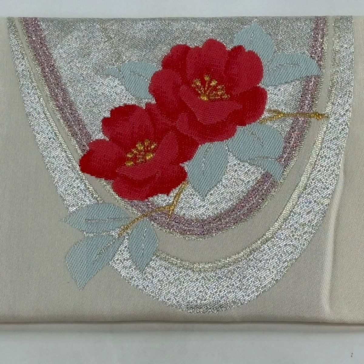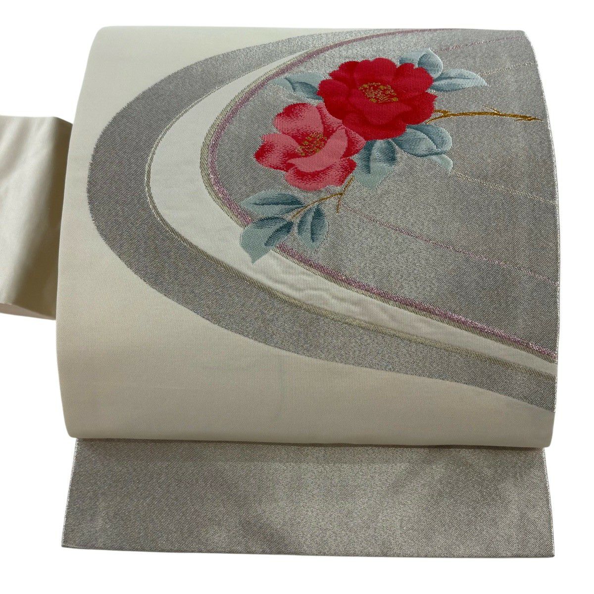 【美品】 名古屋帯 優品 椿 金銀糸 クリーム 正絹