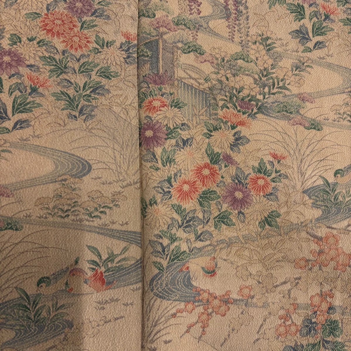 【美品】 名古屋帯 優品 風景 草花 金糸 箔 金色 正絹