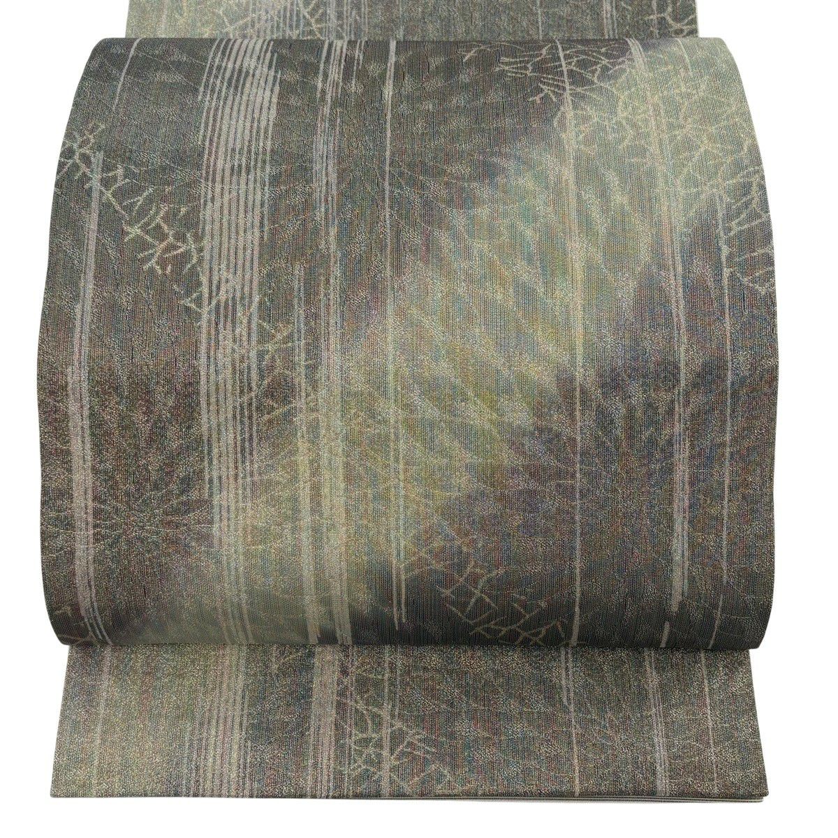 【美品】 名古屋帯 優品 関西仕立て キジ 笹 金糸 箔 茶色 正絹