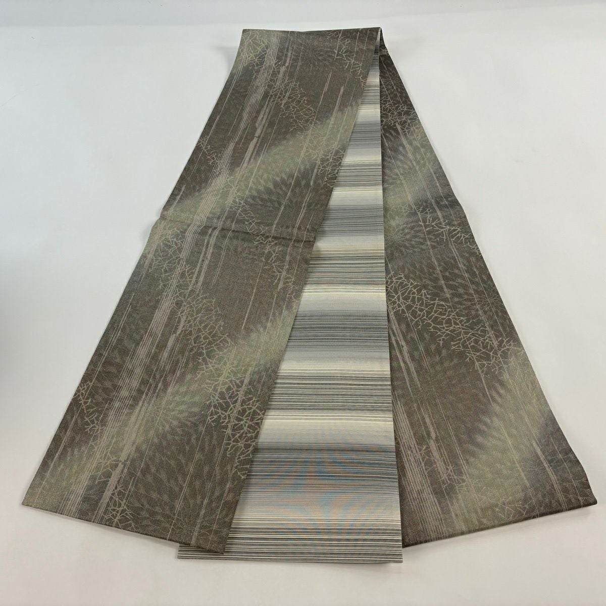 名古屋帯 優品 八寸名古屋帯 山 金銀糸 銀色 正絹
