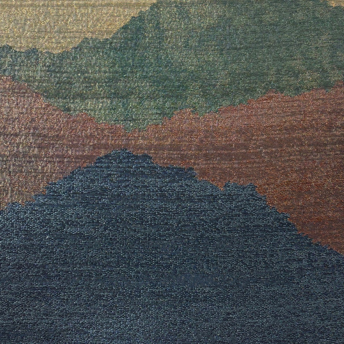 袋帯 逸品 横山大観 落款あり 朝陽霊峰 瑞雲 金糸 プラチナ箔 銀色 全通 正絹