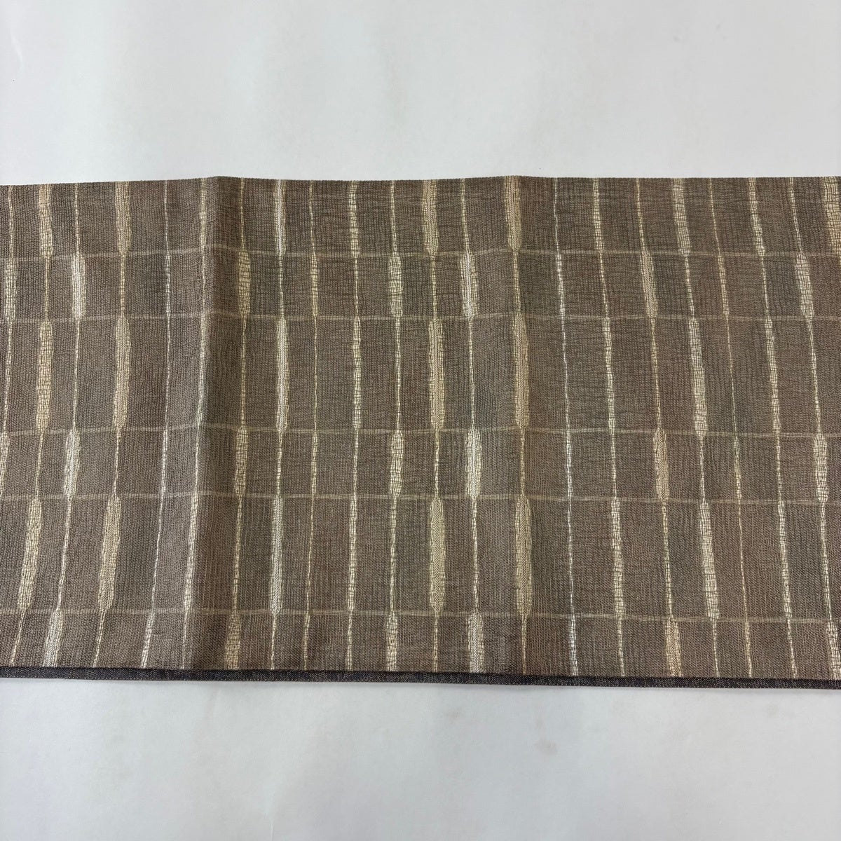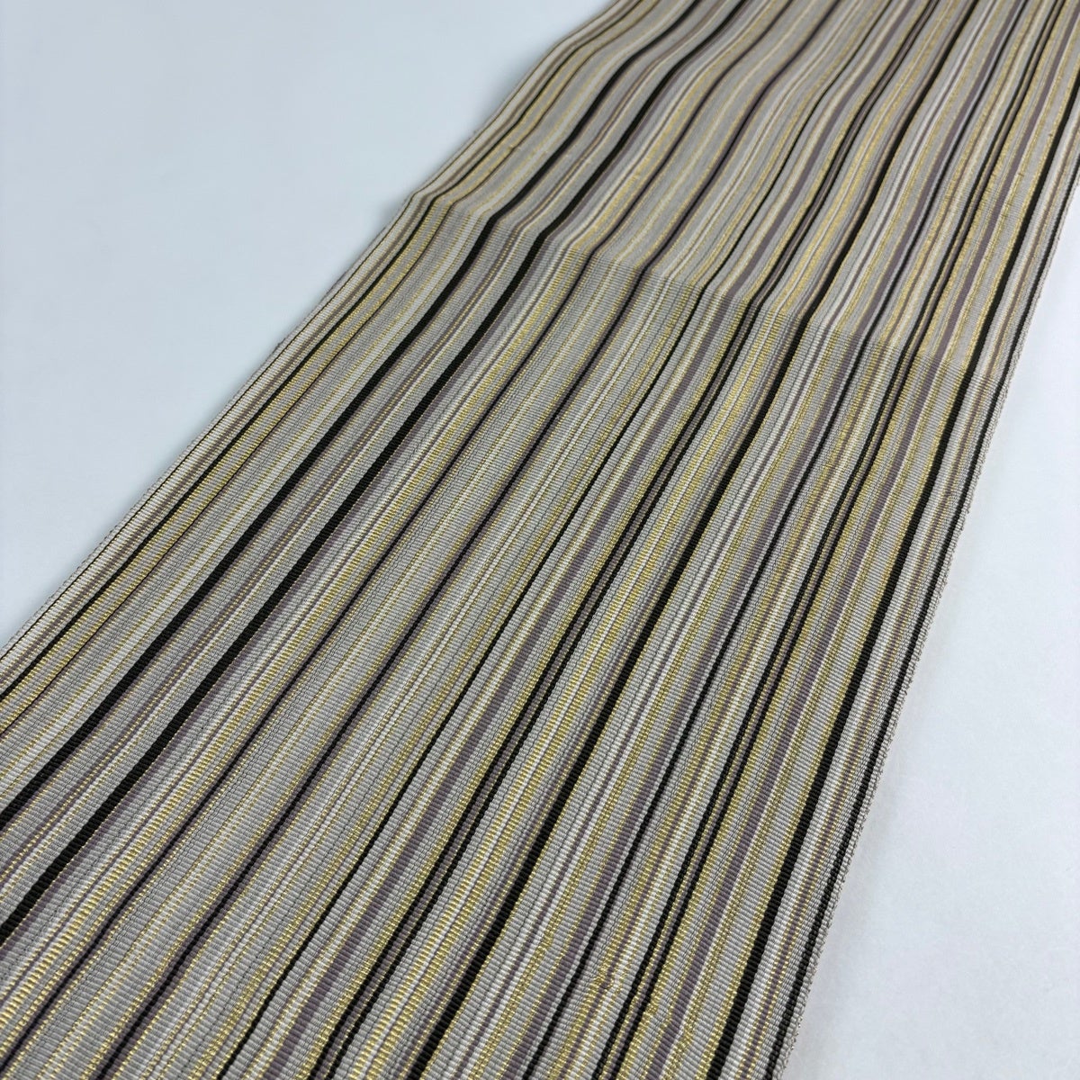 袋帯 名品 夏帯 菱格子 縞 金通し 灰紫 お太鼓柄 正絹
