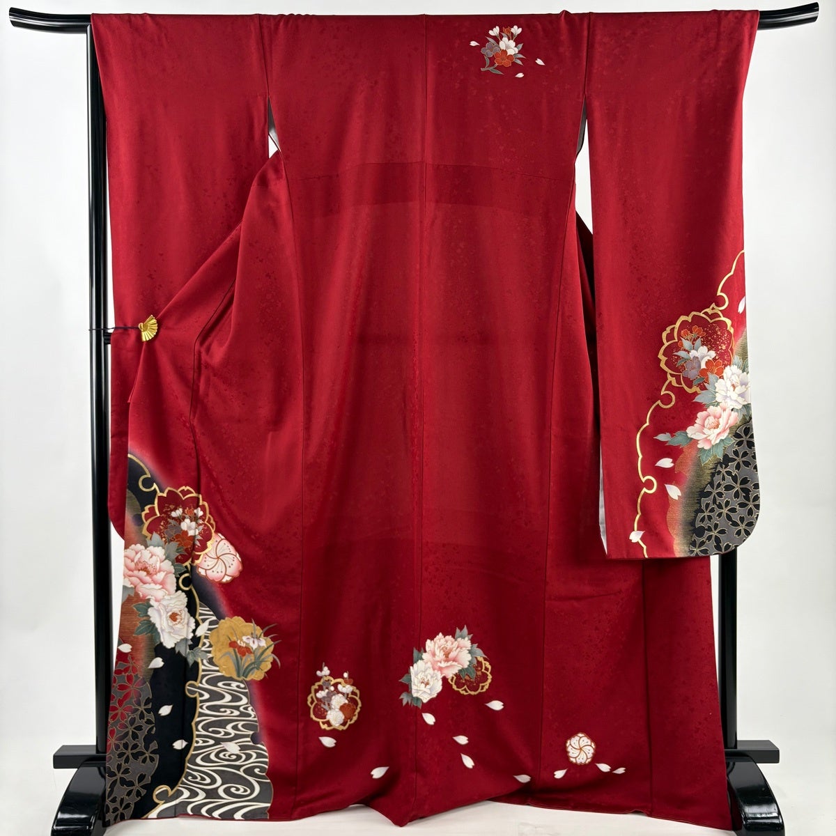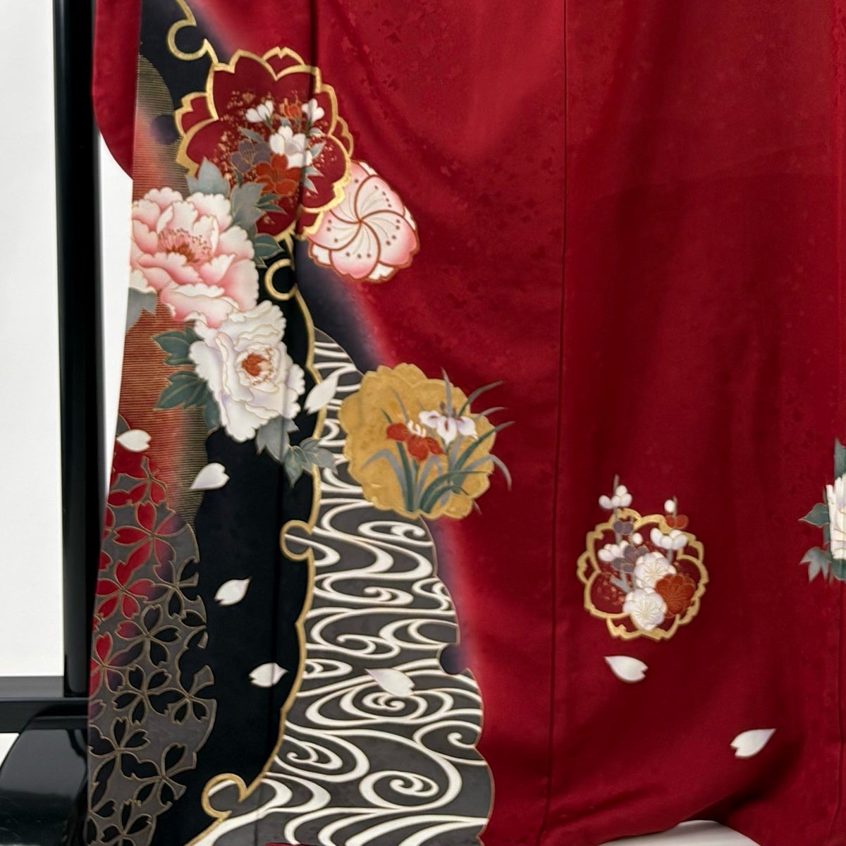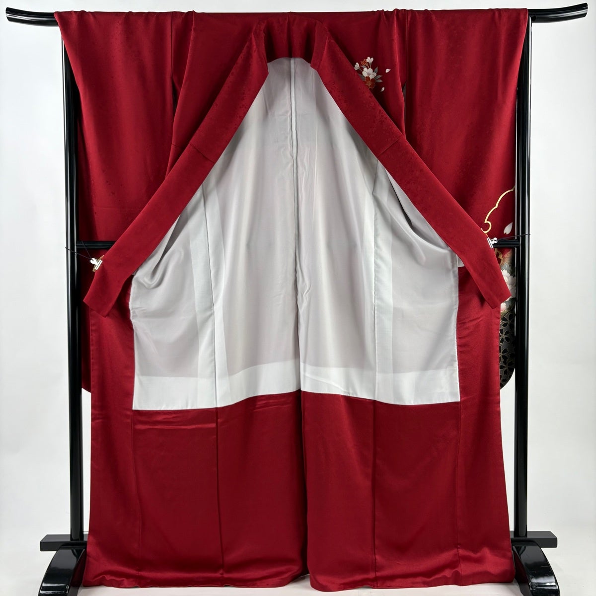【美品】 袋帯 名品 道長取 草花 箔 赤茶 六通 正絹