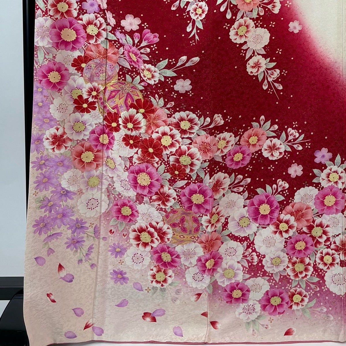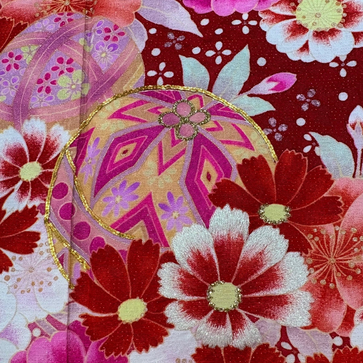 振袖 身丈168cm 裄丈67.5cm L 袷 草花 手鞠 金糸 銀通し 赤 正絹 名品