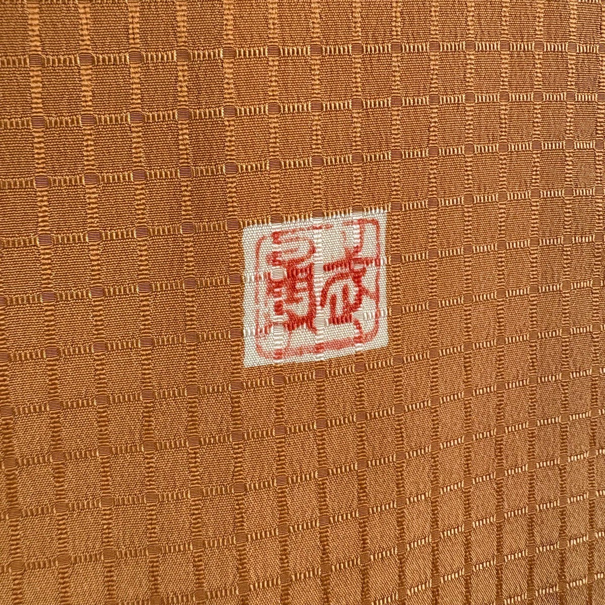 【在庫一掃】 【美品】 袋帯 逸品 北出与三郎 落款あり 草花 市松 金糸 箔 薄茶色 六通 正絹