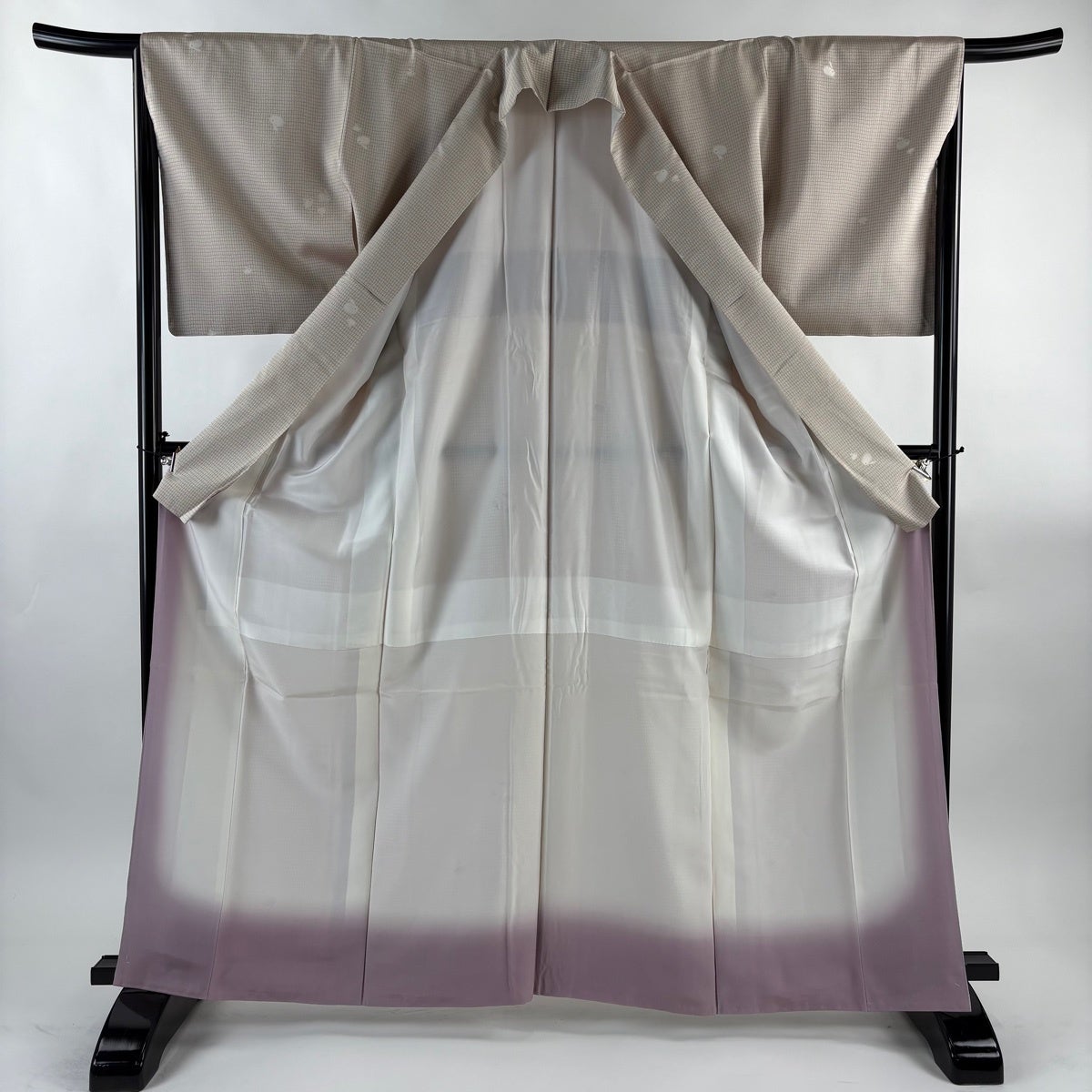 【在庫一掃】 道中着 身丈105cm 裄丈66.5cm M 和装コート 地紋 幾何学 ぼかし 灰紫 正絹 逸品