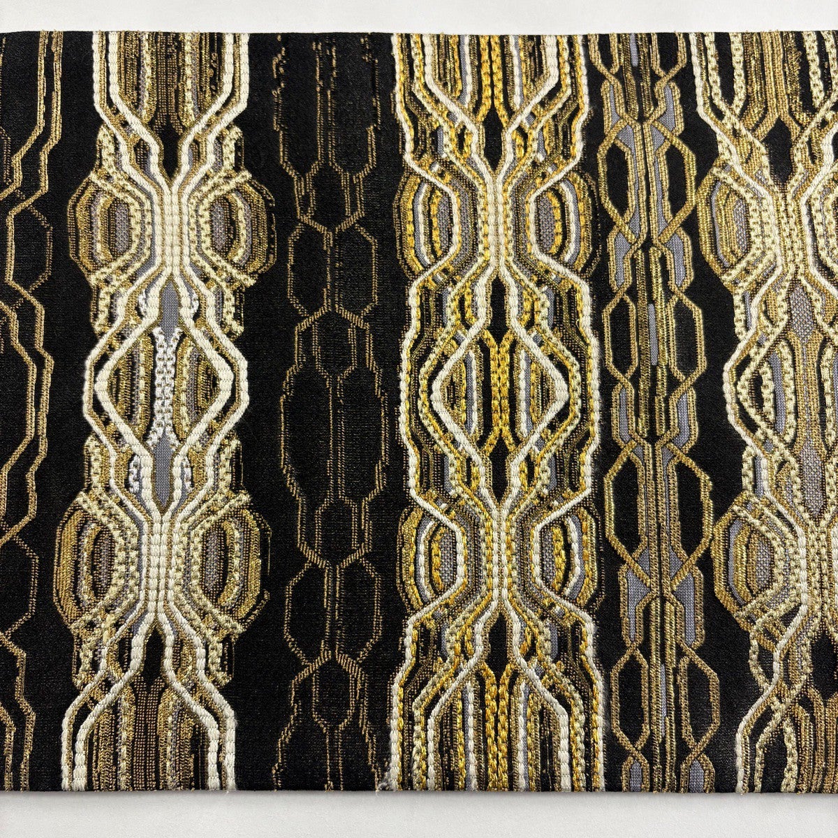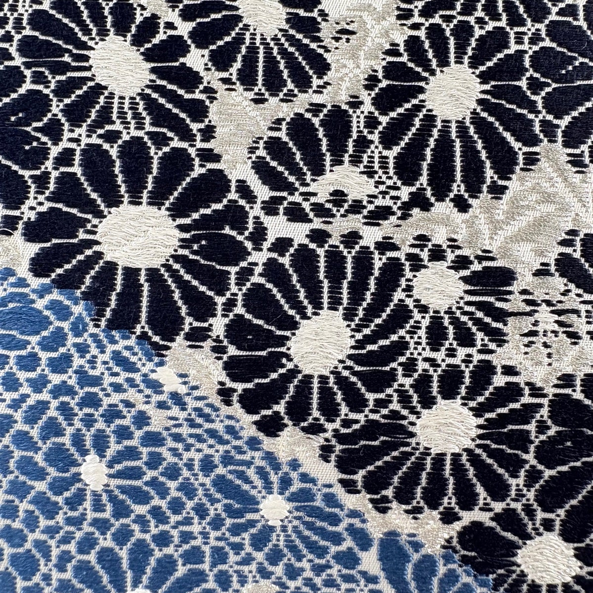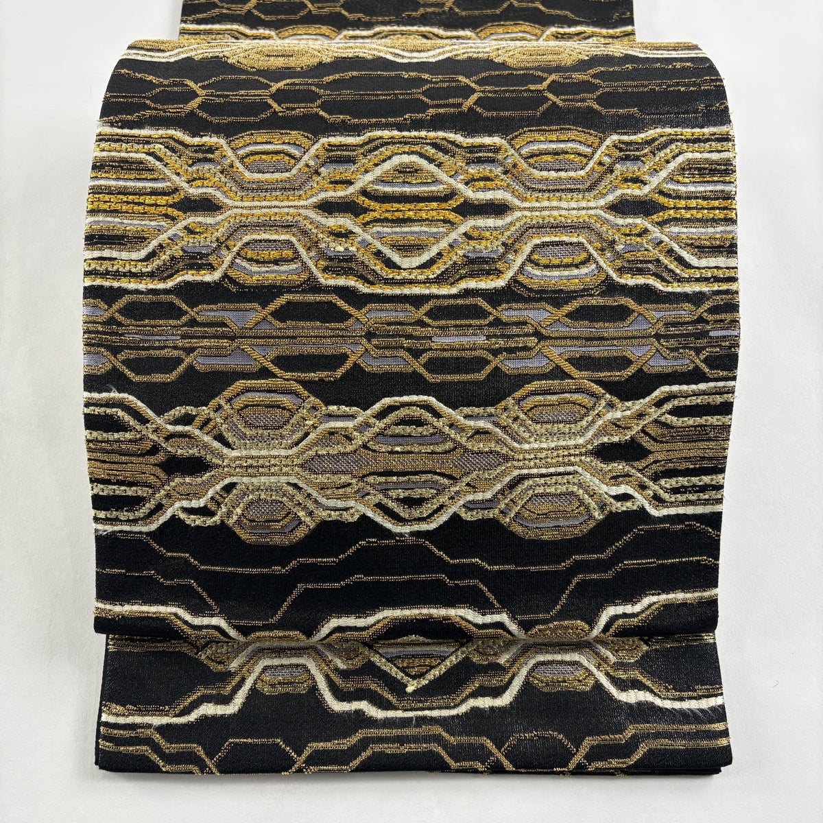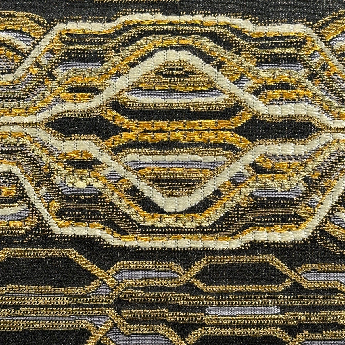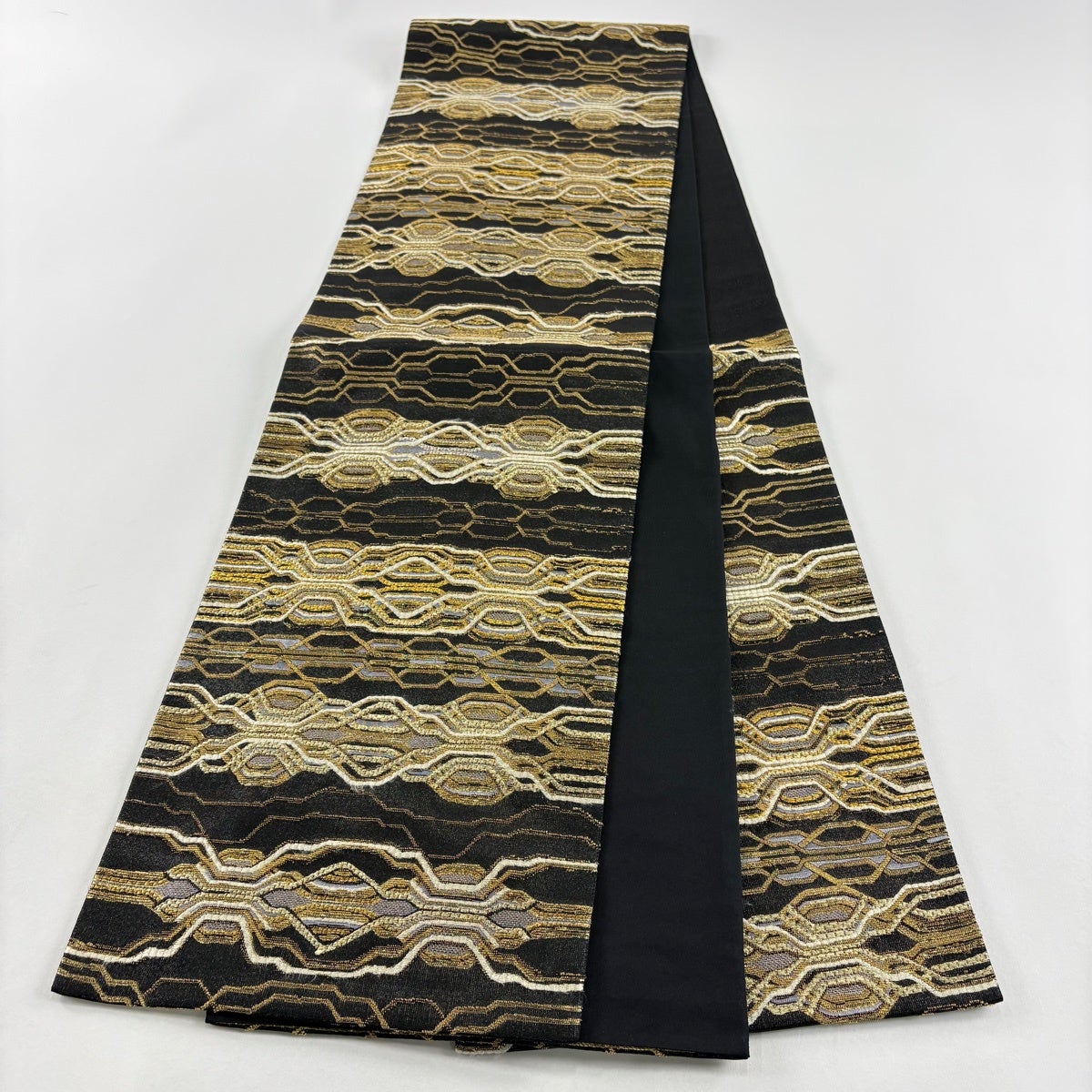【美品】 袋帯 名品 幾何学模様 黒 全通 正絹