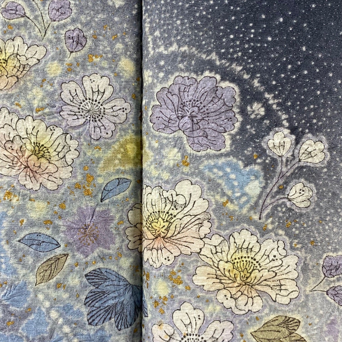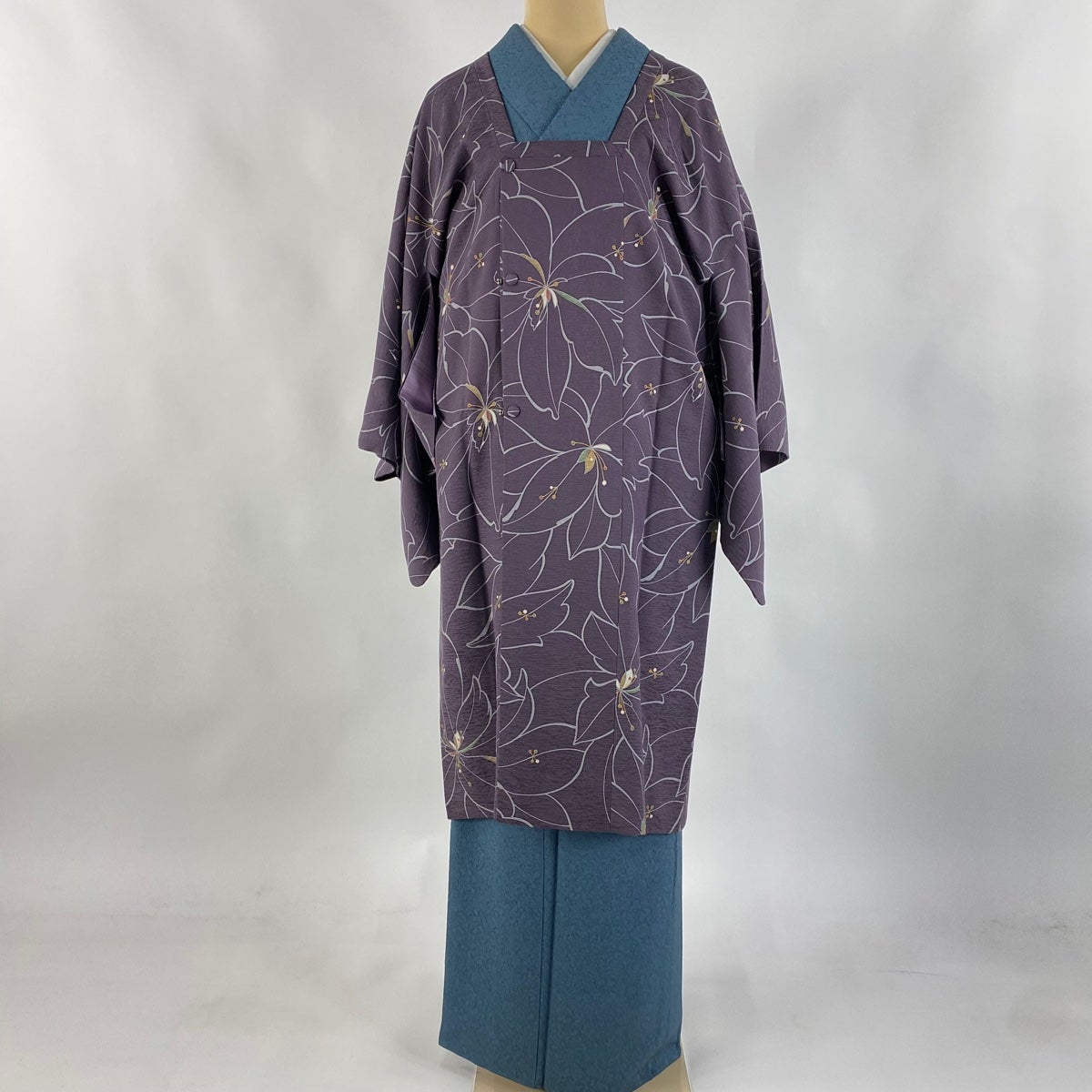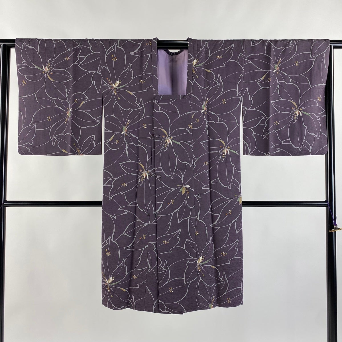 道行 身丈105cm 裄丈65cm M 和装コート 角衿 花 金彩 紫 正絹 逸品