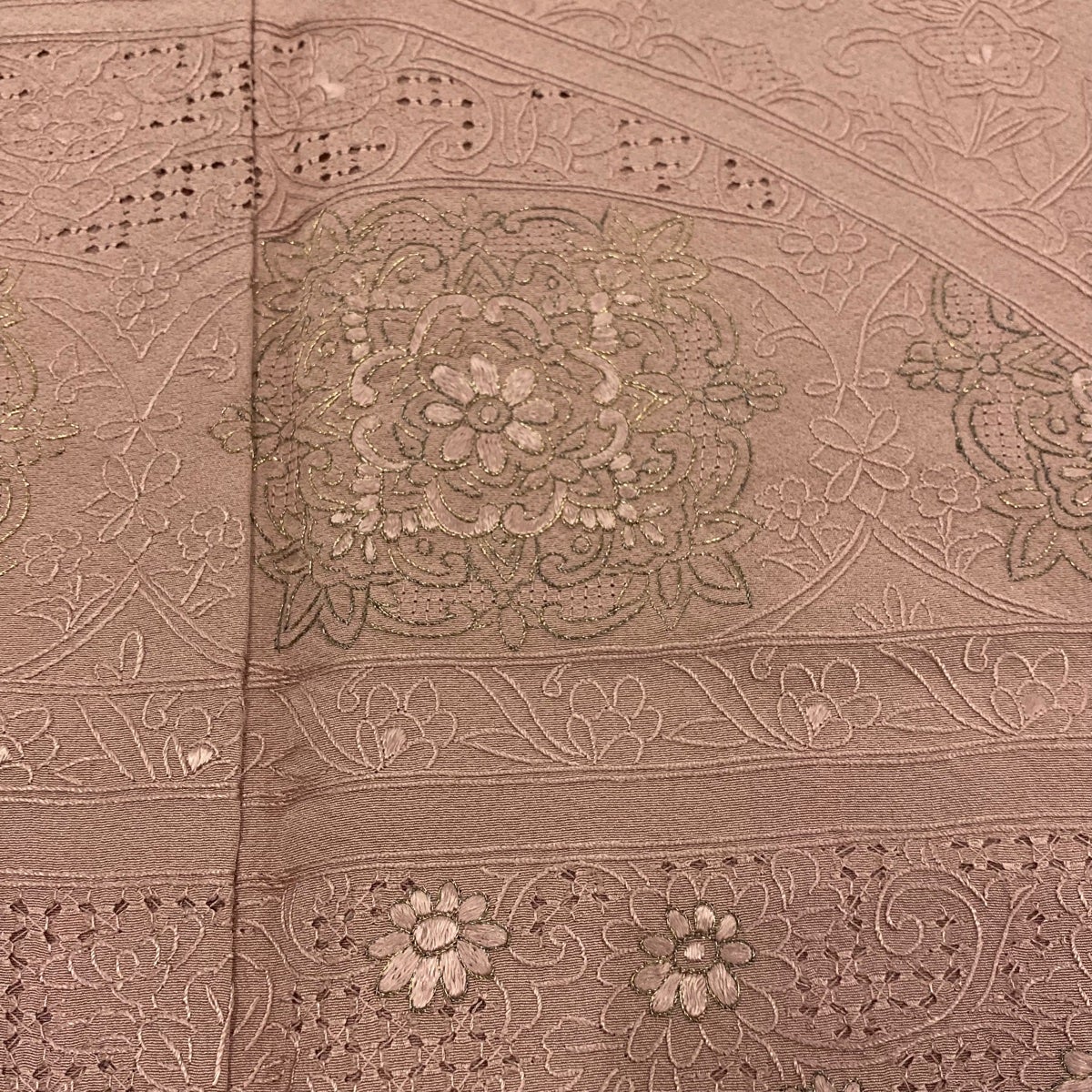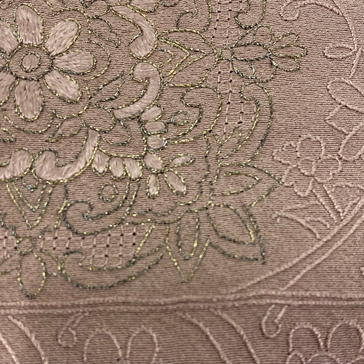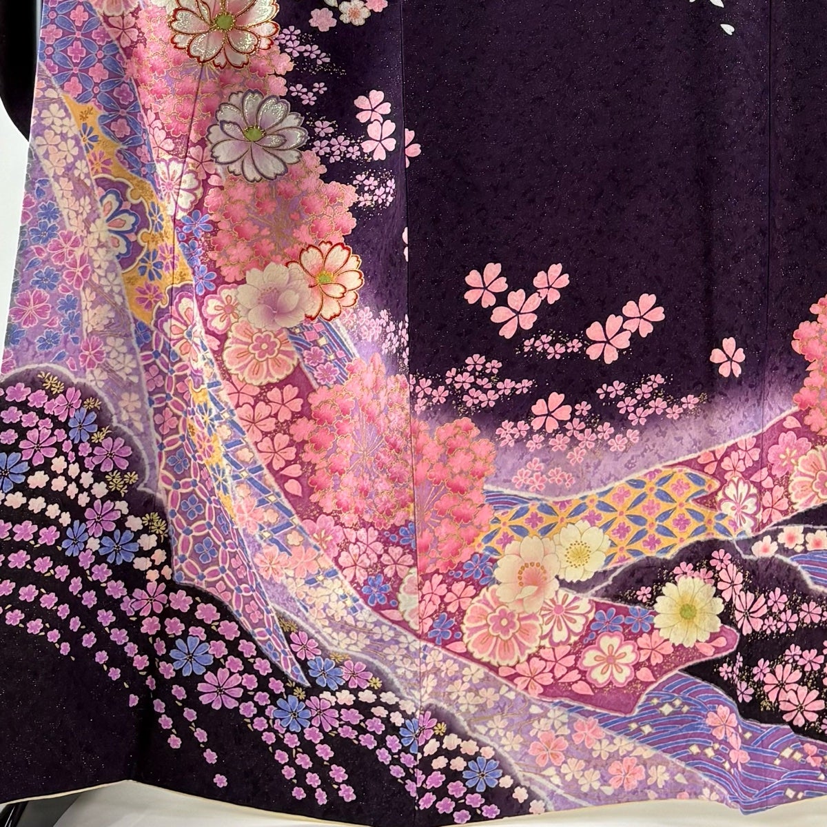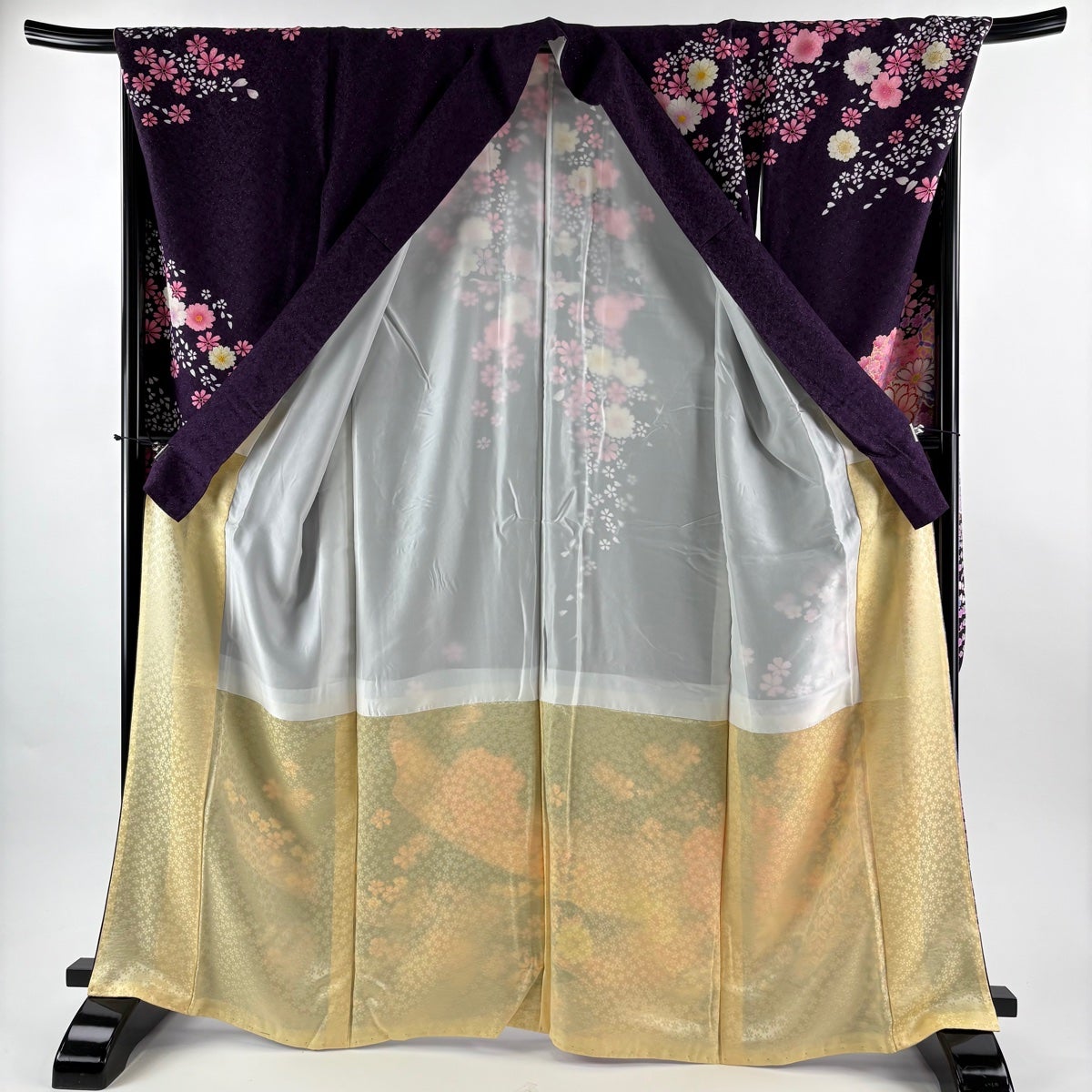 道行 身丈105cm 裄丈65cm M 和装コート 角衿 花 金彩 紫 正絹 逸品