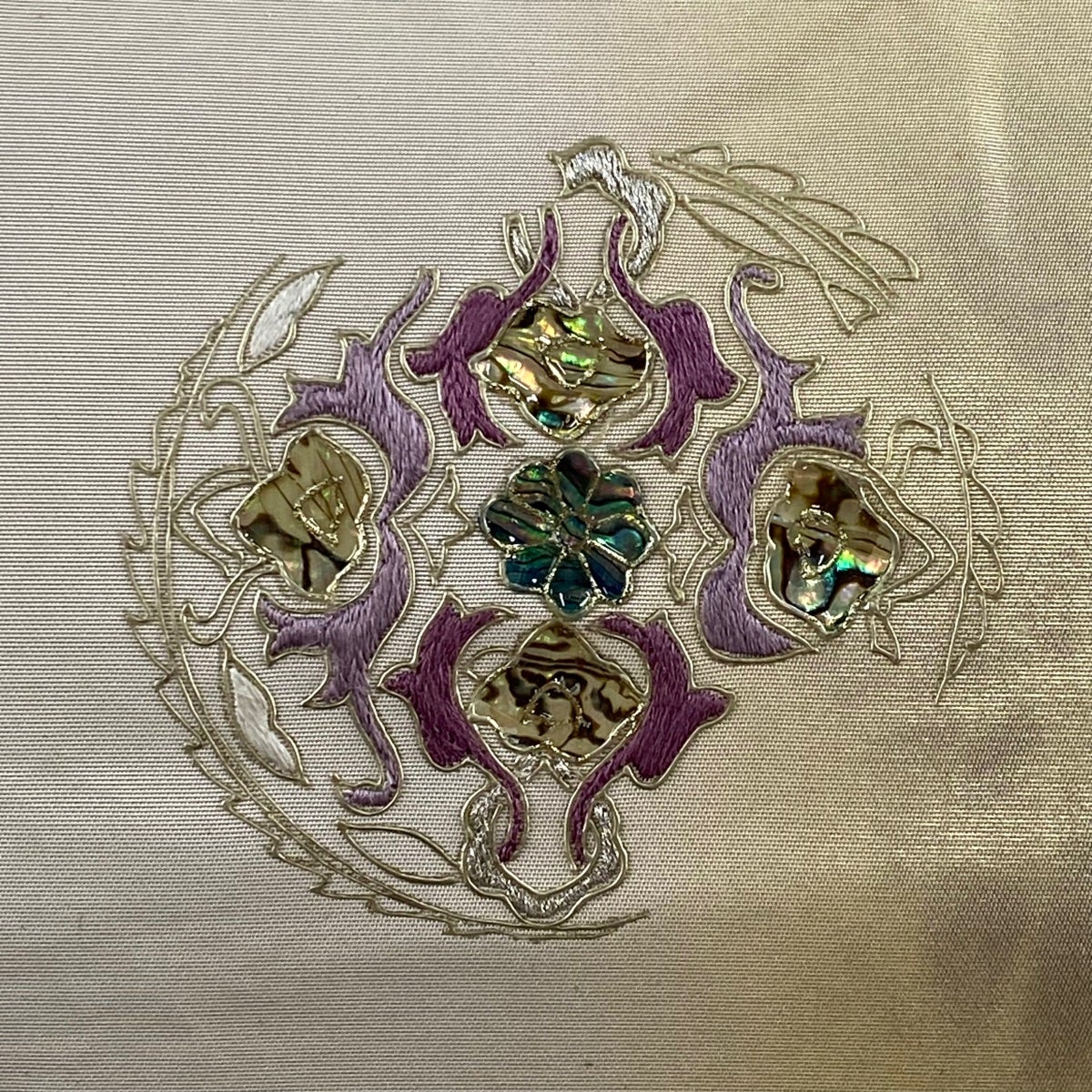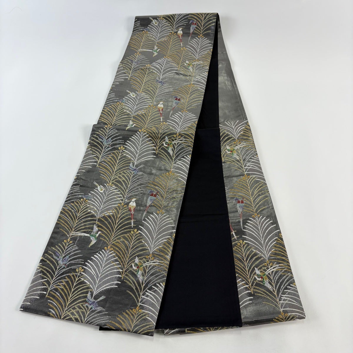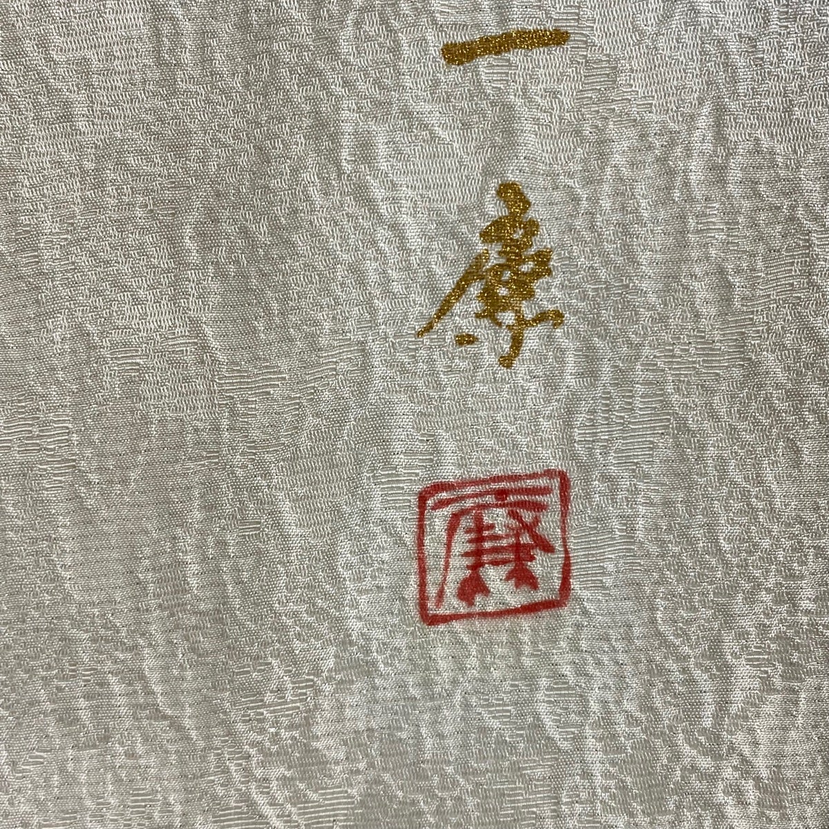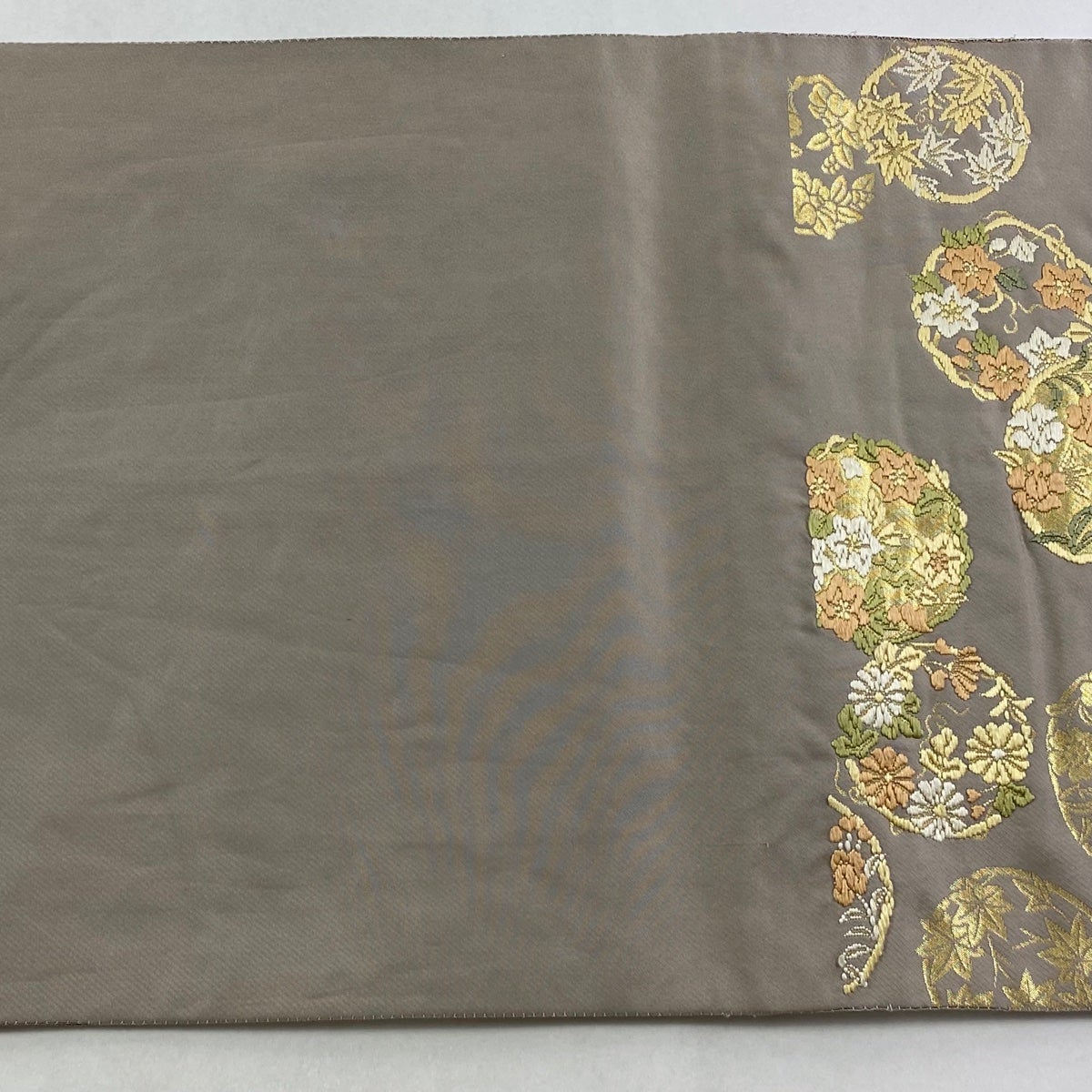袋帯 逸品 服部織物 落款あり 青々庵 花丸文 楓 箔 灰色 六通 正絹