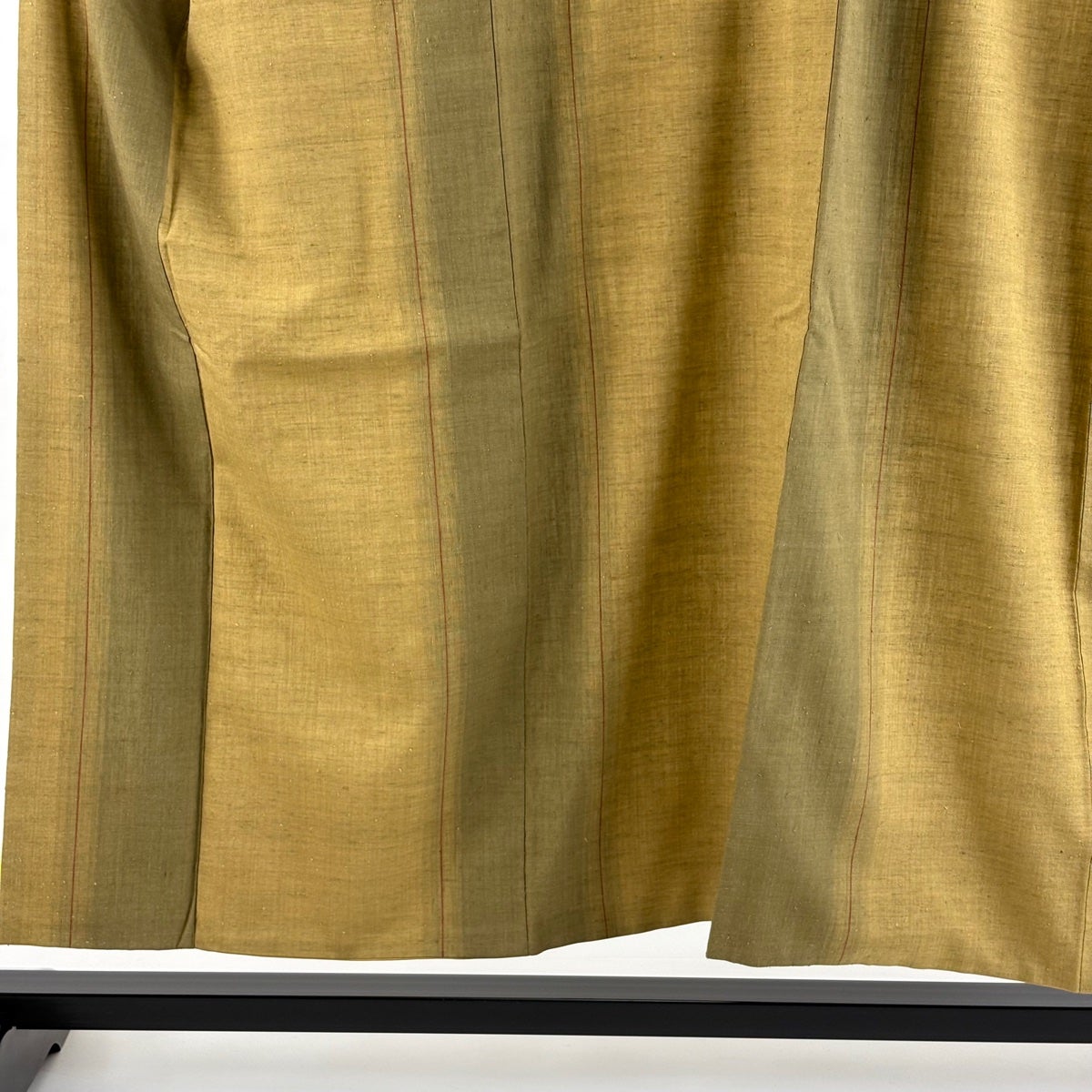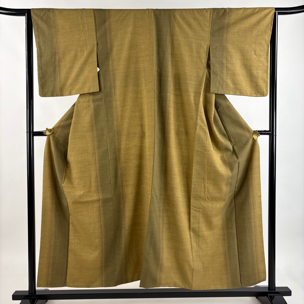 【美品】 紬 身丈151cm 裄丈65cm M 袷 縦縞 薄黄土色 正絹 秀品