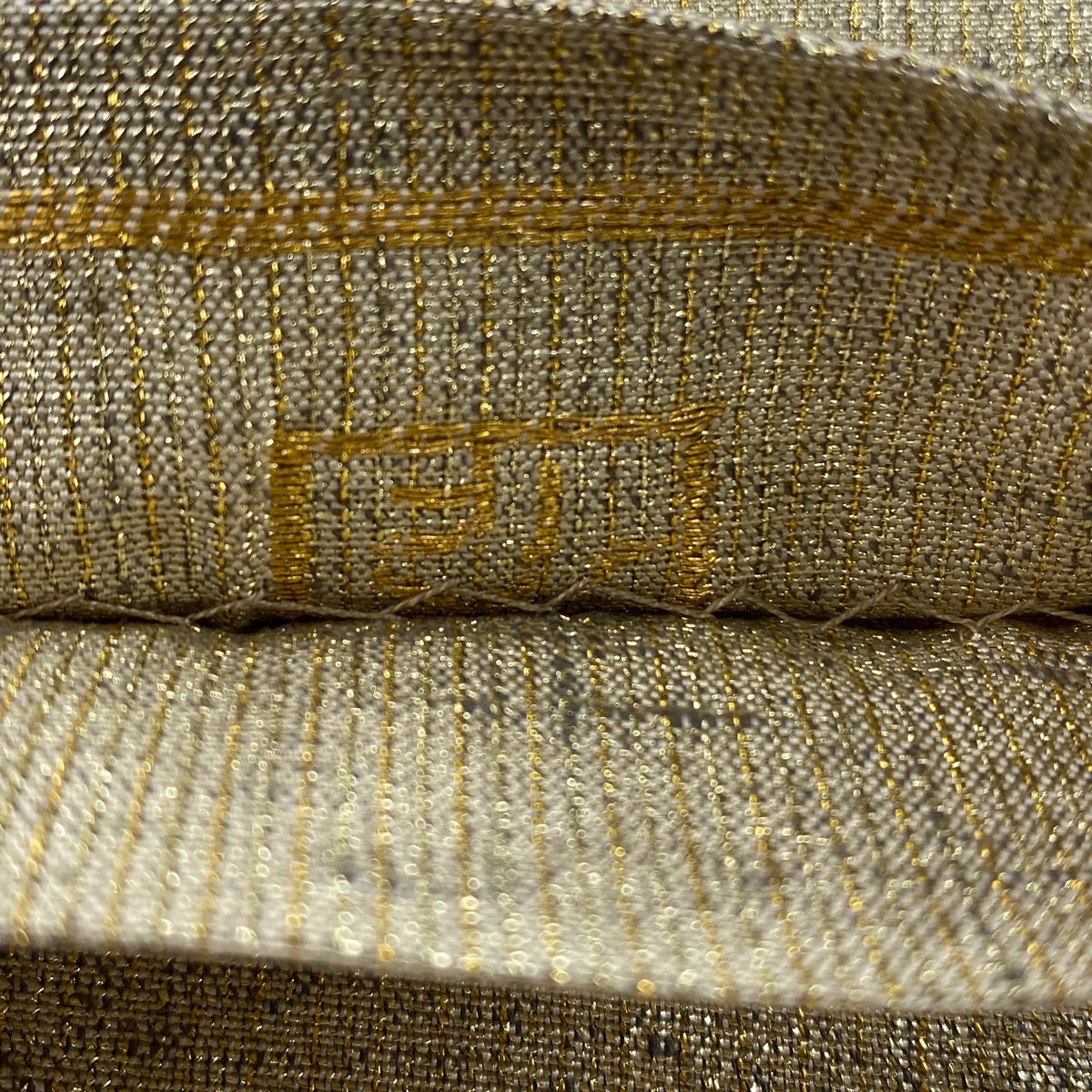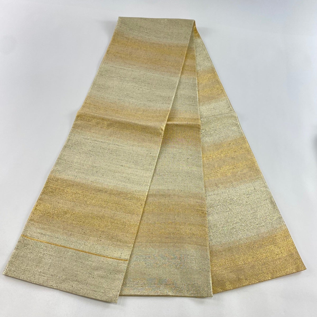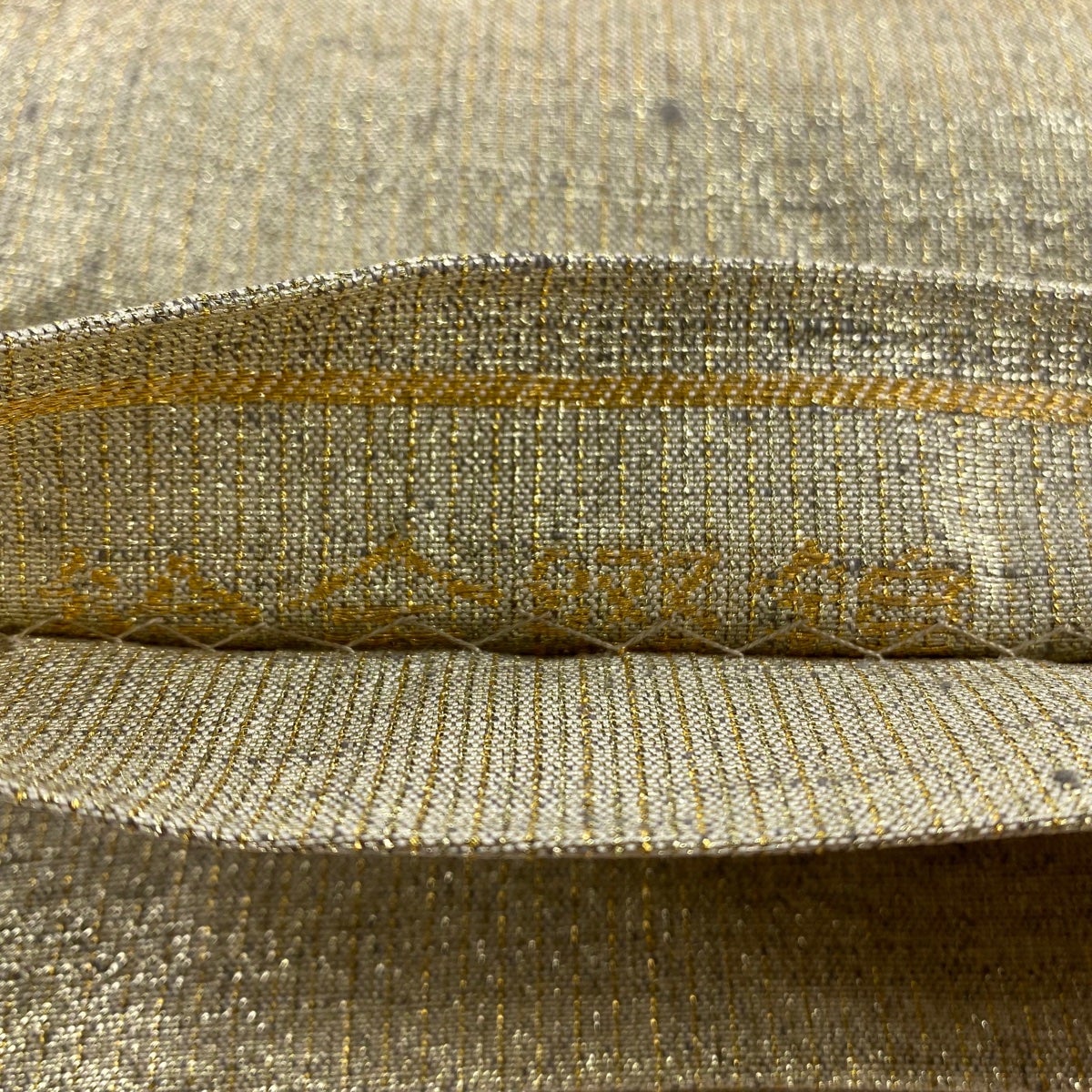 袋帯 逸品 桝屋高尾 落款あり 段霞文 金糸 ねん金綴錦 金色 六通 正絹