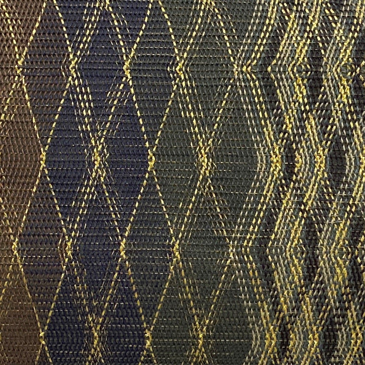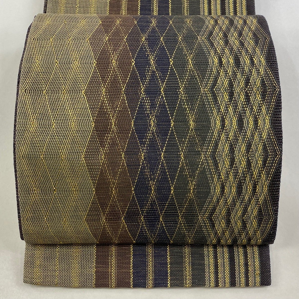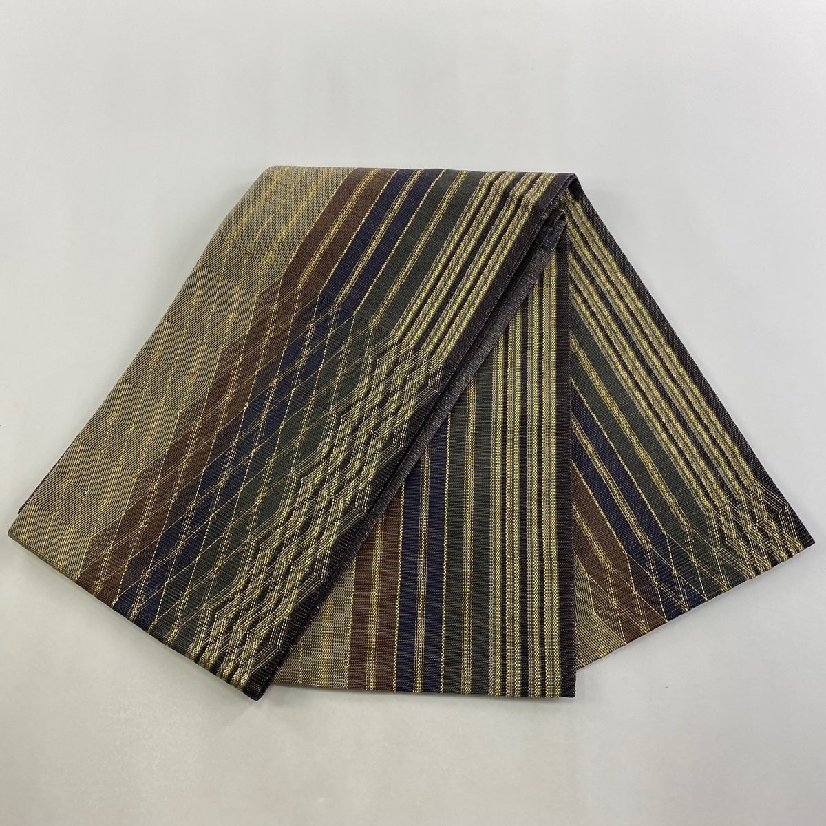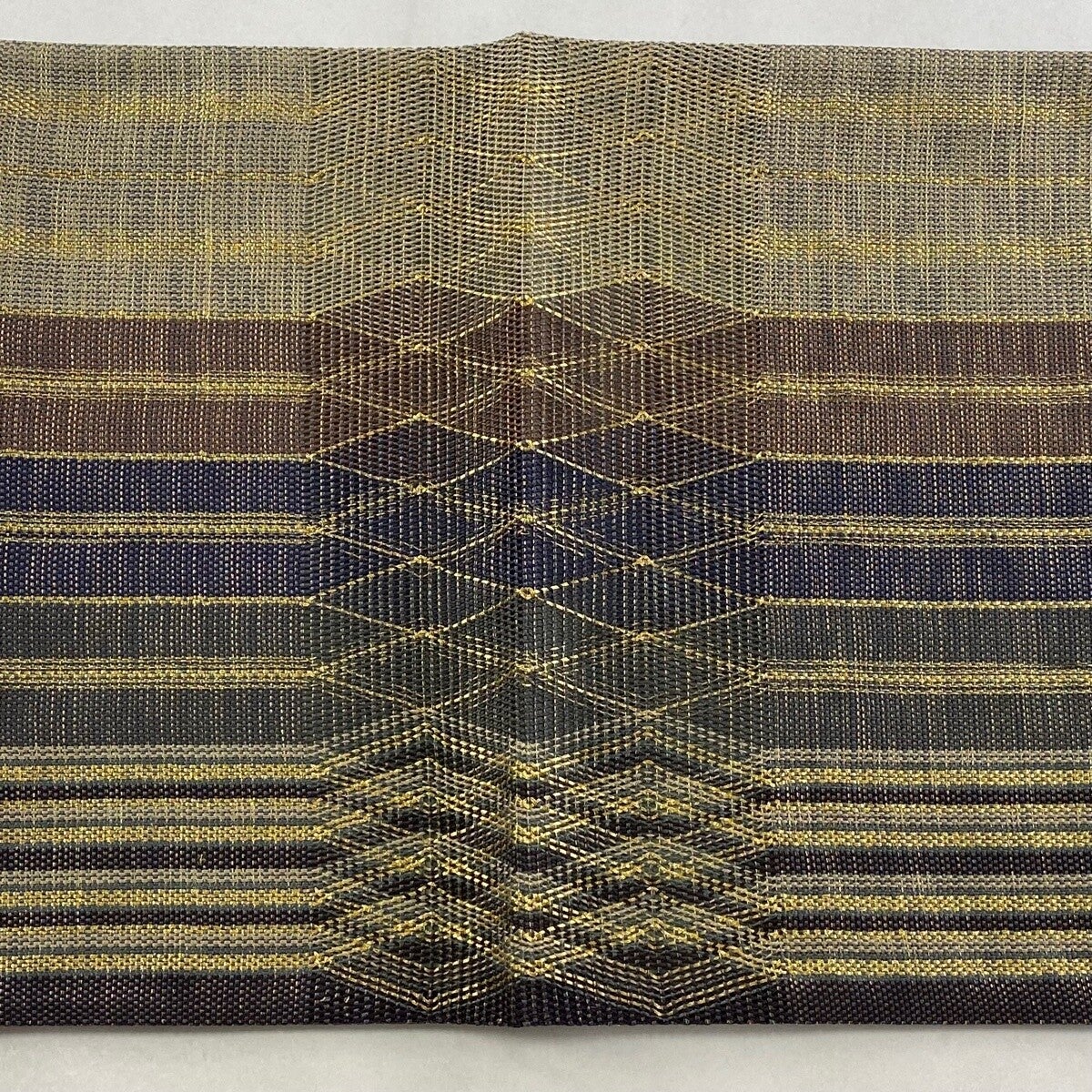 【美品】 袋帯 名品 縞 菱 金糸 紺色 お太鼓柄 正絹
