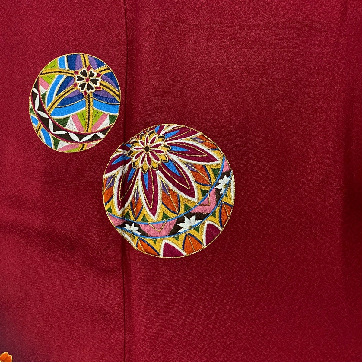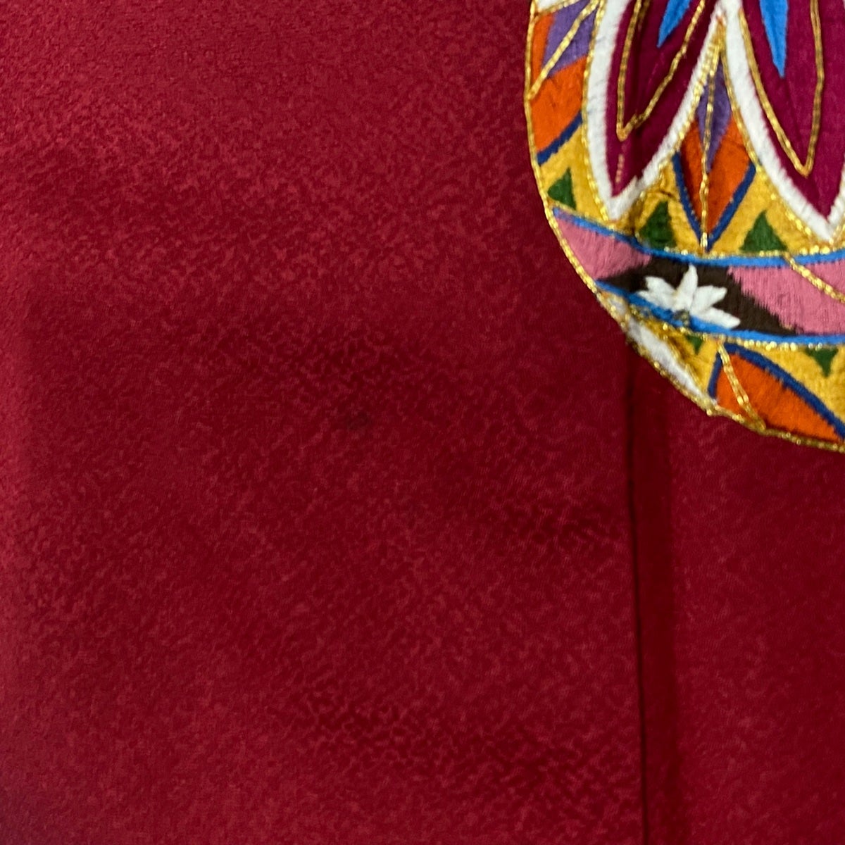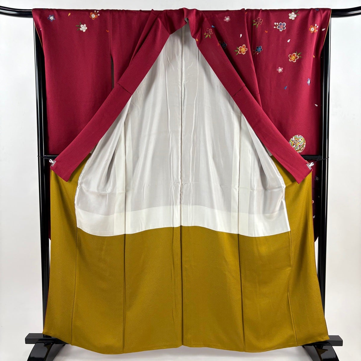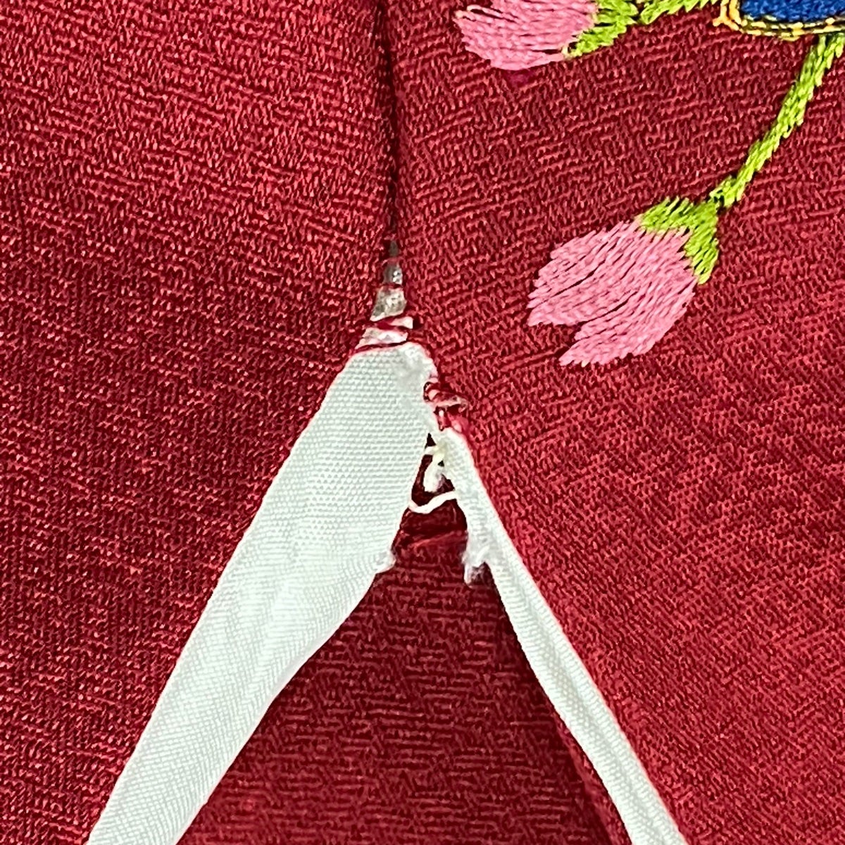 【美品】 振袖 身丈175cm 裄丈71cm L 袷 熨斗 草花 銀通し 金銀彩 えんじ色 正絹 逸品