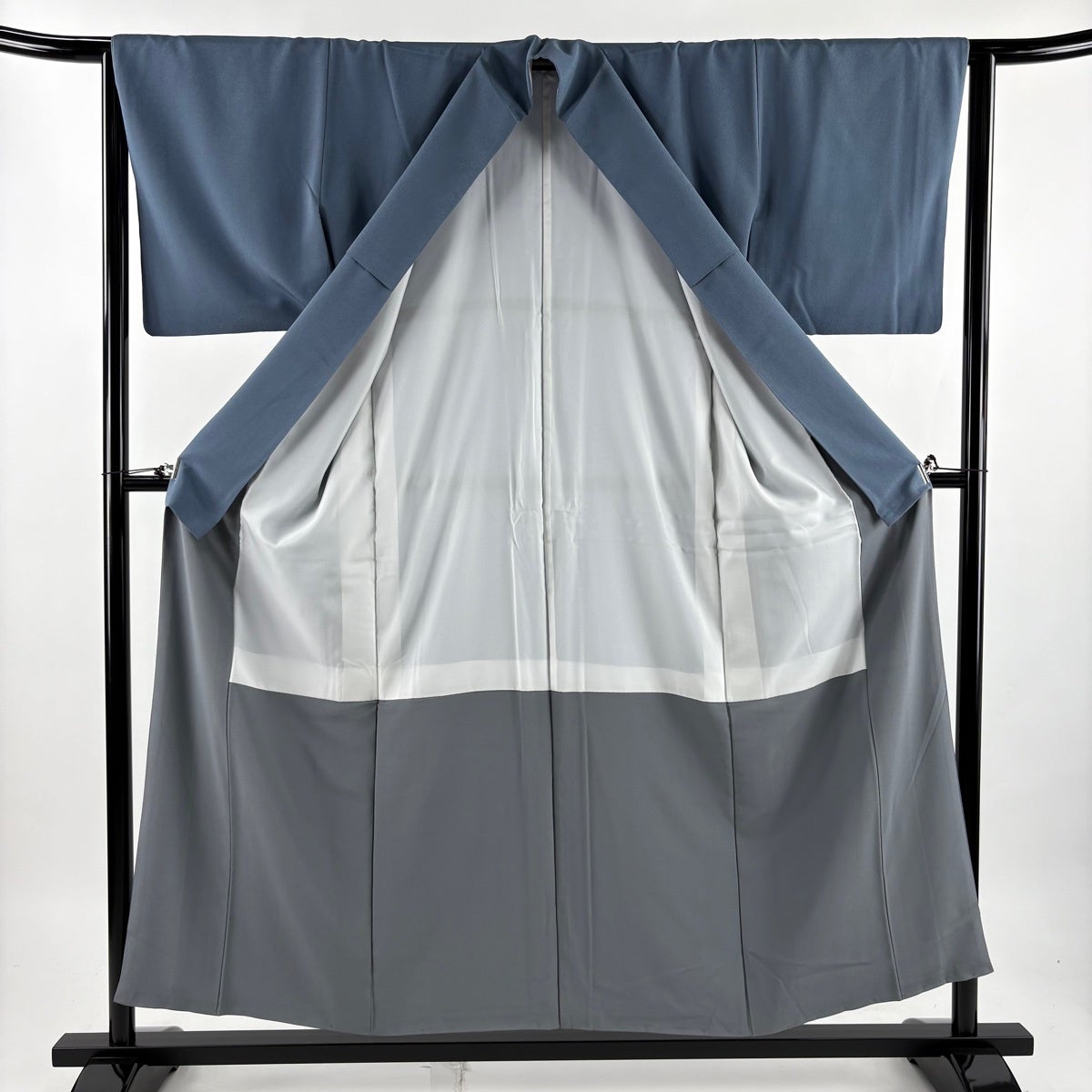 【美品】 色無地 身丈156cm 裄丈64cm M 袷 さんび 洗える着物 青灰色 化繊 優品